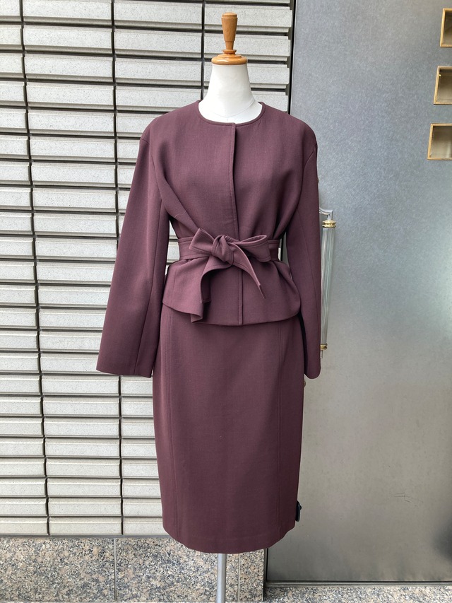 サイズや素材などは写真を参考に お願いします。 マネキンは9号サイズです。 ボルドーブラウン系 裏地あり ストレッチなし 上が38 下が40です 着丈 上48.5×下68.5目安 ウエスト平置き34目安 ベルト付き ※店頭と並行して販売しております 売却済みの場合はご了承くださいませ。
