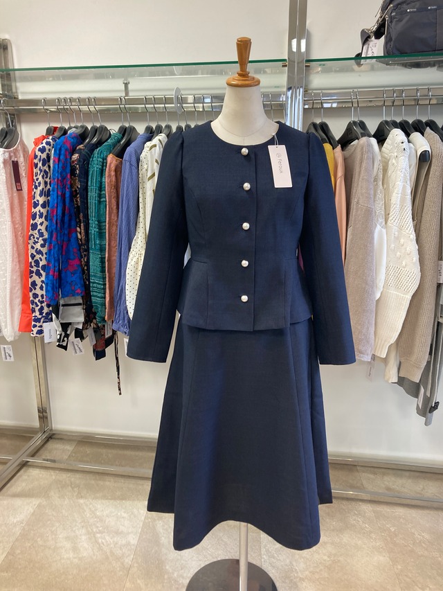 アペゼラム ネイビーセットアップ サイズ38 スカートウエスト62cm スカート丈80cm サイズや素材などは写真を参考にお願いします。 マネキンは9号サイズです。 ※店頭と並行して販売しております 。売却済みの場合はご了承くださいませ。
