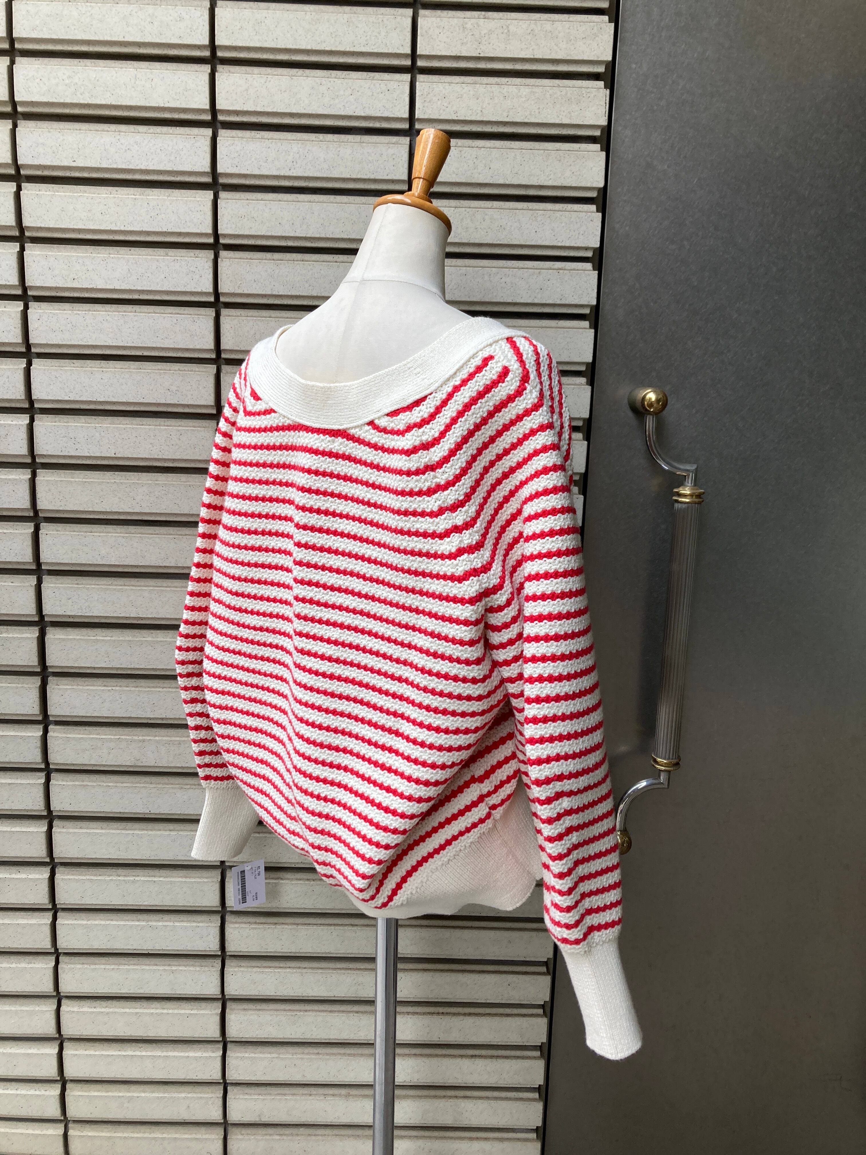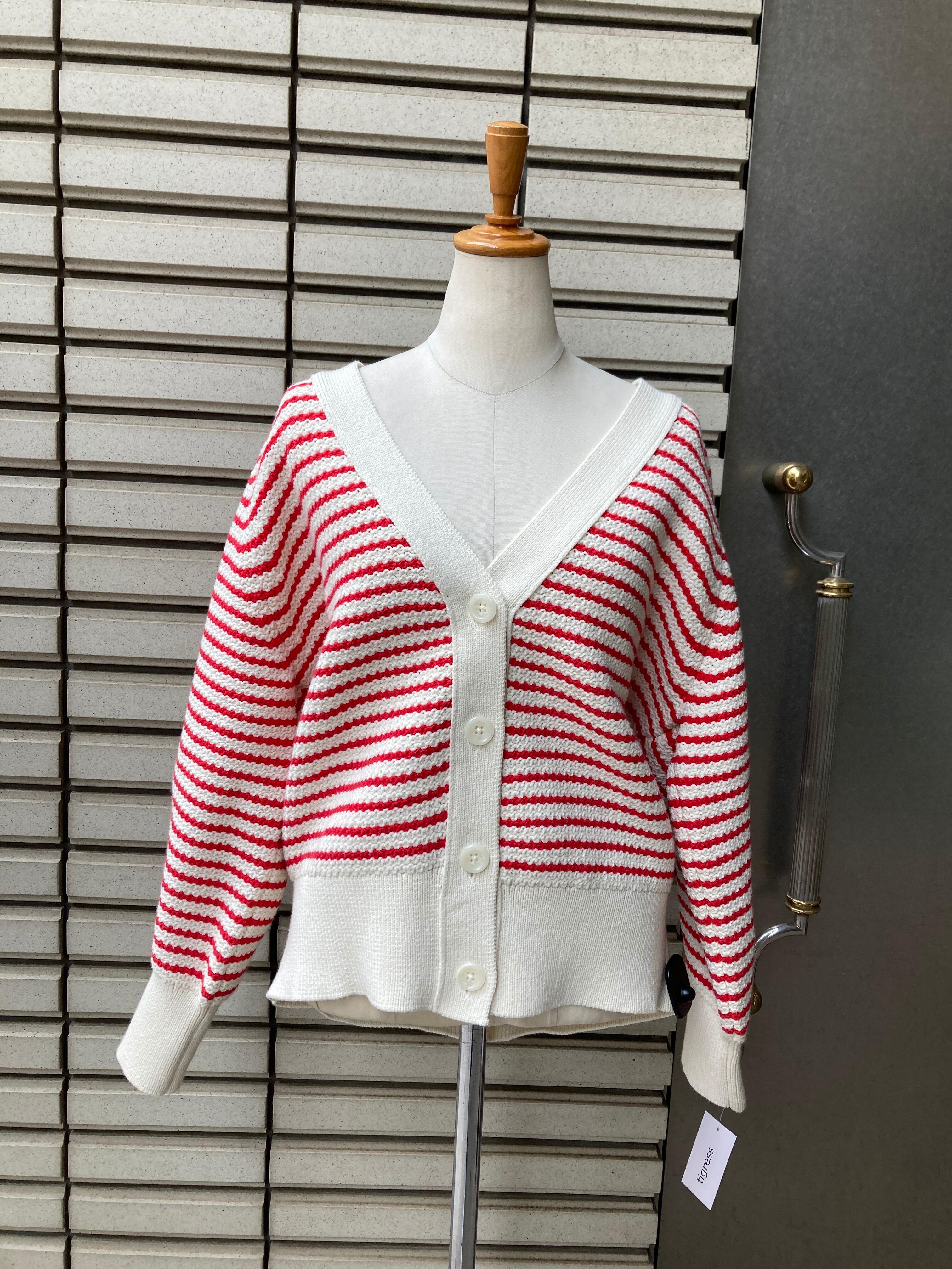 オフホワイト系と赤のボーダー