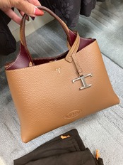 グレインの美しさが際立つ柔らかなレザーのバッグ。フロントにホットスタンプのトッズ ロゴ、フラット ハンドル、取り外し可能なショルダー ストラップを合わせました。内部の2つのコンパートメントはファスナー付きのポケットで仕切られています。T タイムレス メタル ペンダント、T ステッチをあしらい、トッズならではのアイコニックなディテールが光るエレガントなスタイルです。