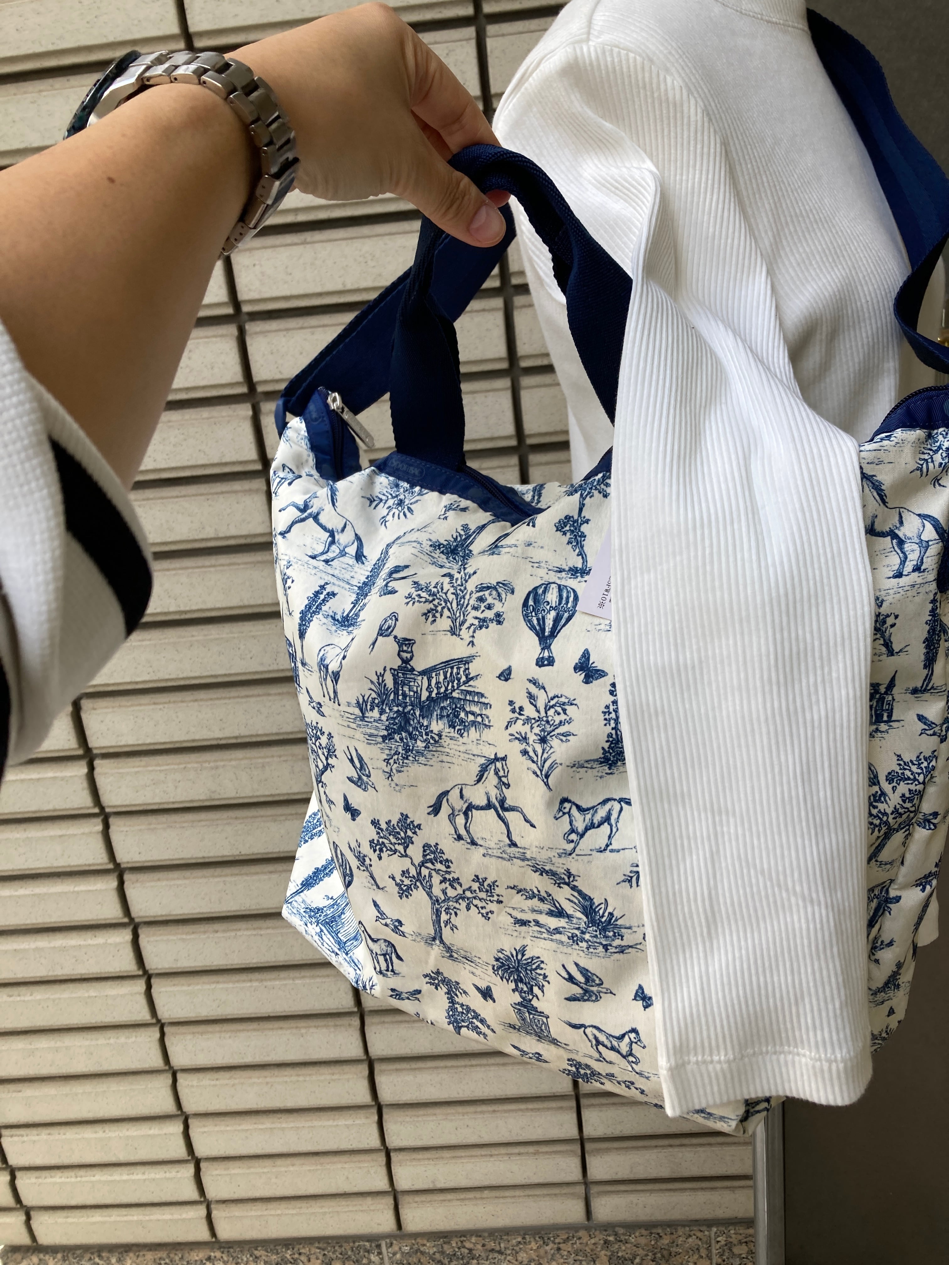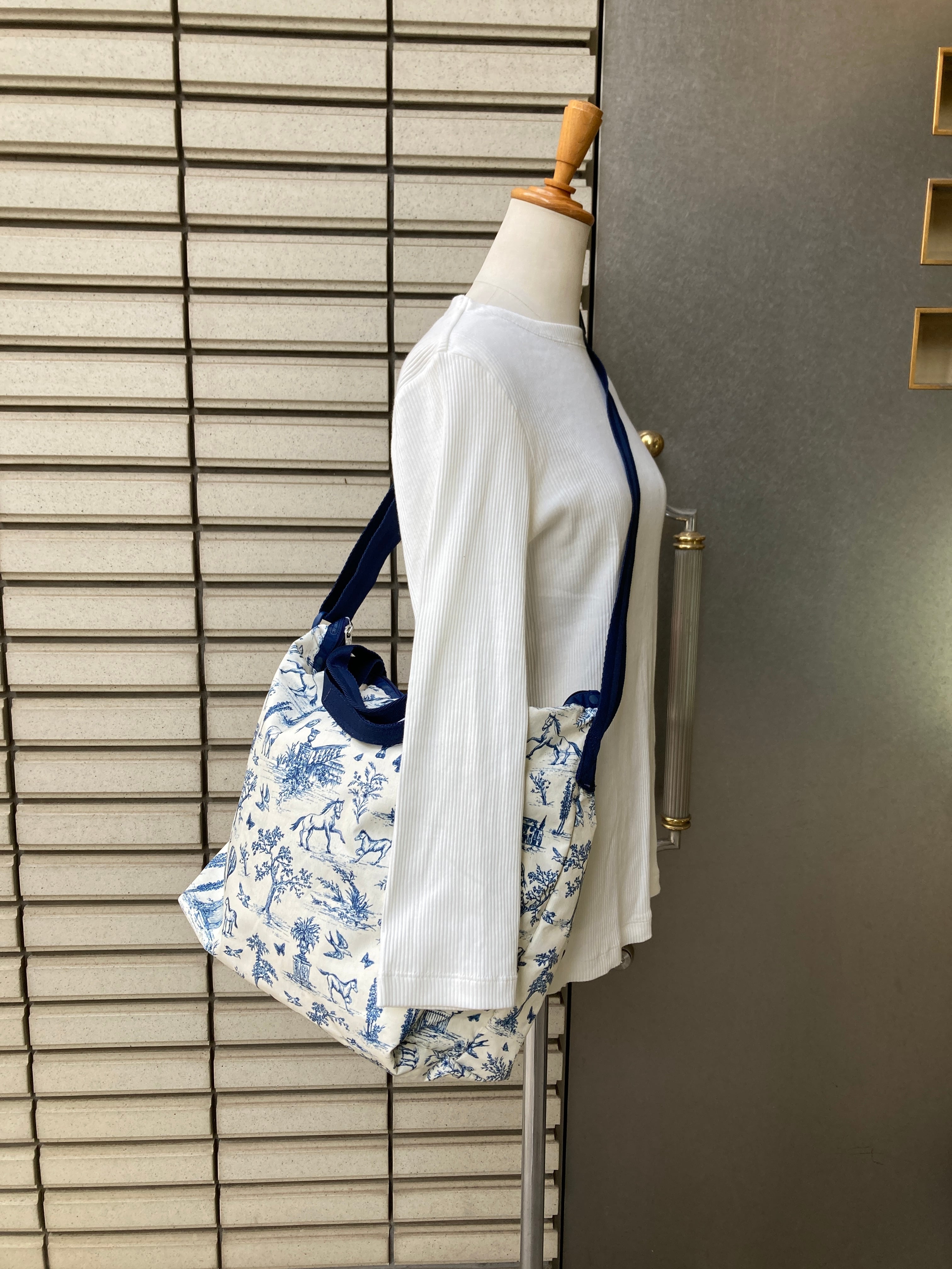 アイボリー、ブルー柄