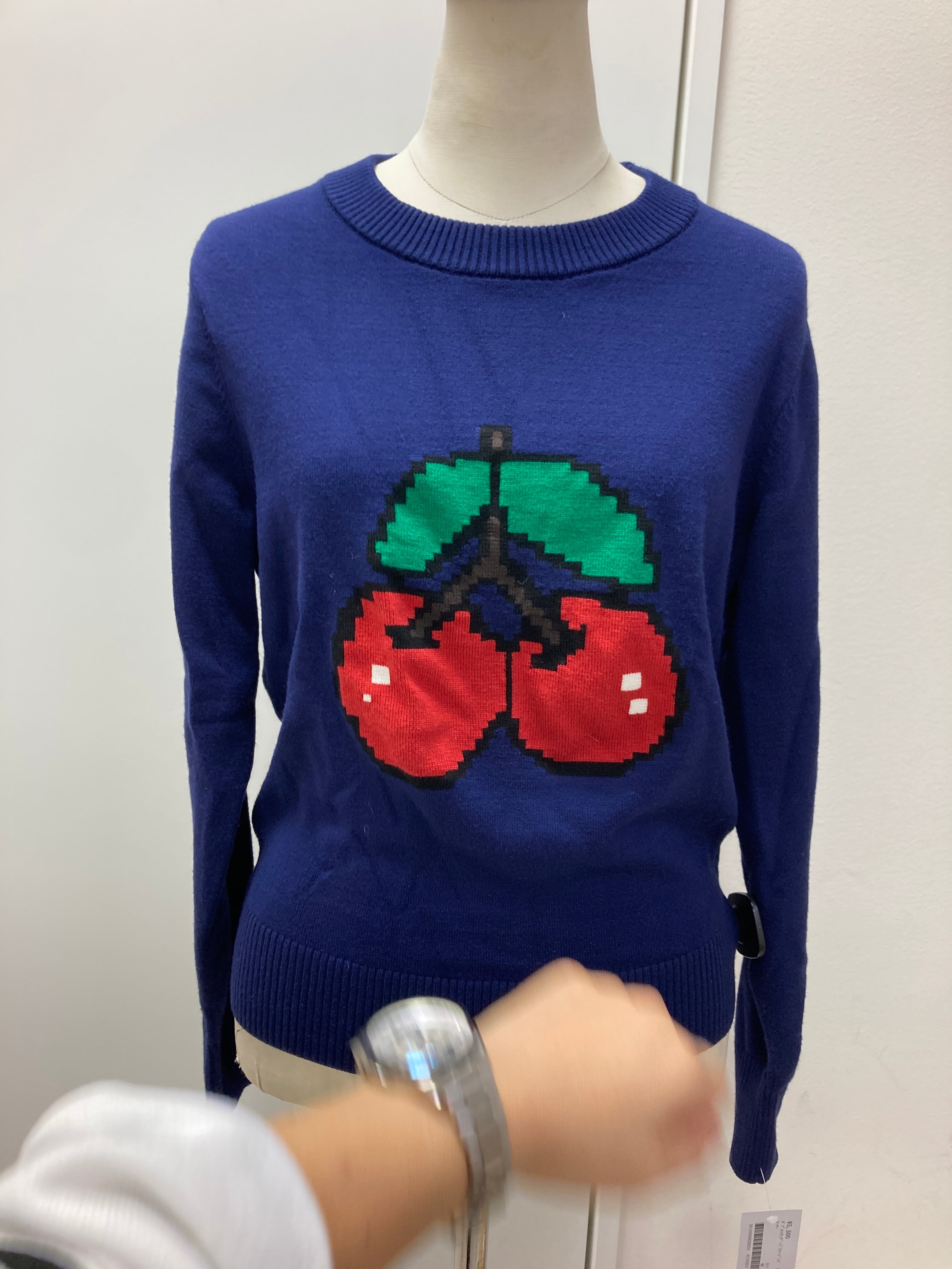 ネイビーブルー系 さくらんぼニット