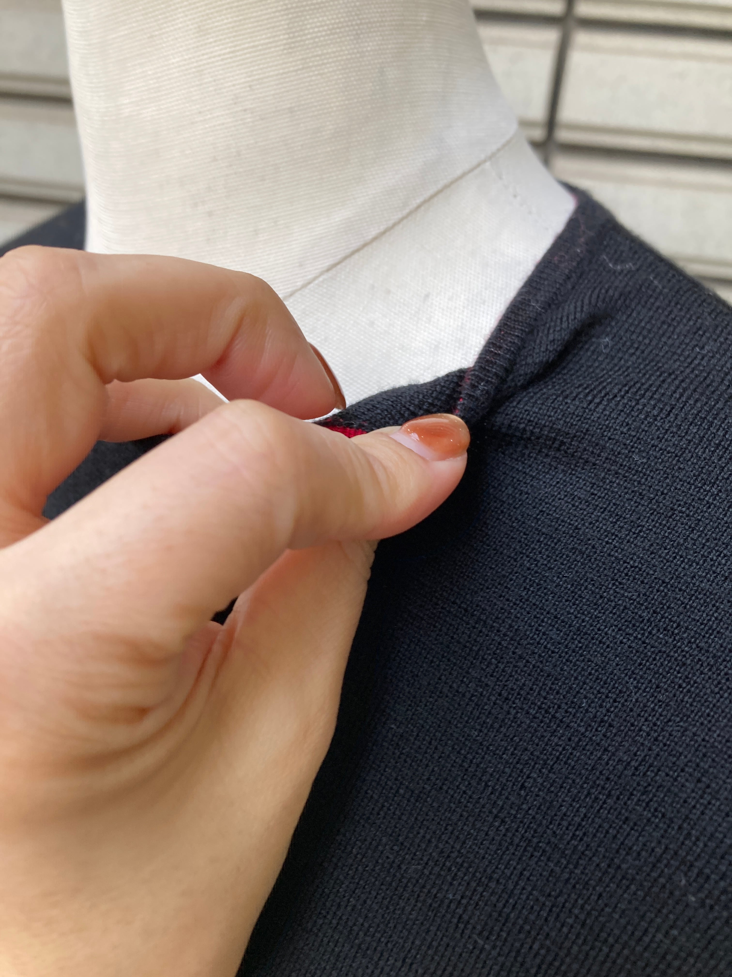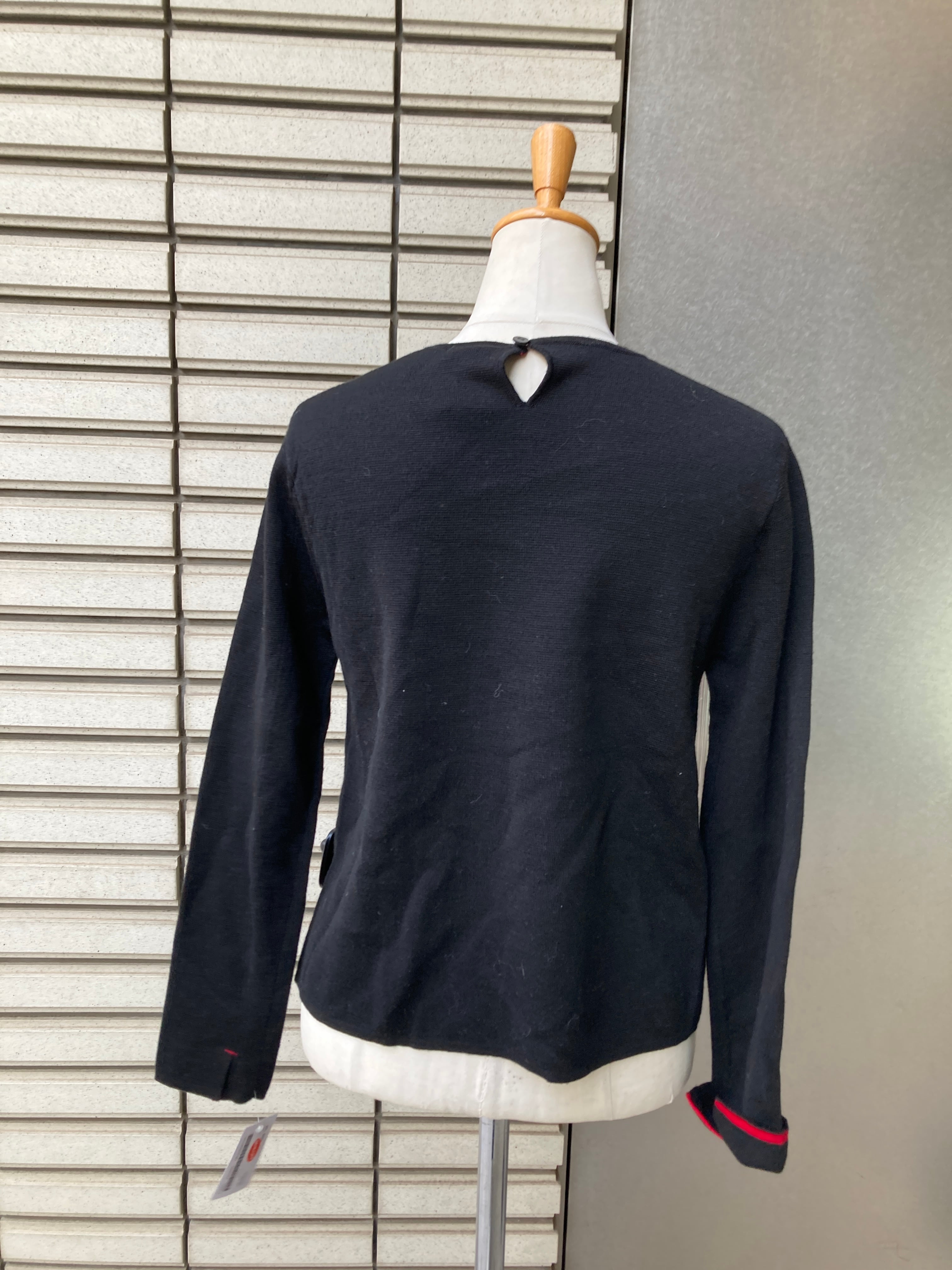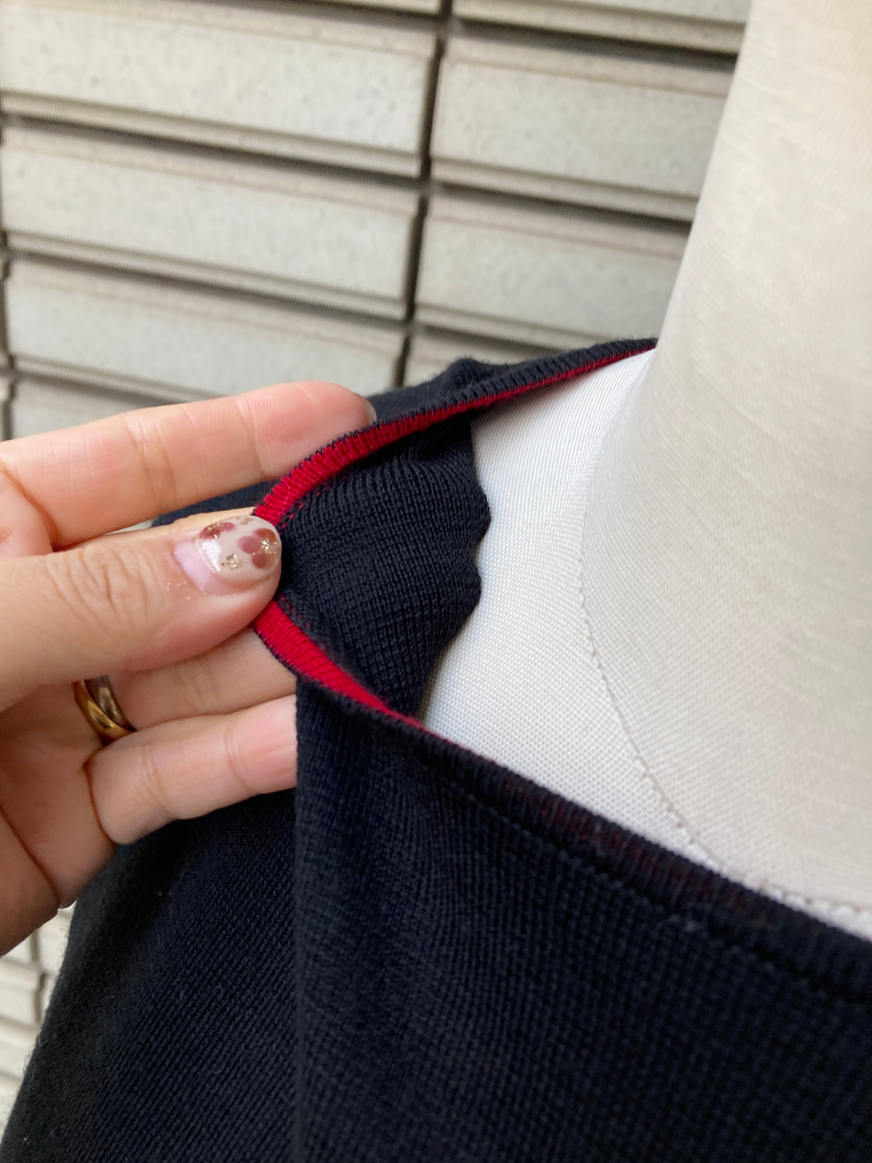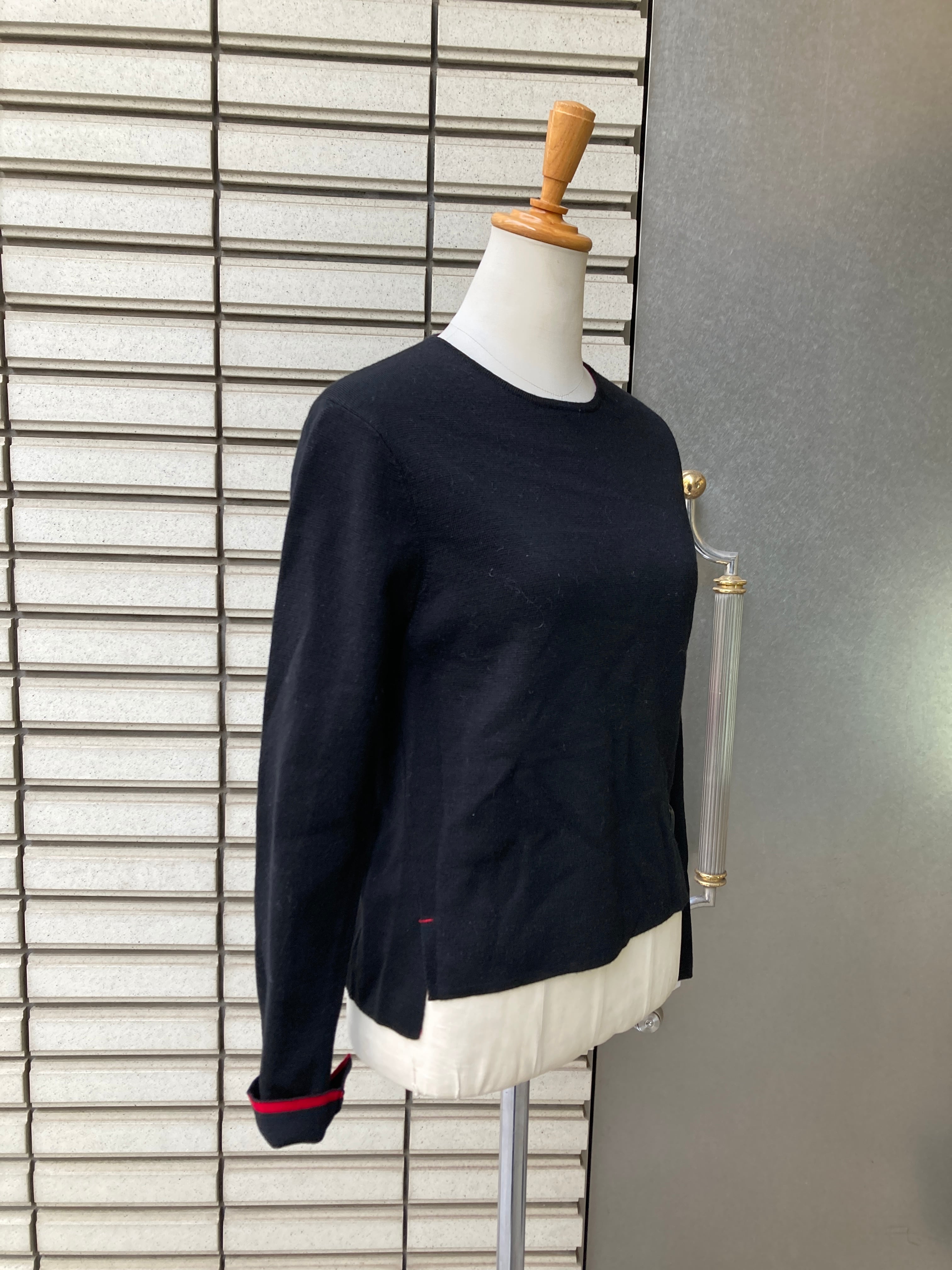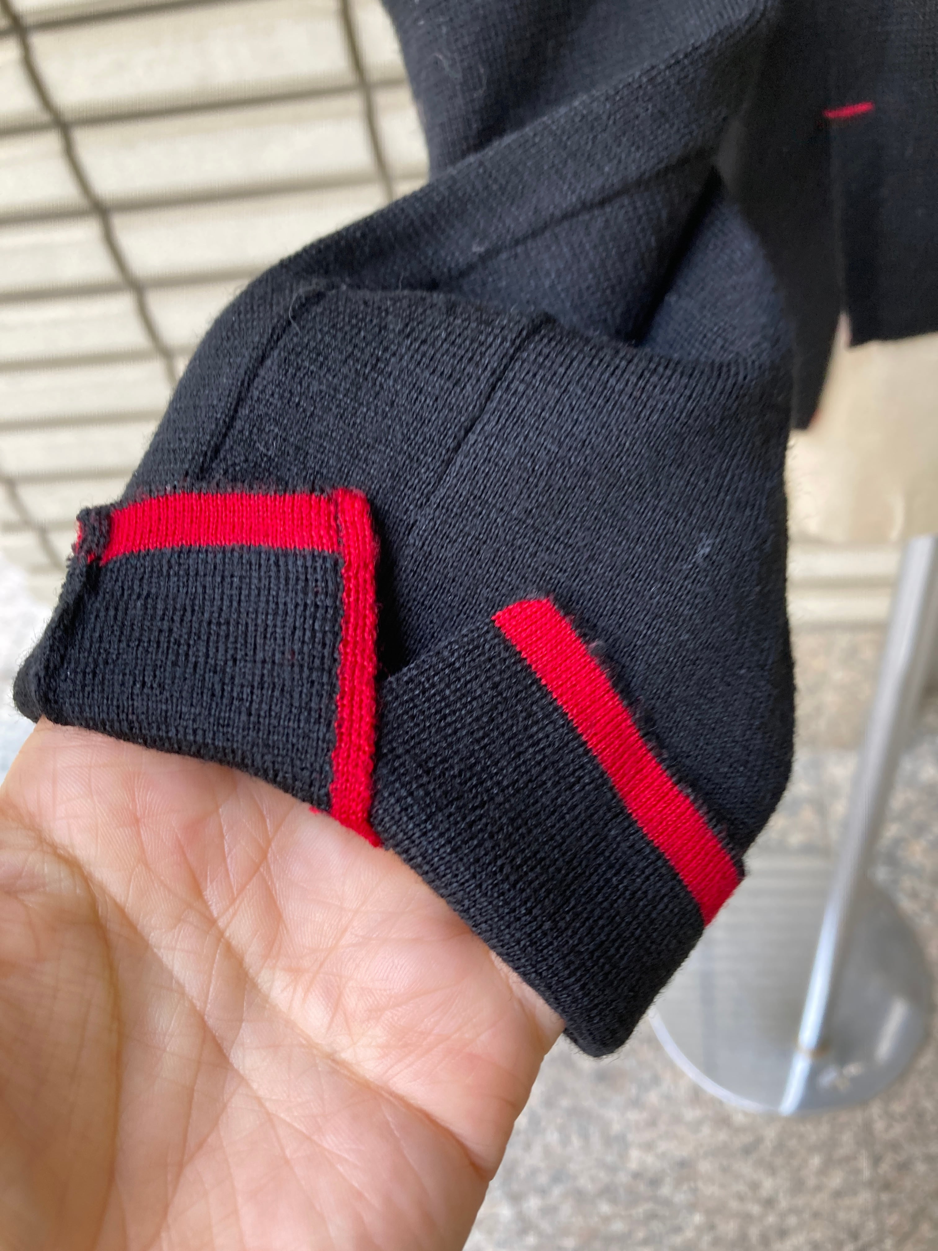 袖口と襟元が赤になっているのが