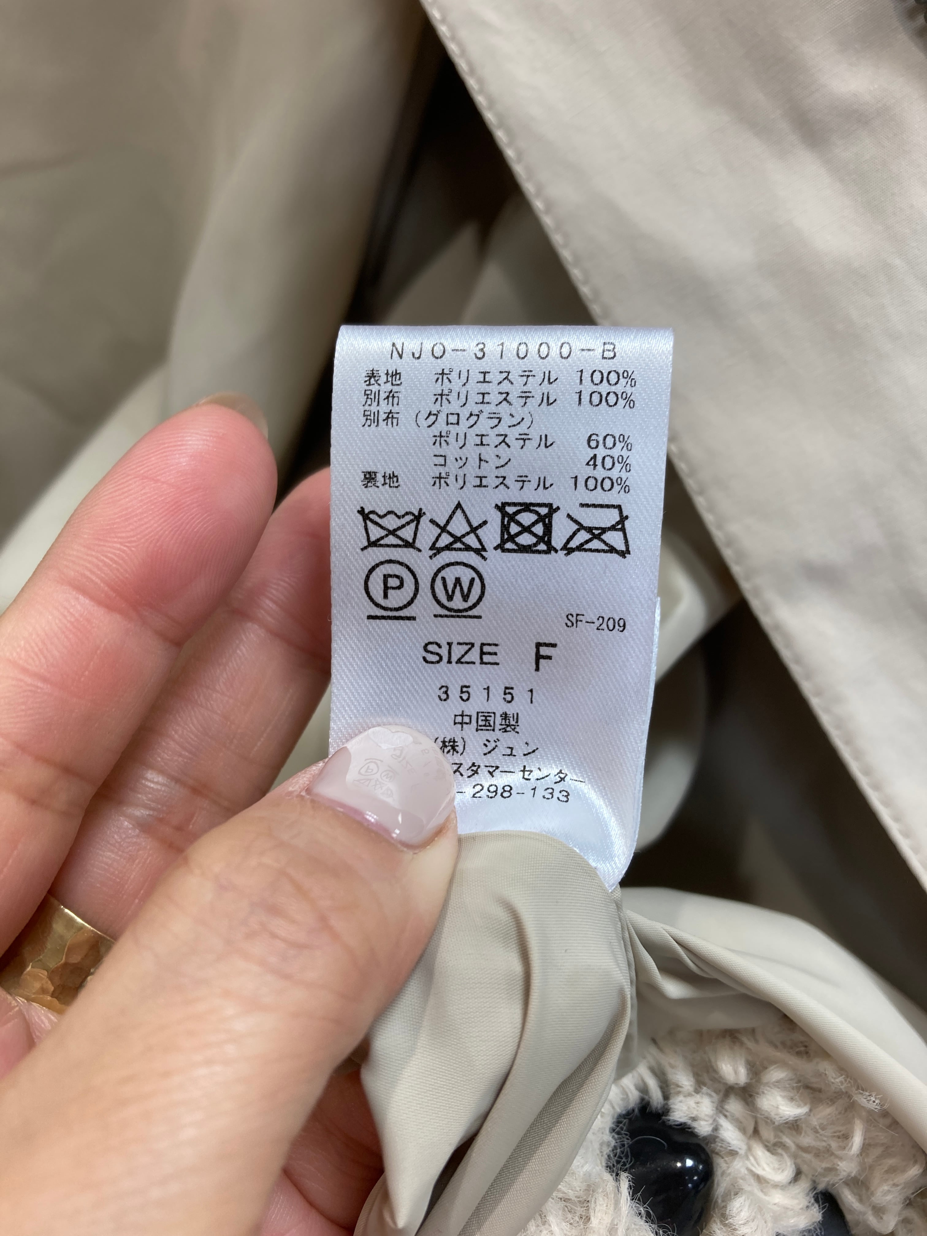 着丈は65目安 フードは取り外し可能です