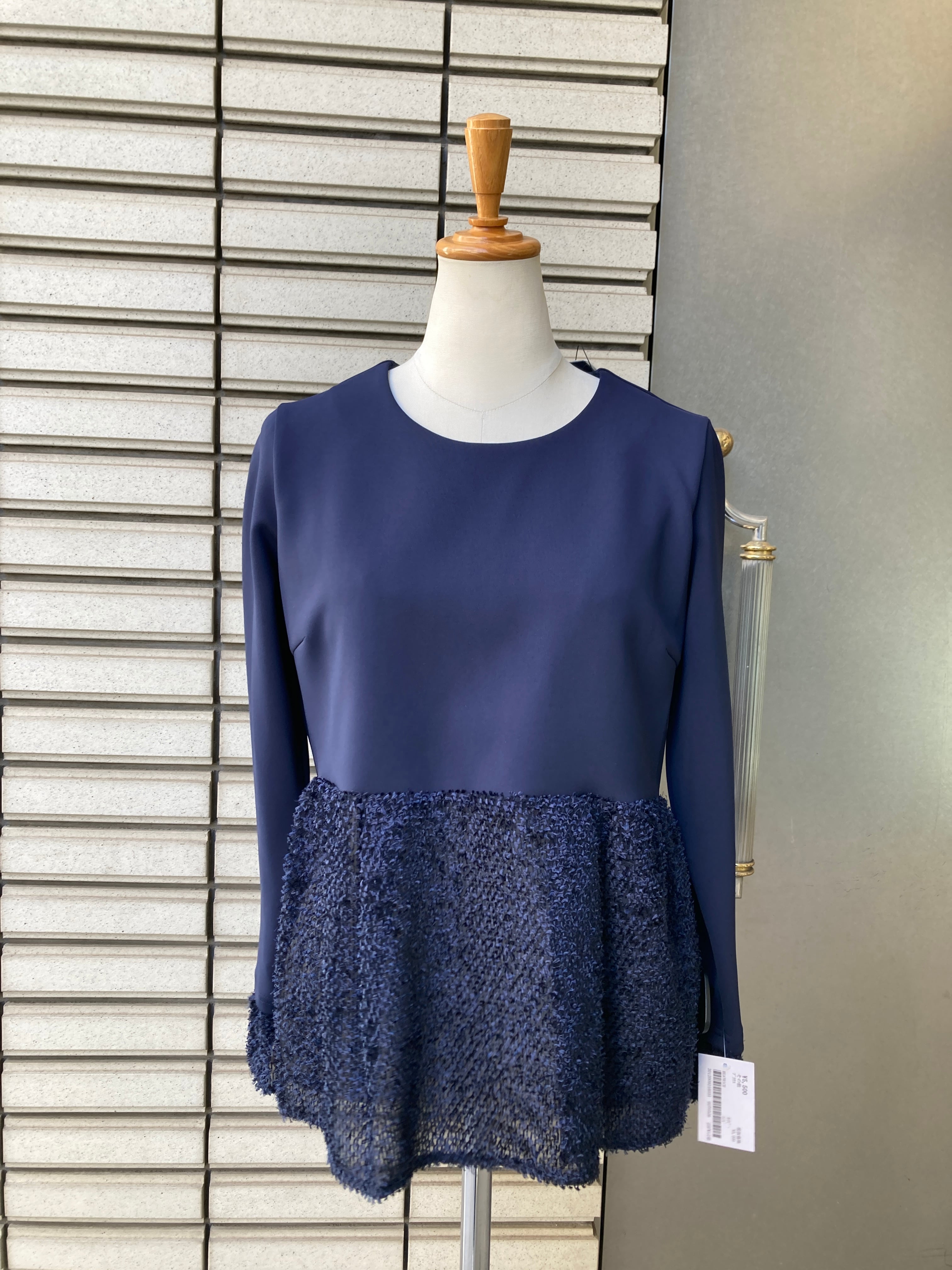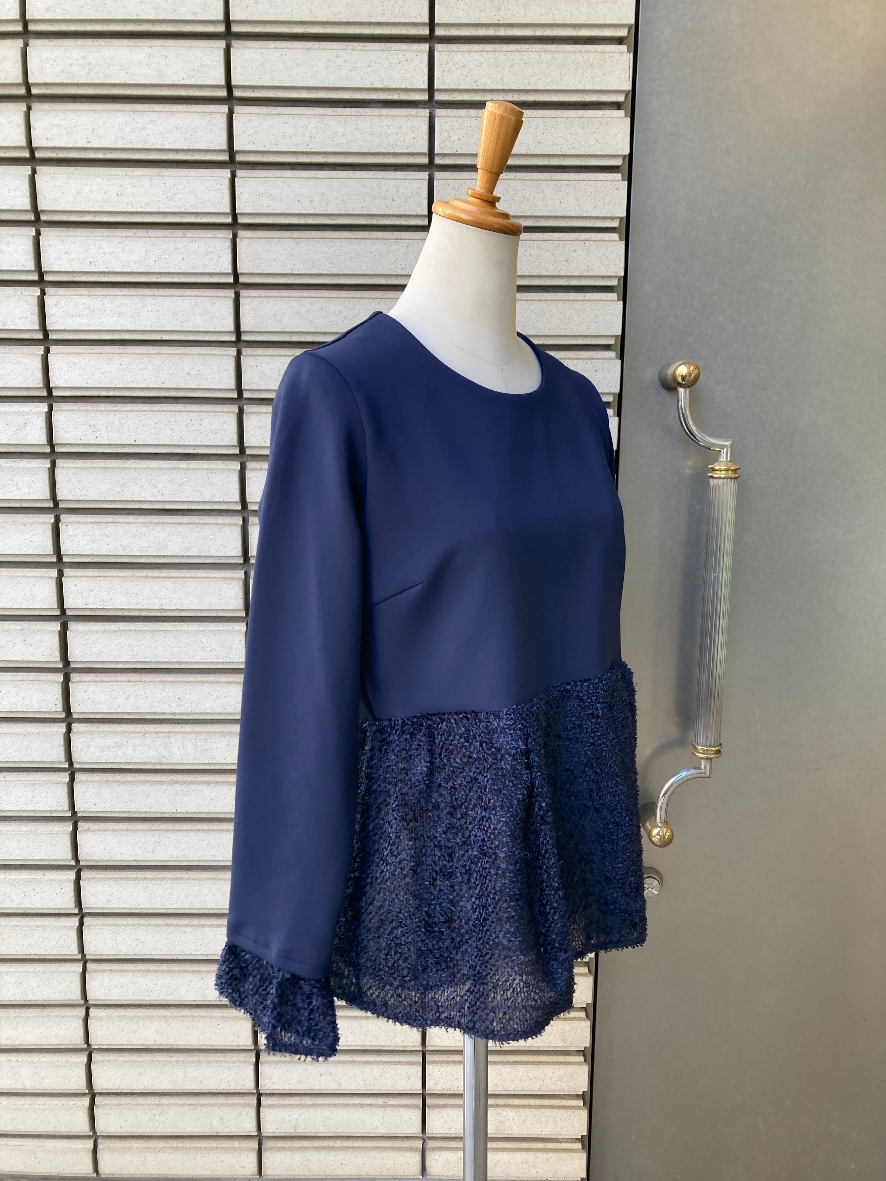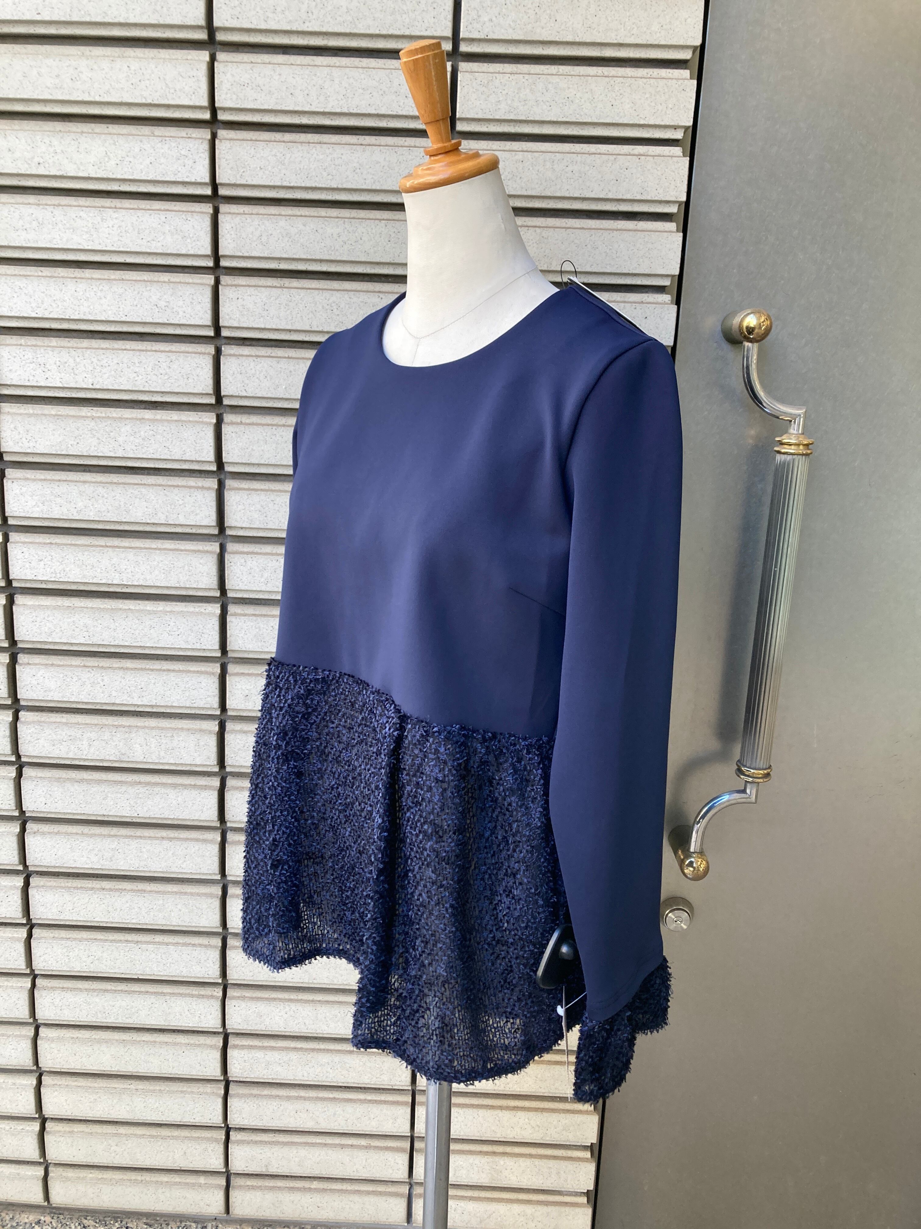 ベアトリス ネイビー異素材コンビトップス