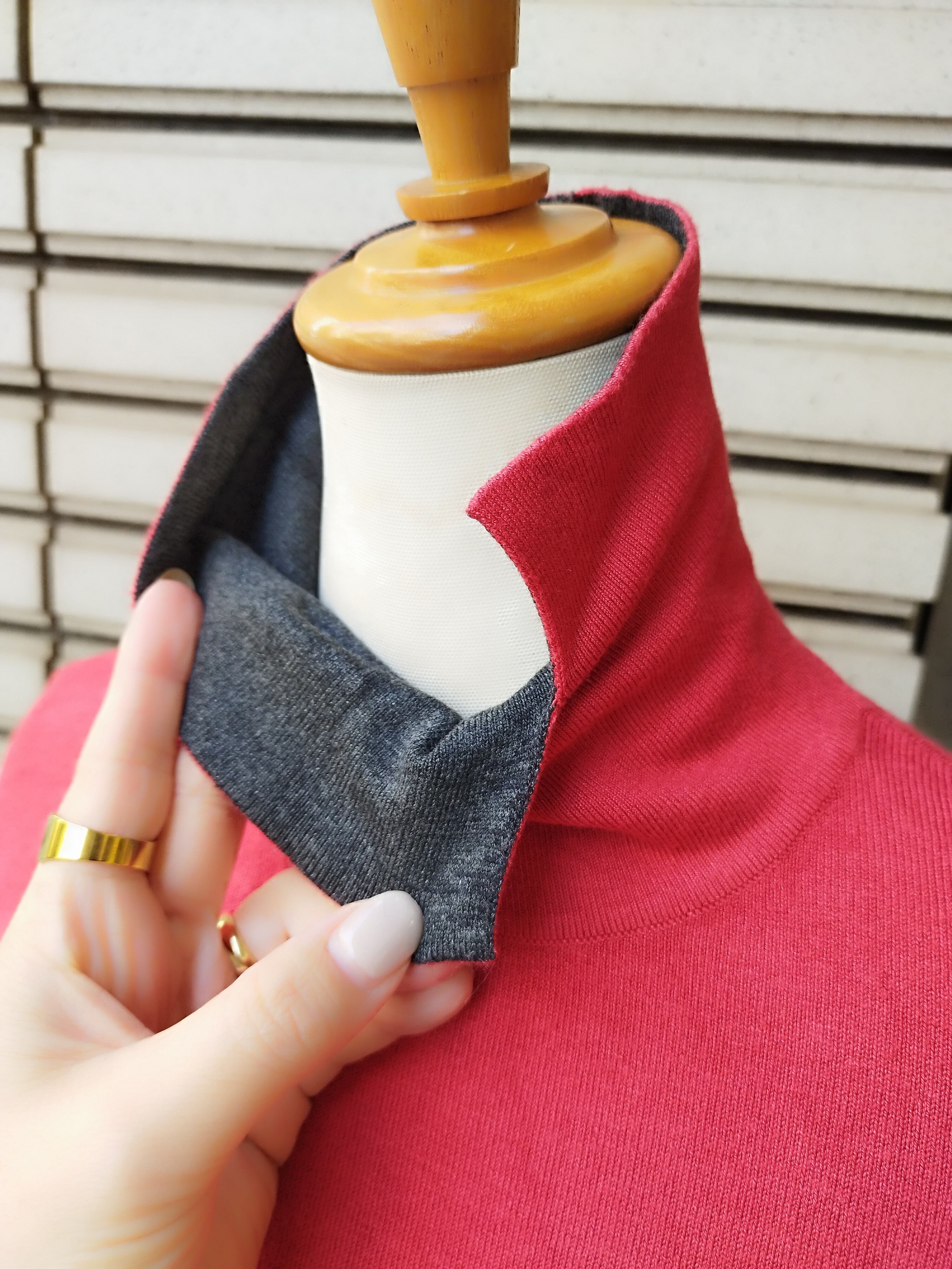 首の折り返し部分がグレーでバイカラー