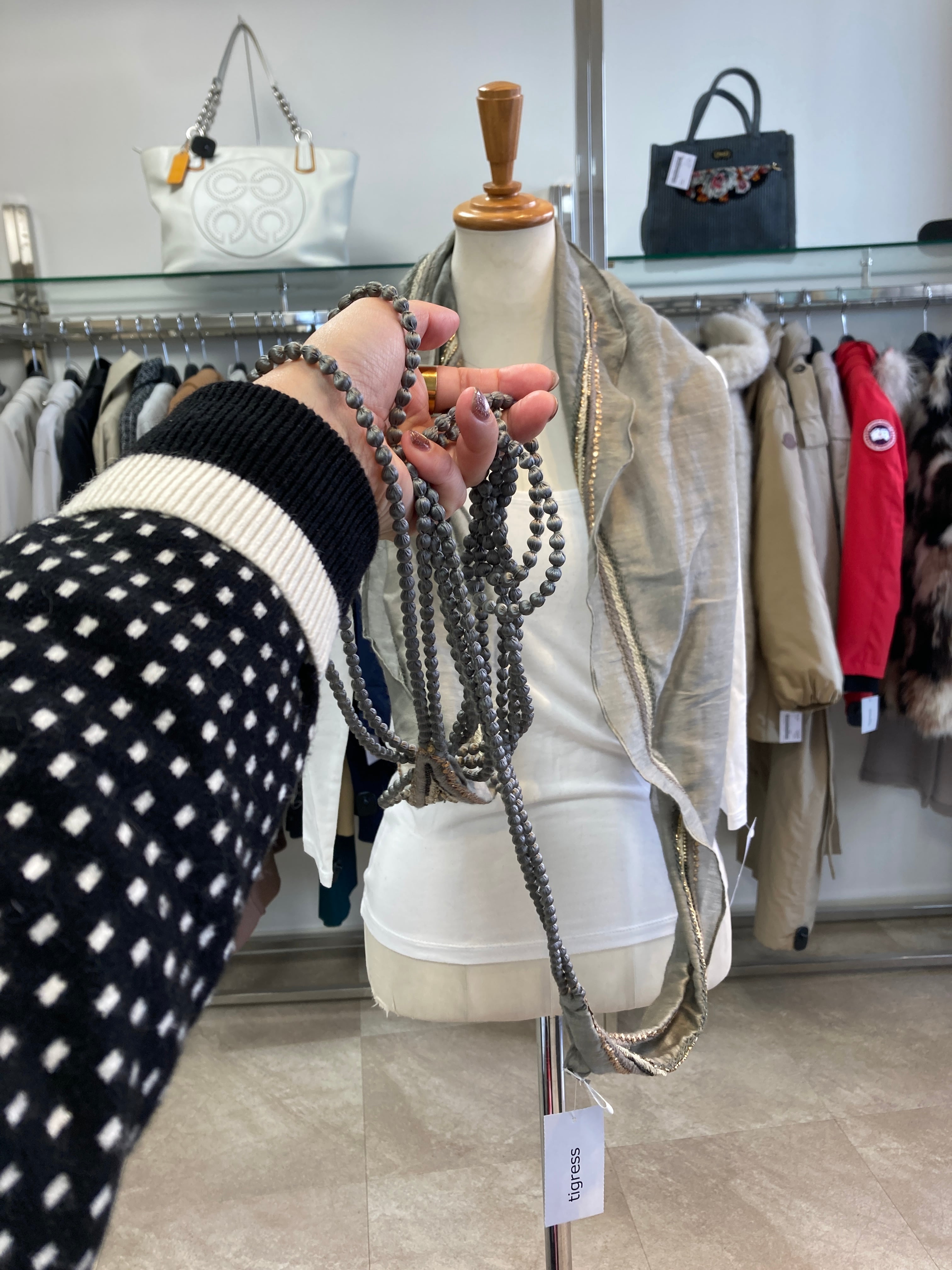 首にぐるぐる巻きつけるアクセサリーの