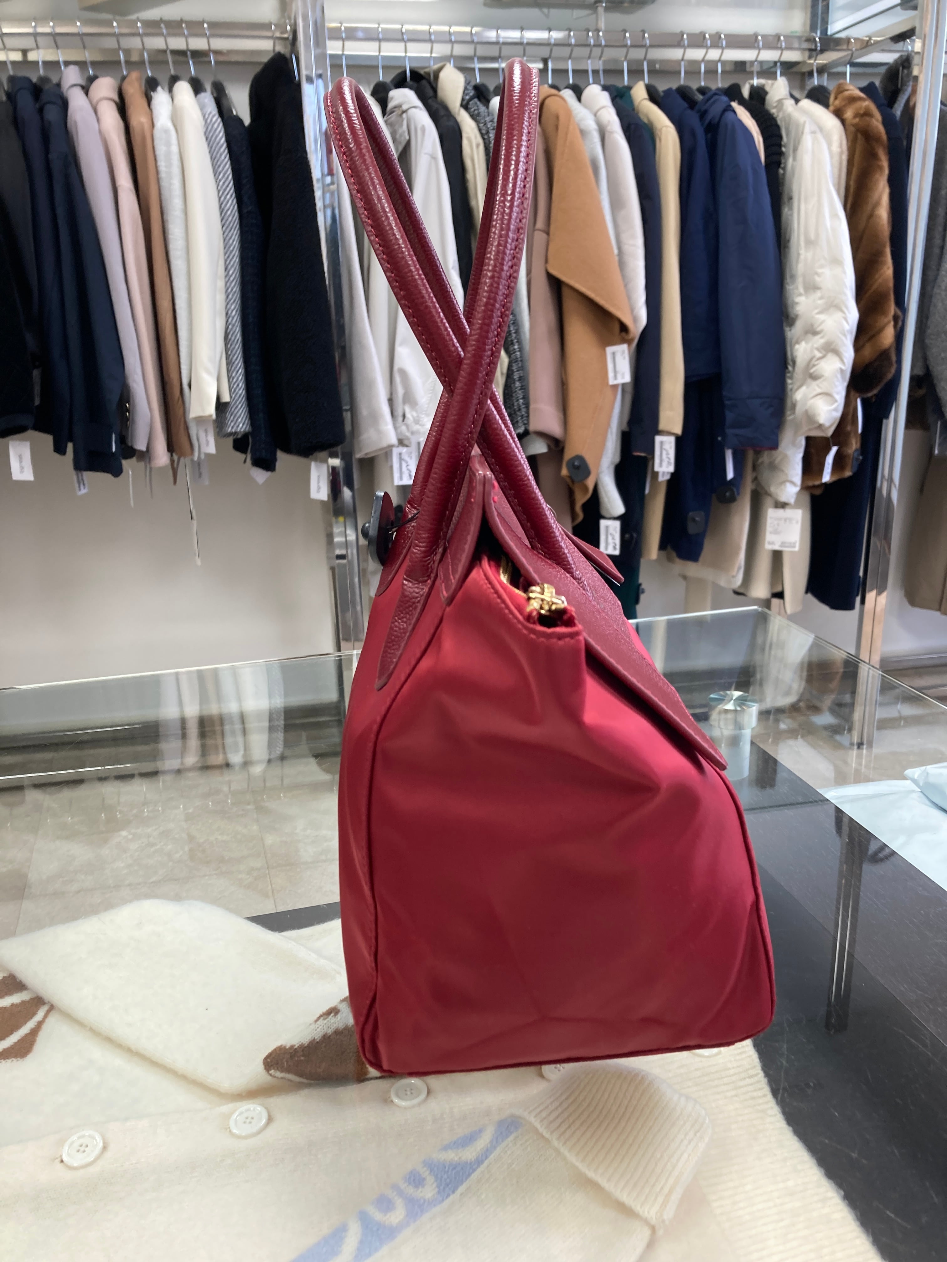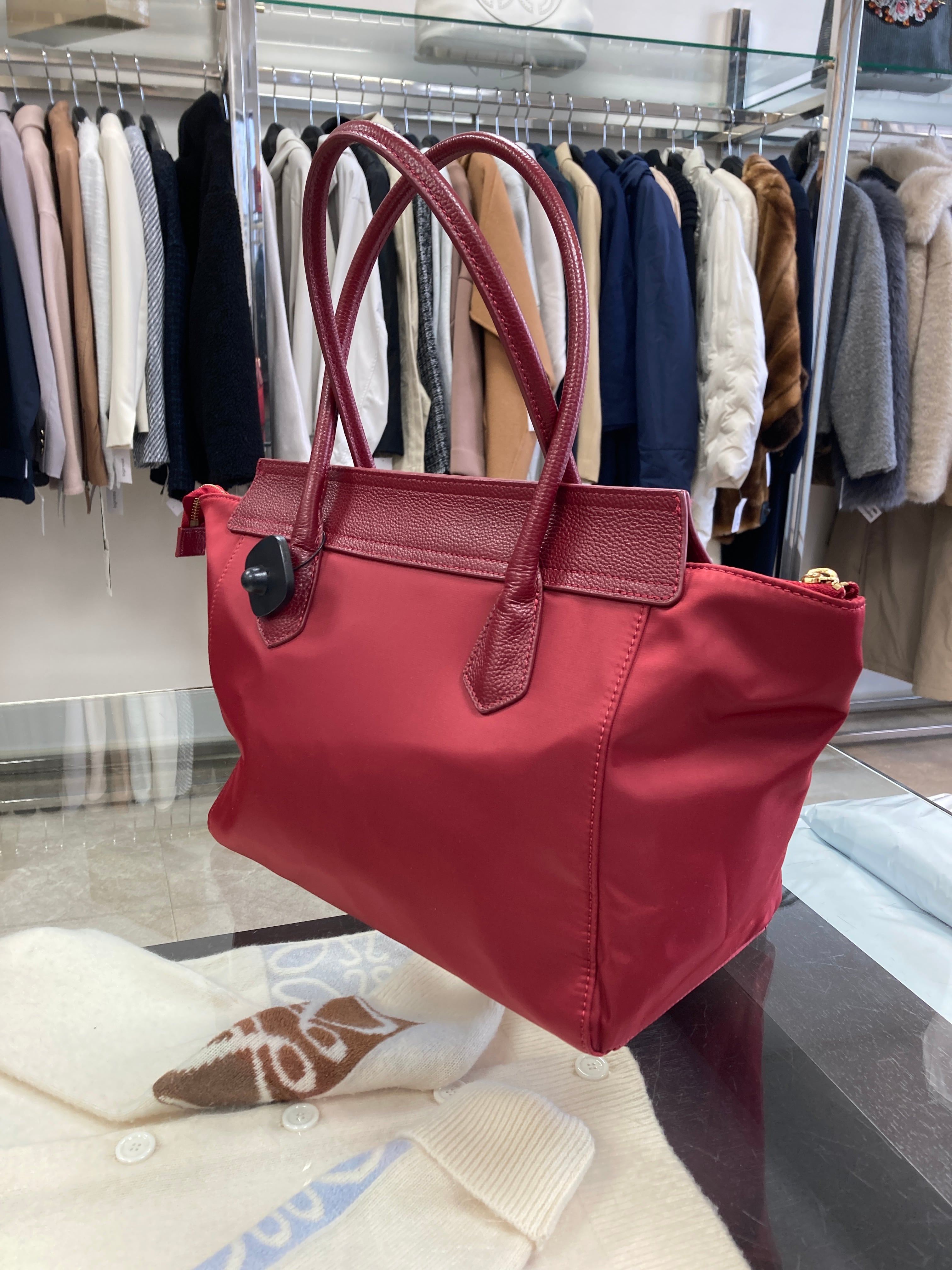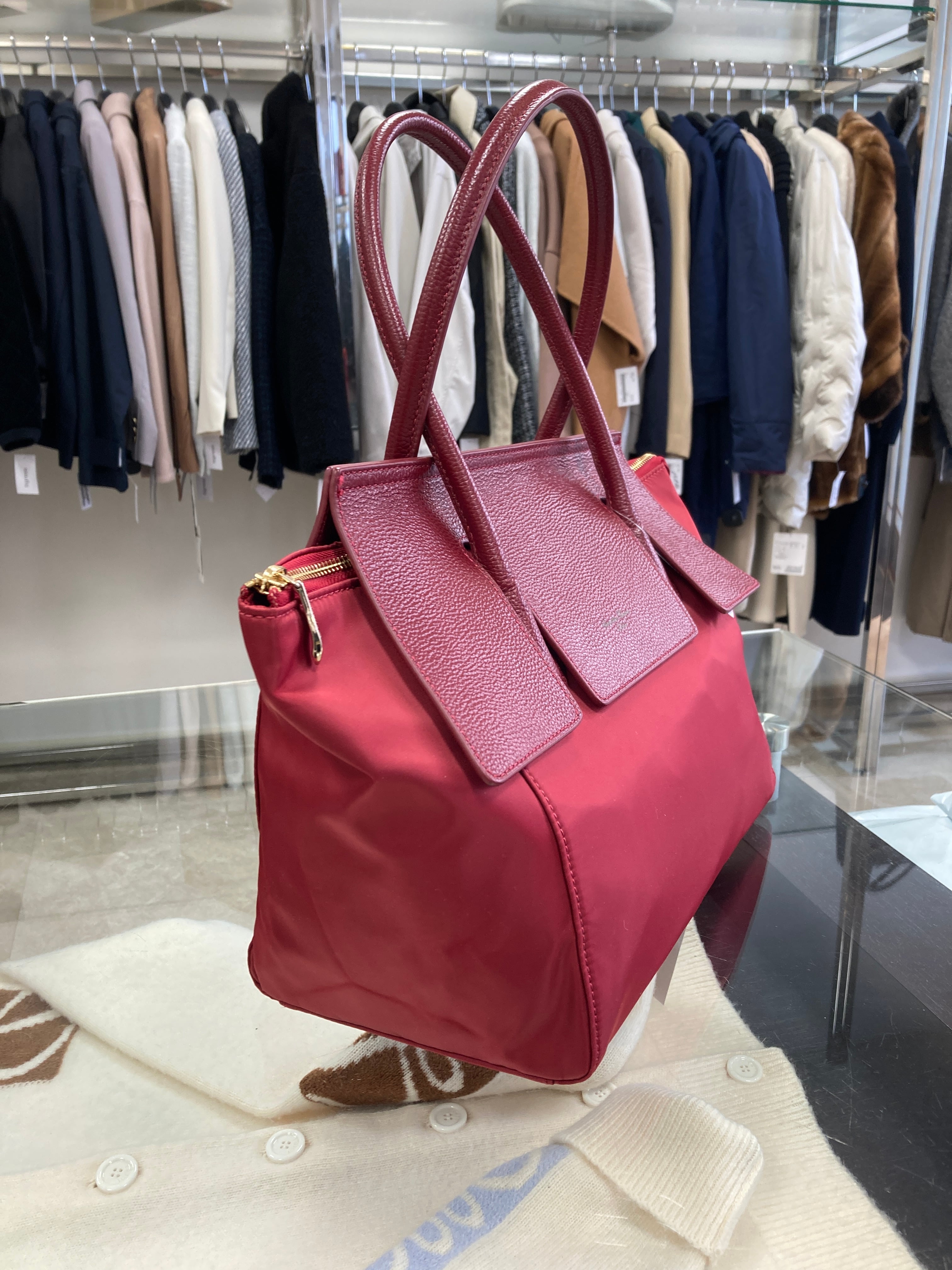 ナイロン×レザー 台形トートバッグ