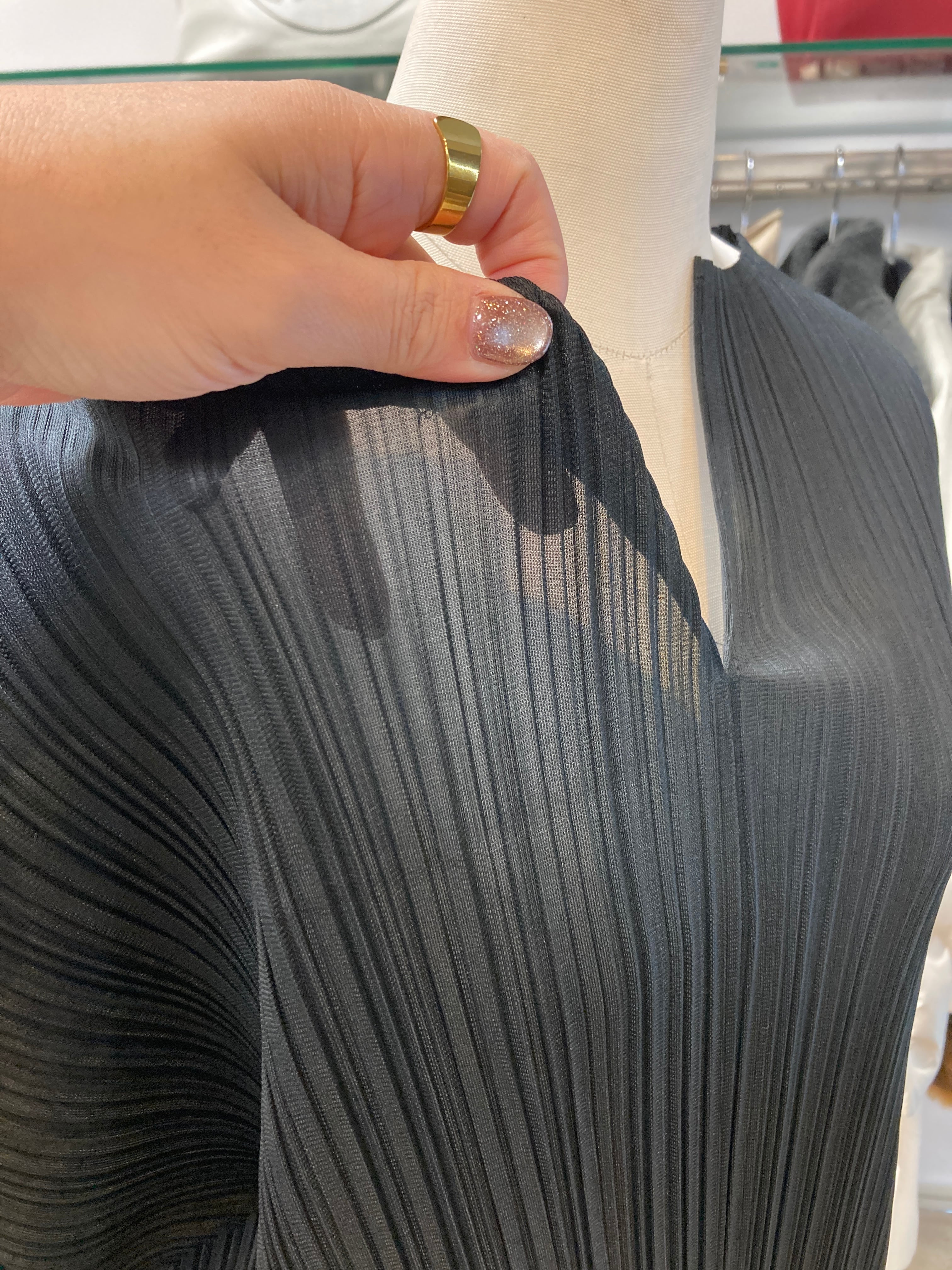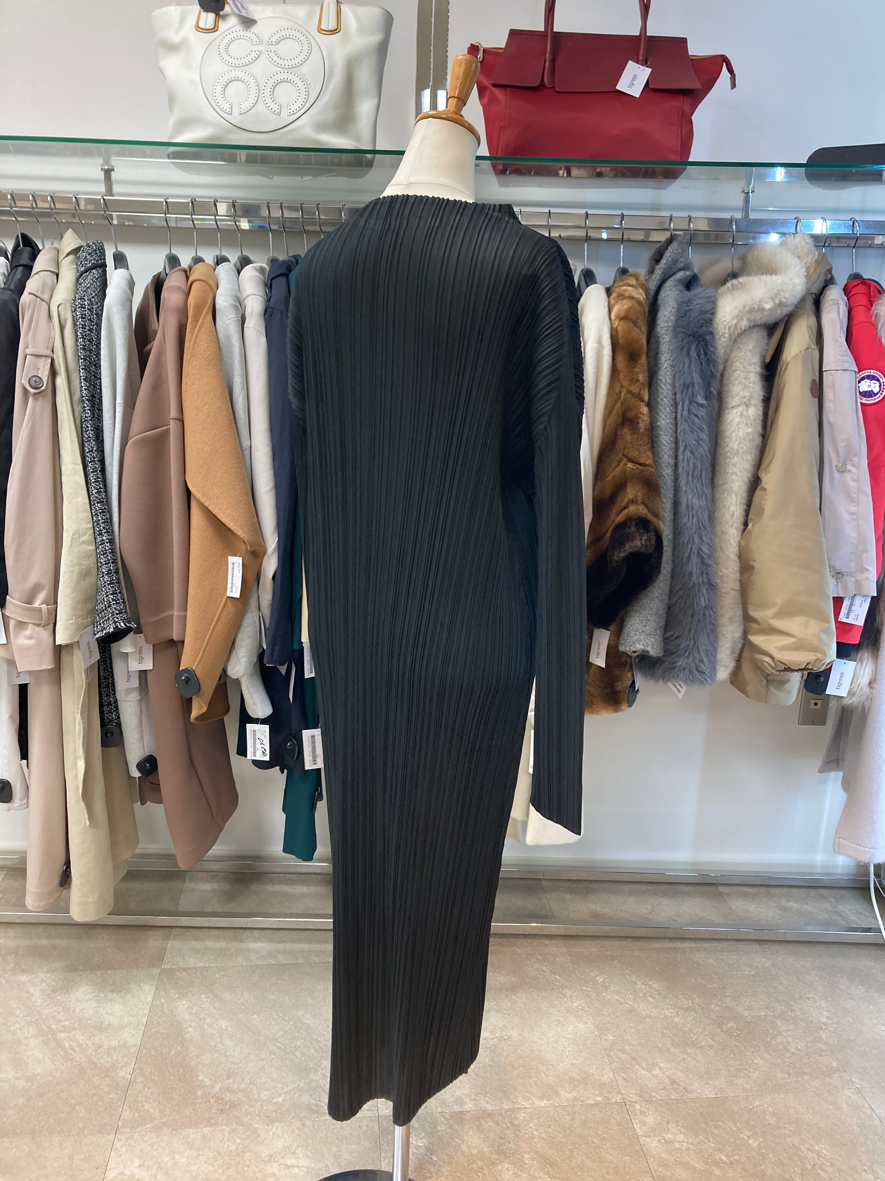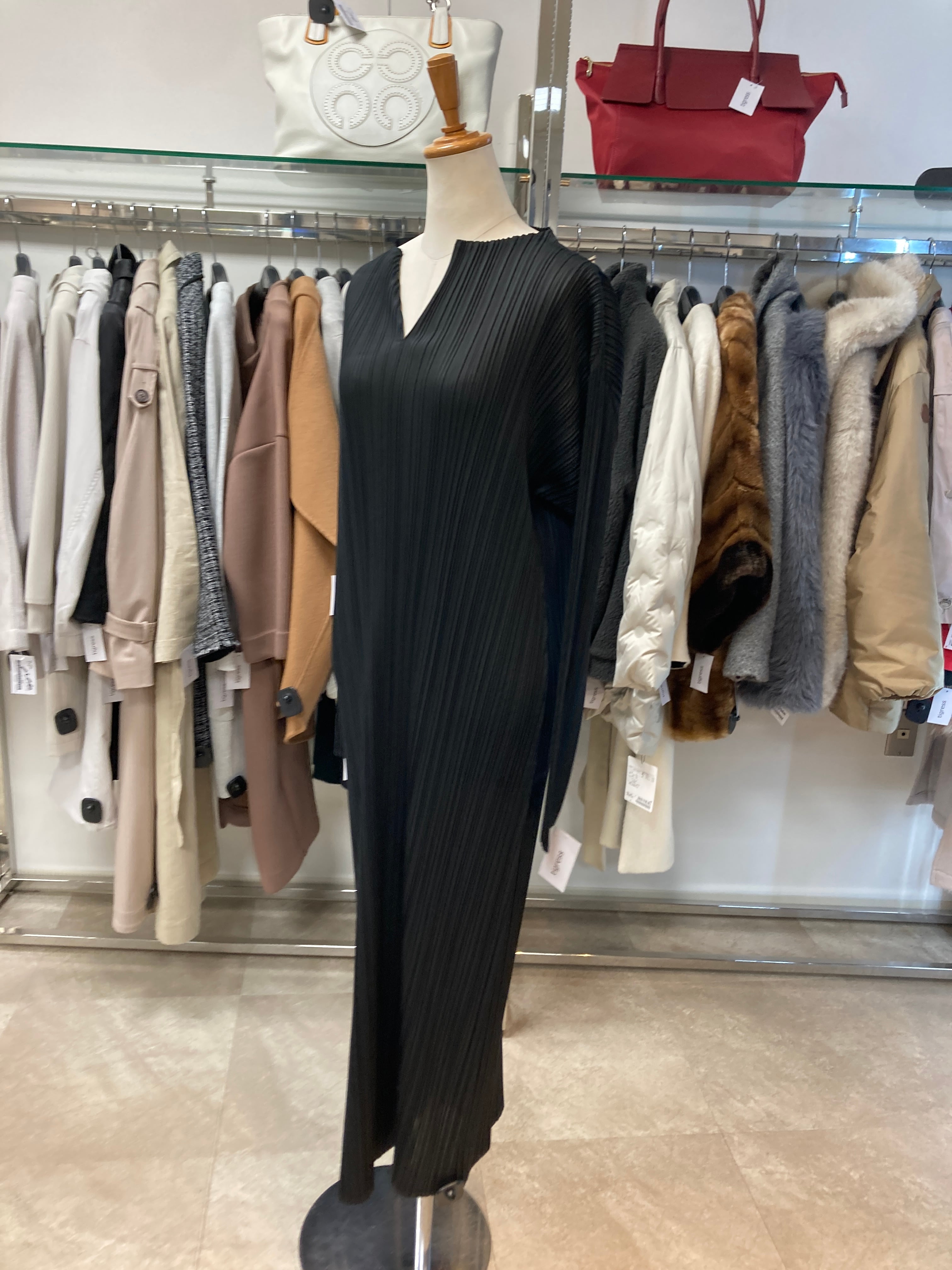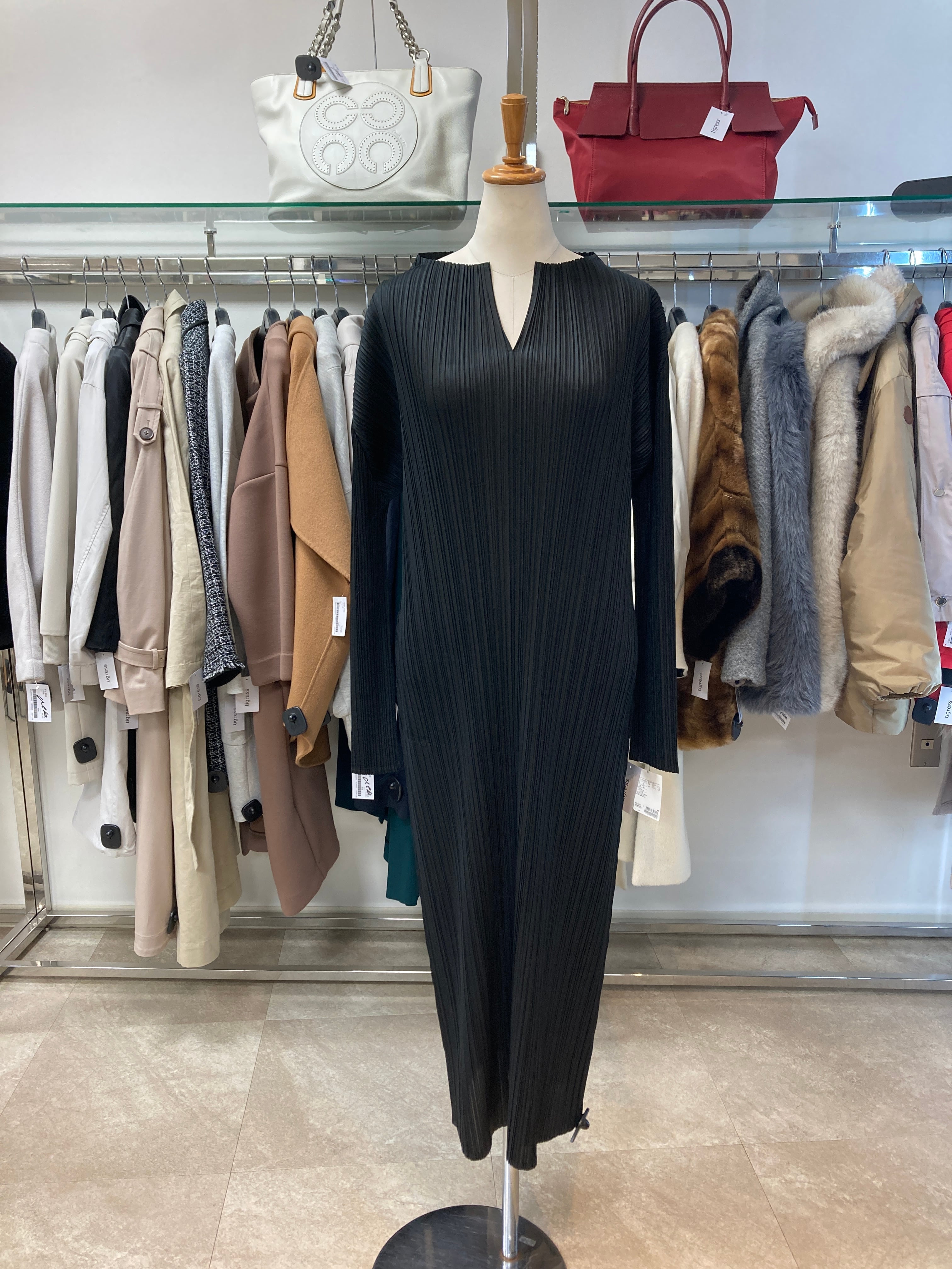 プリーツ加工 ブラックロングワンピース