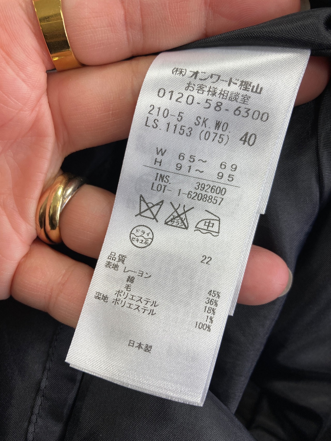 着丈は下が57.5目安 上が51.5目安