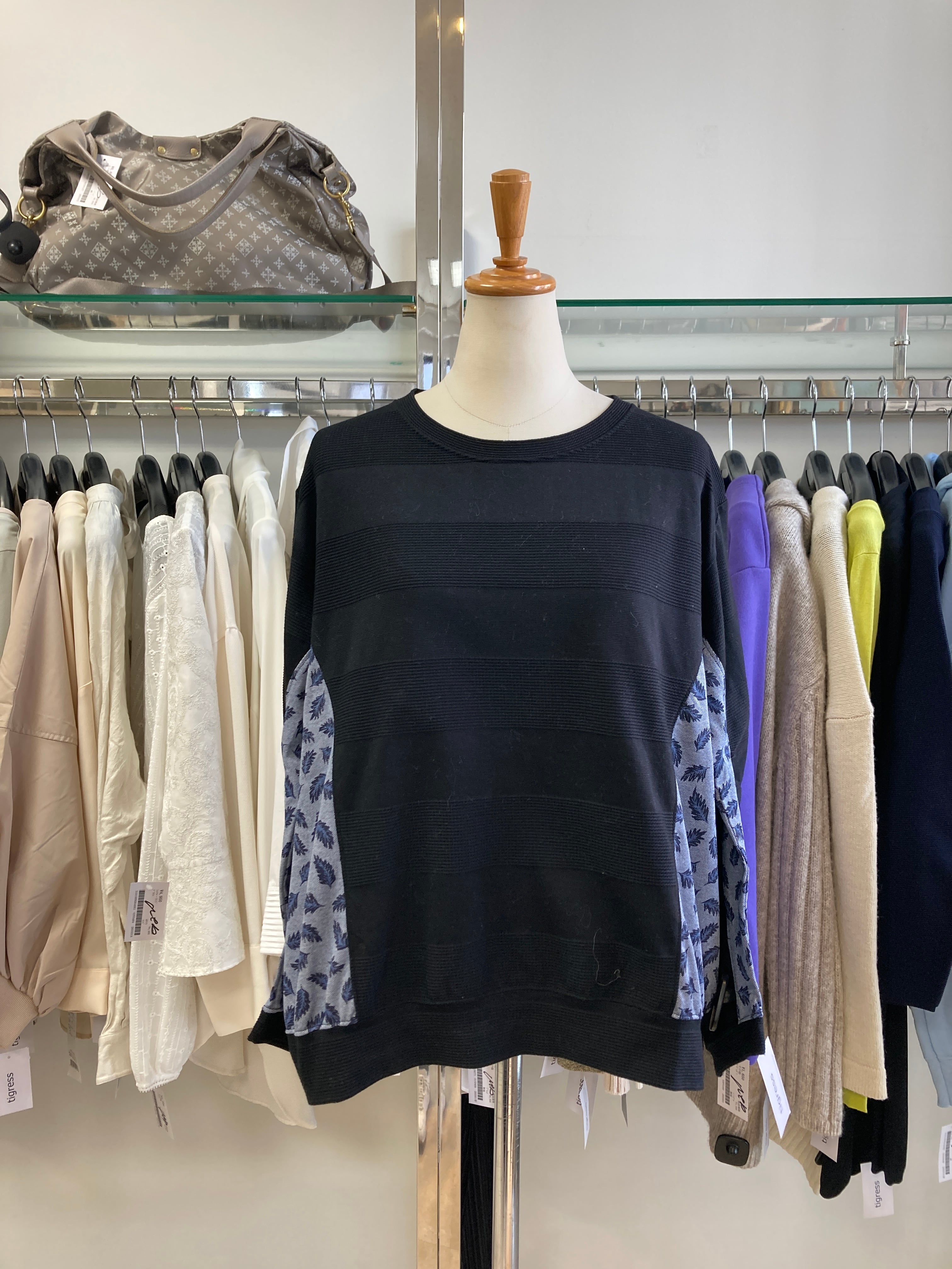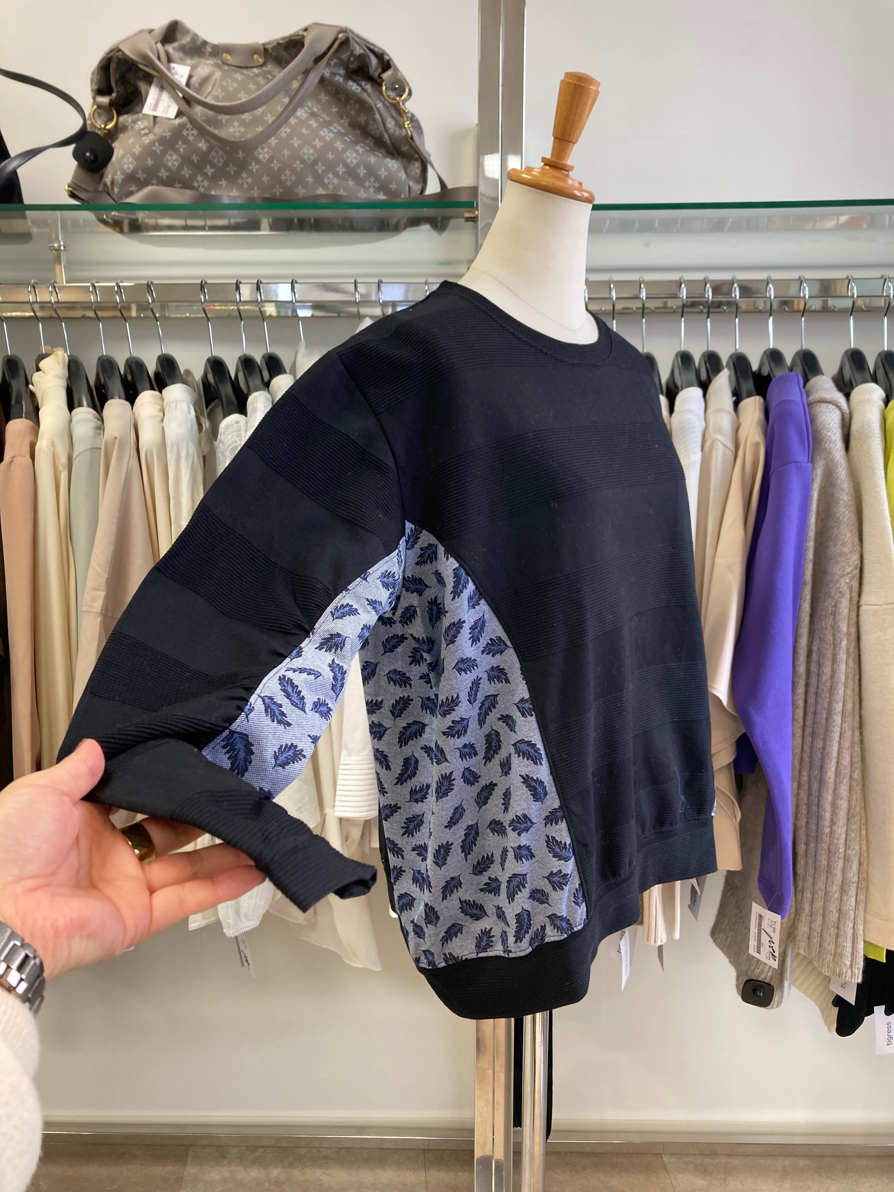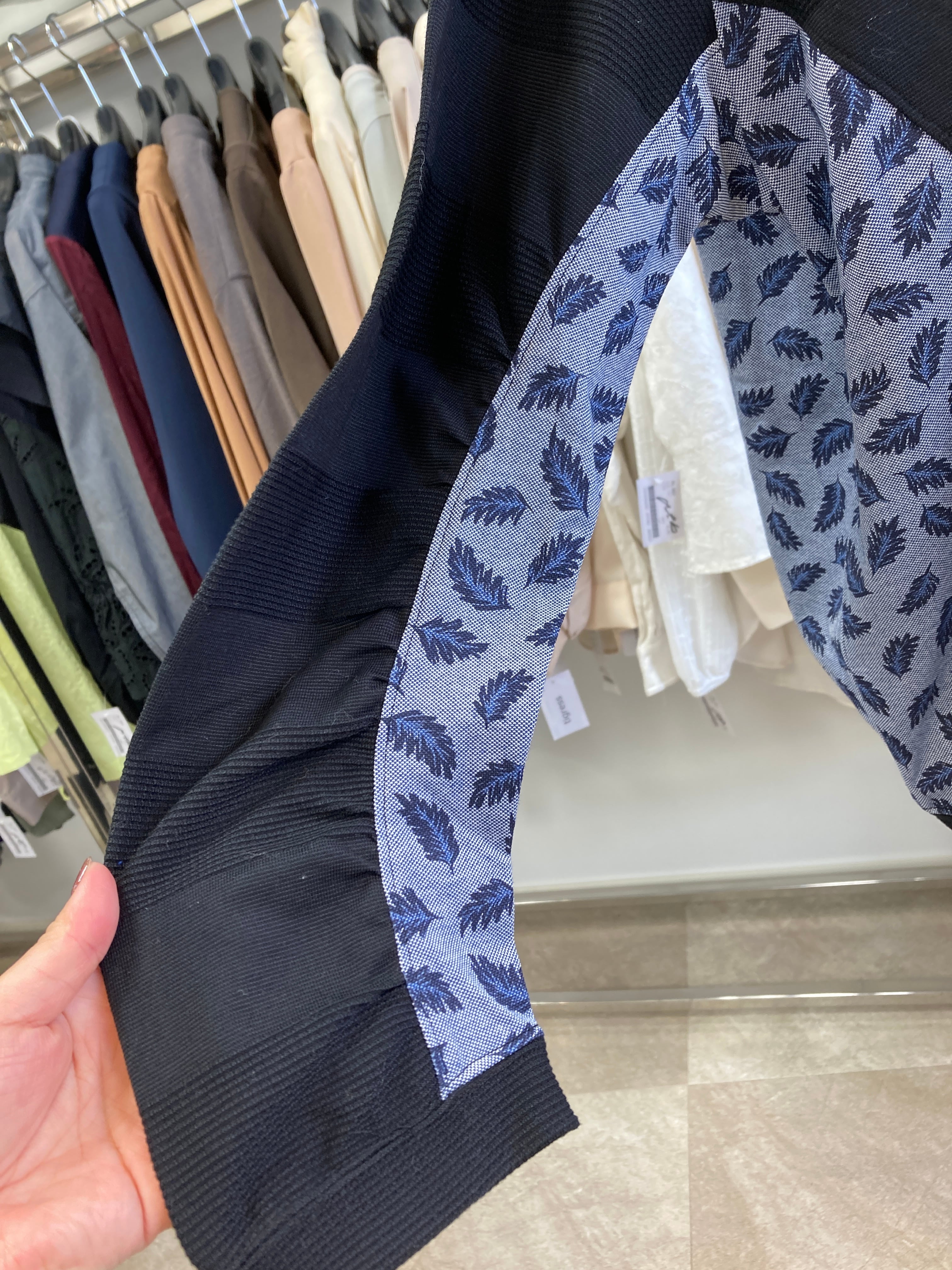 ブラック×ネイビーの異素材コンビ