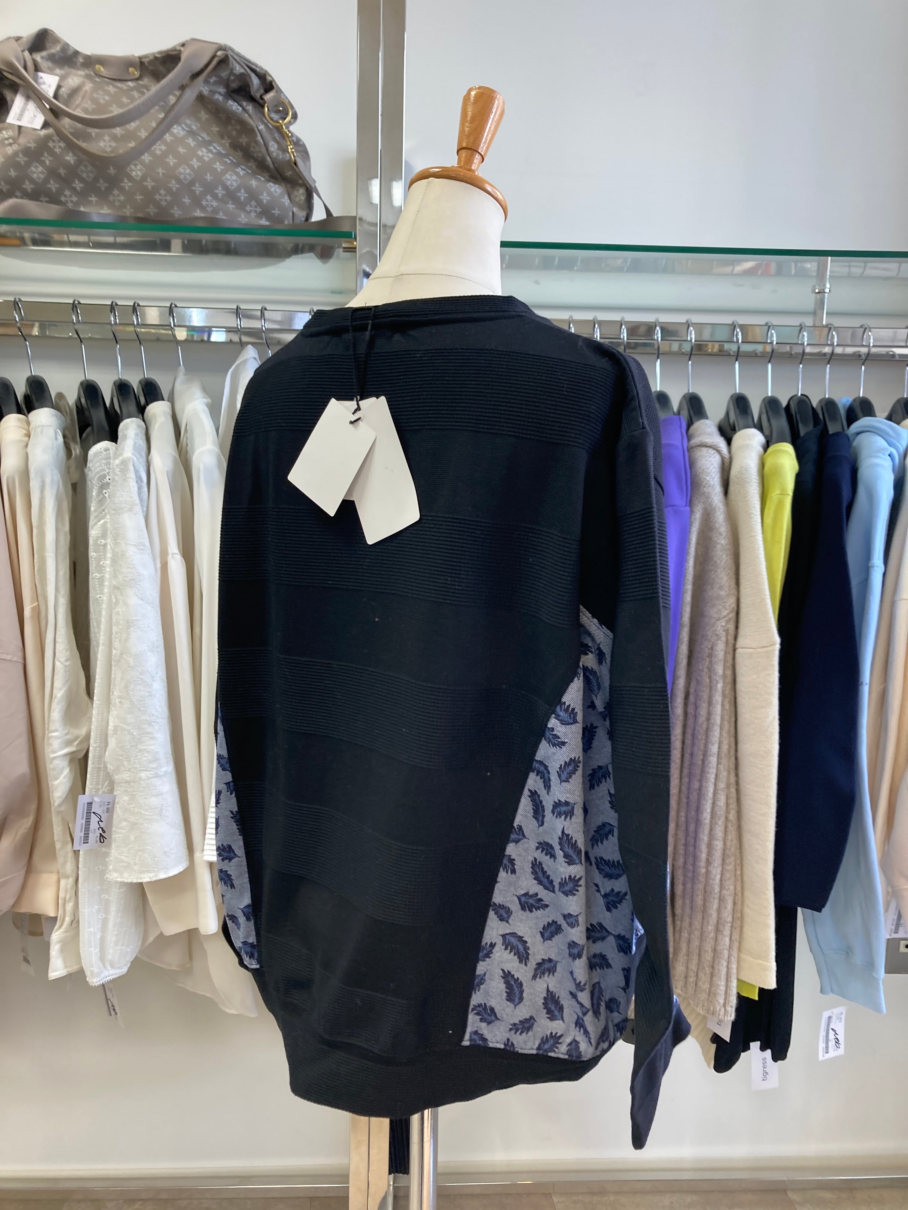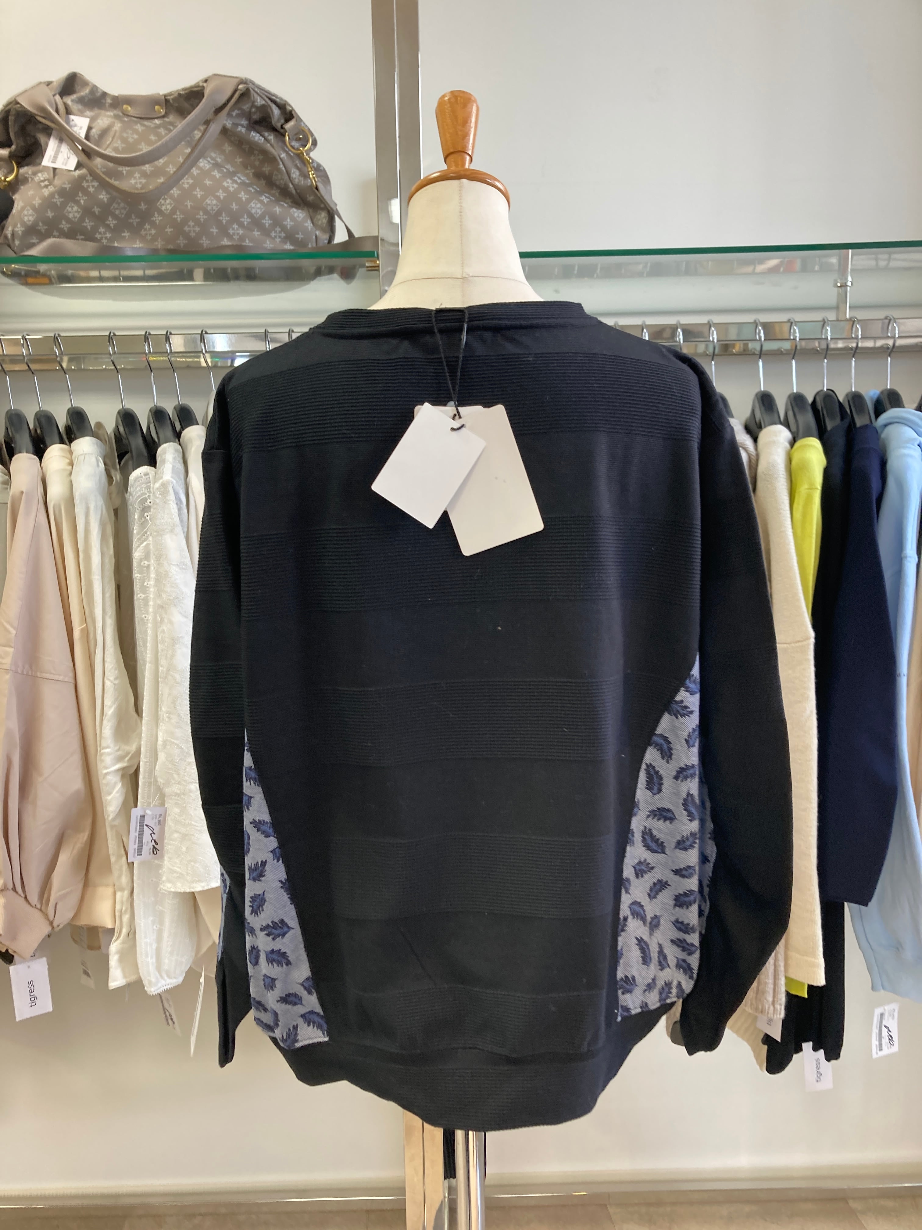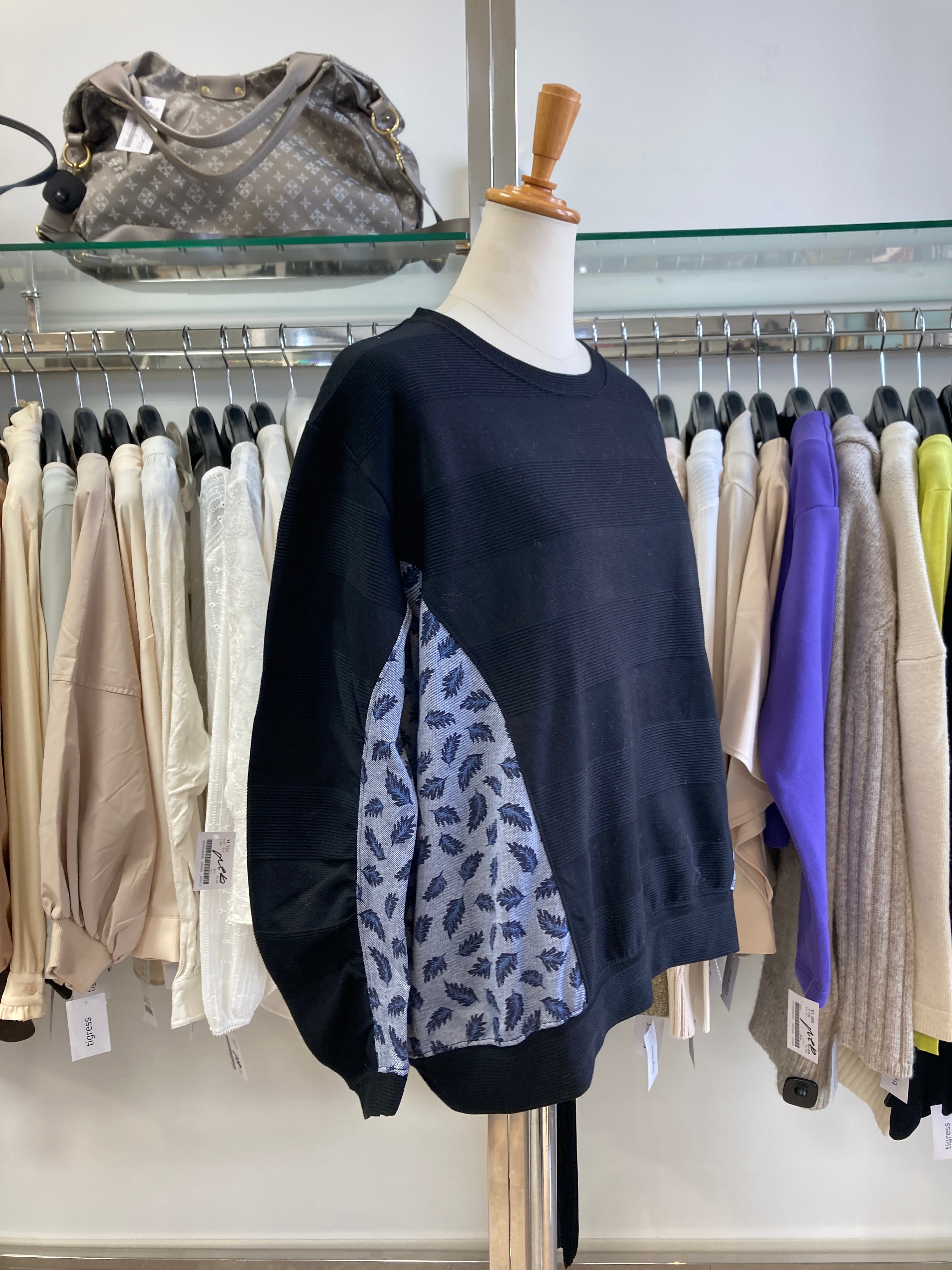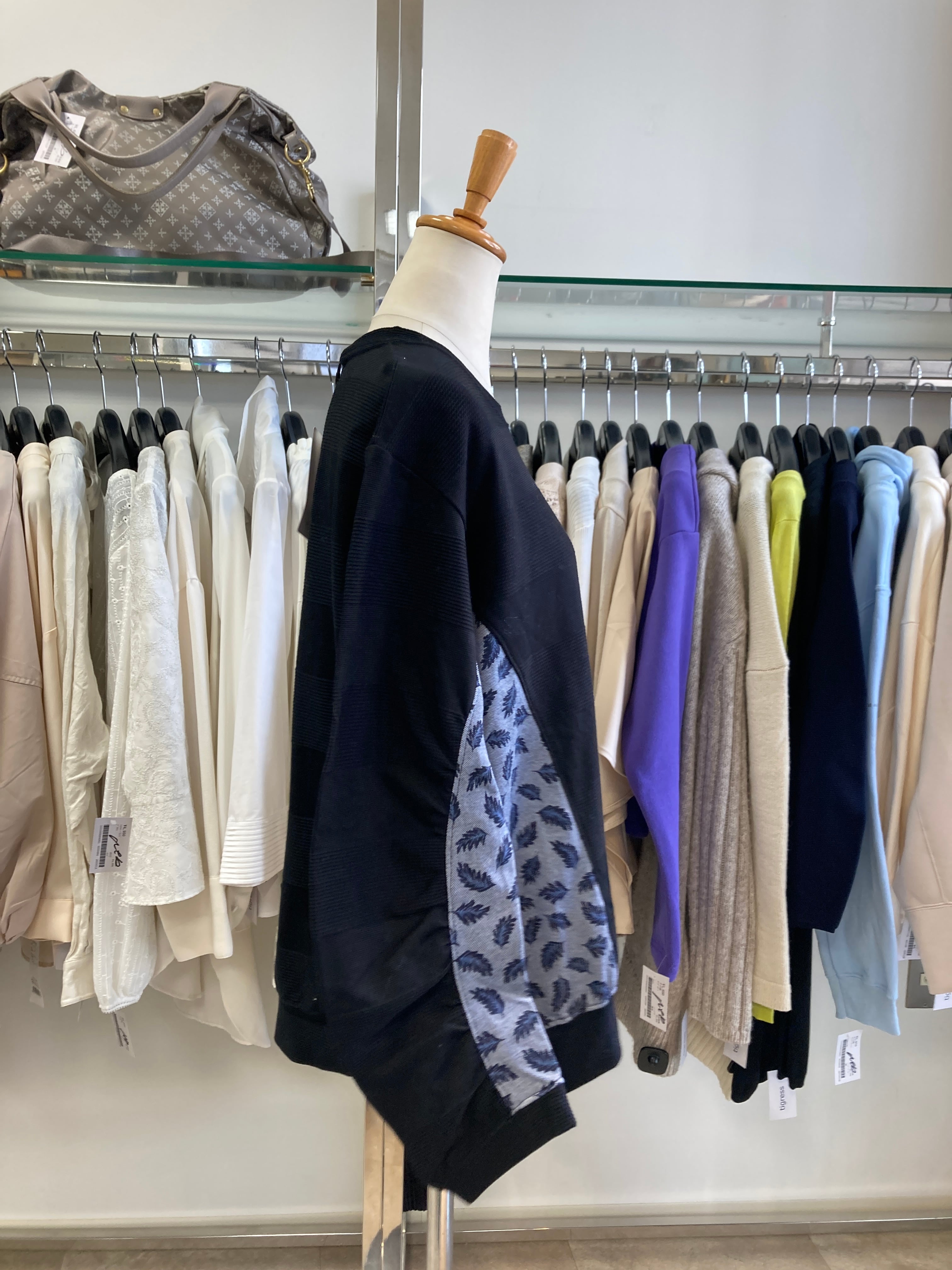ブラック×ネイビーの異素材コンビ