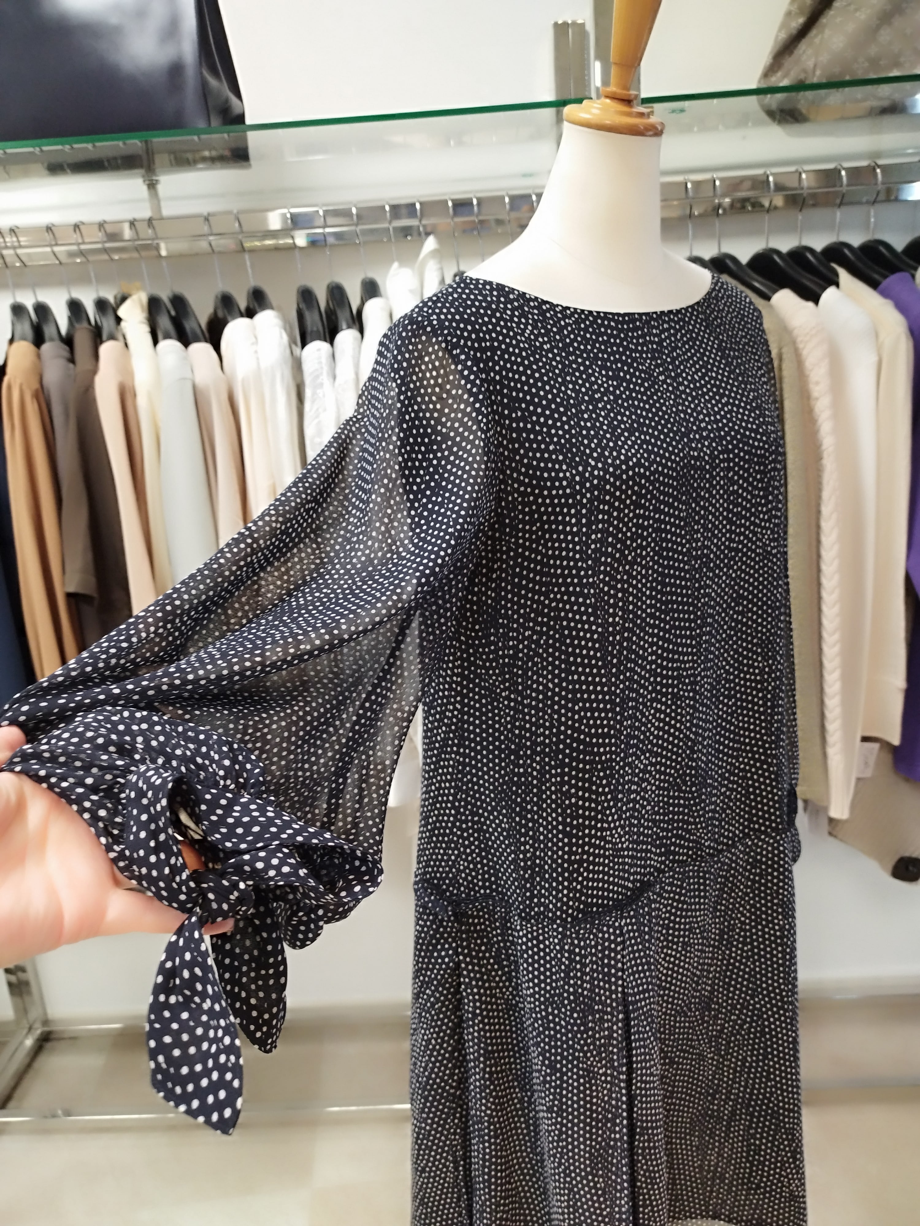 ネイビードットモチーフ柄 着丈91目安