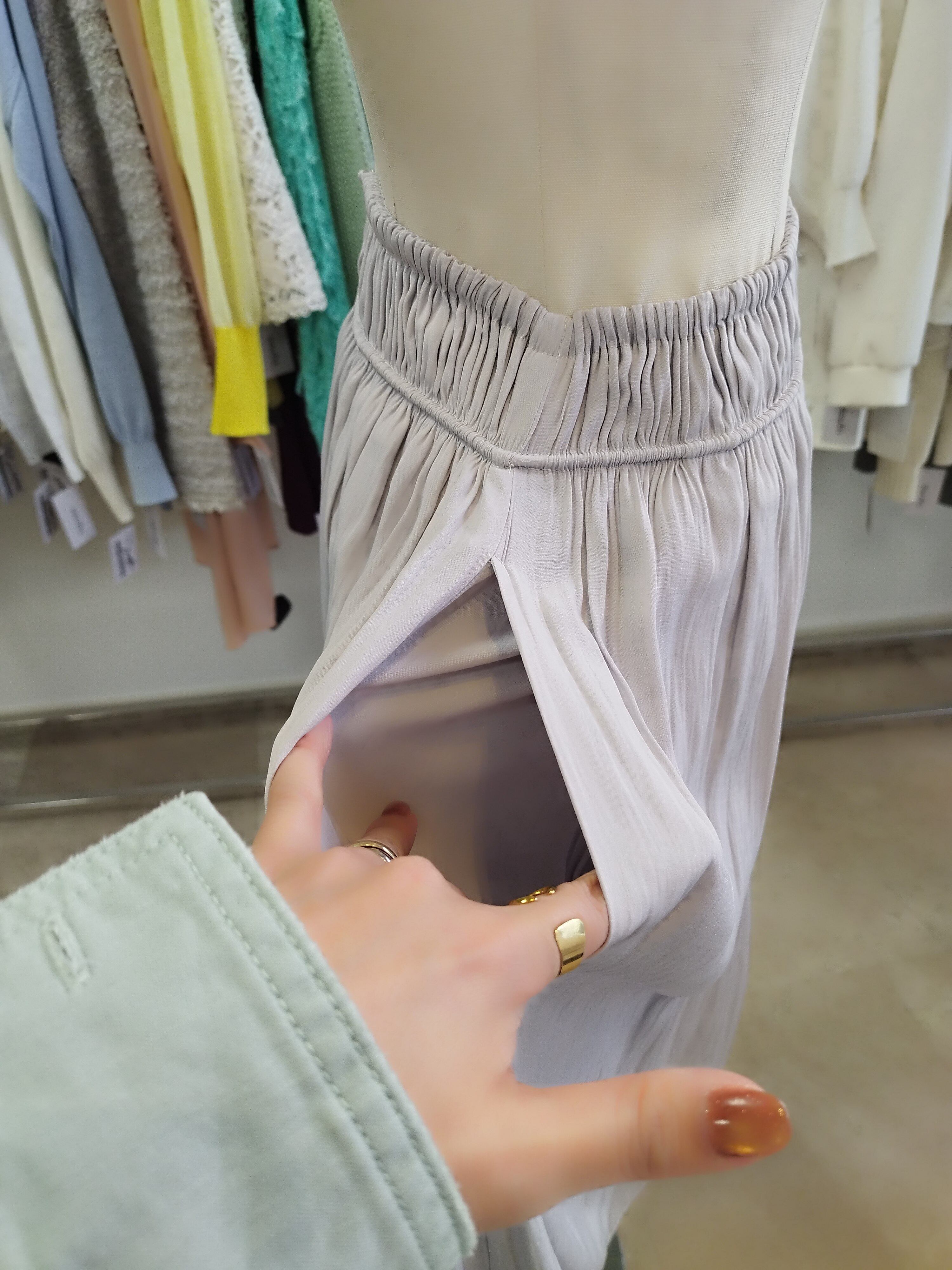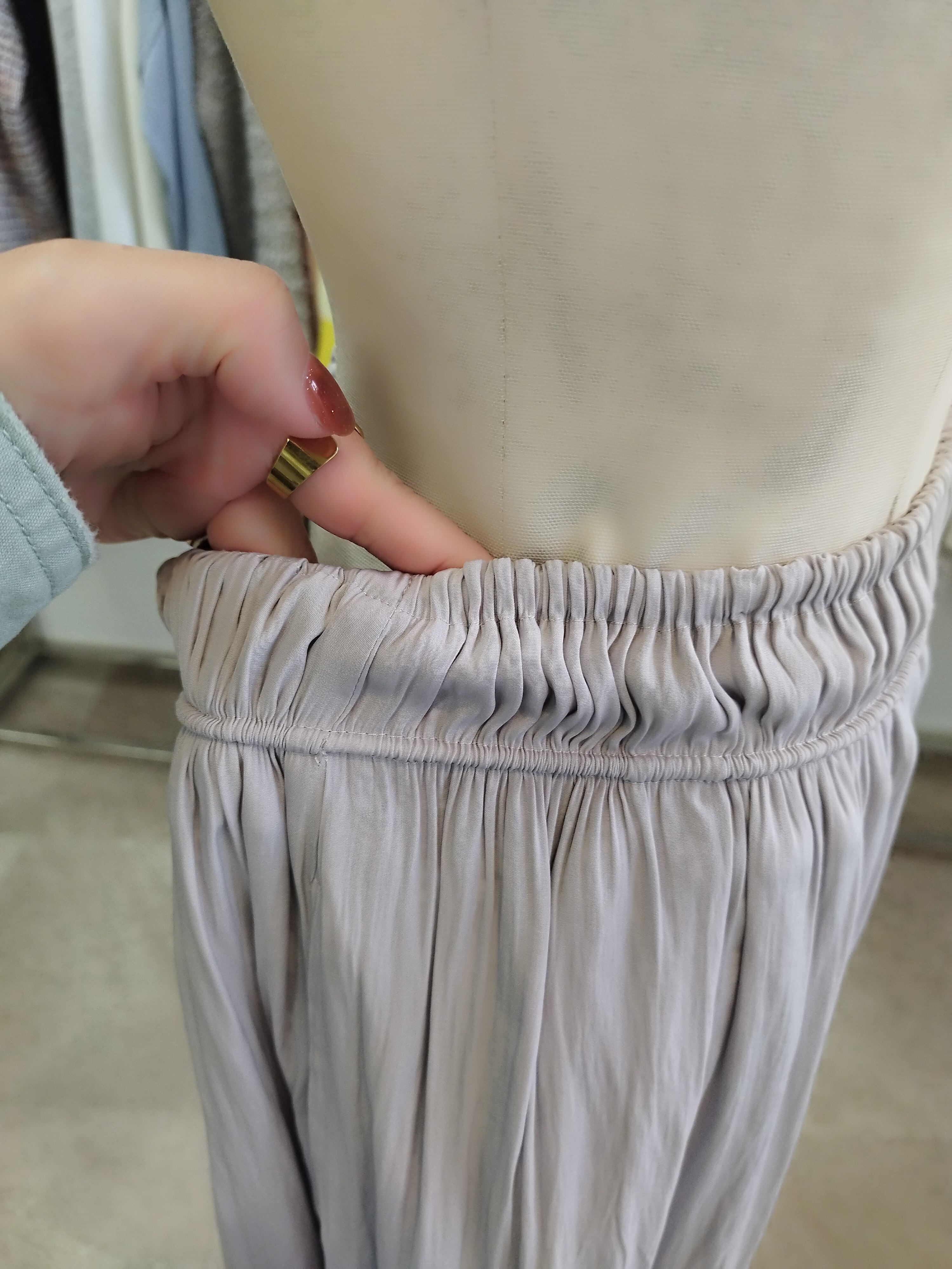 裏地あり ウエスト総ゴム 着丈87目安