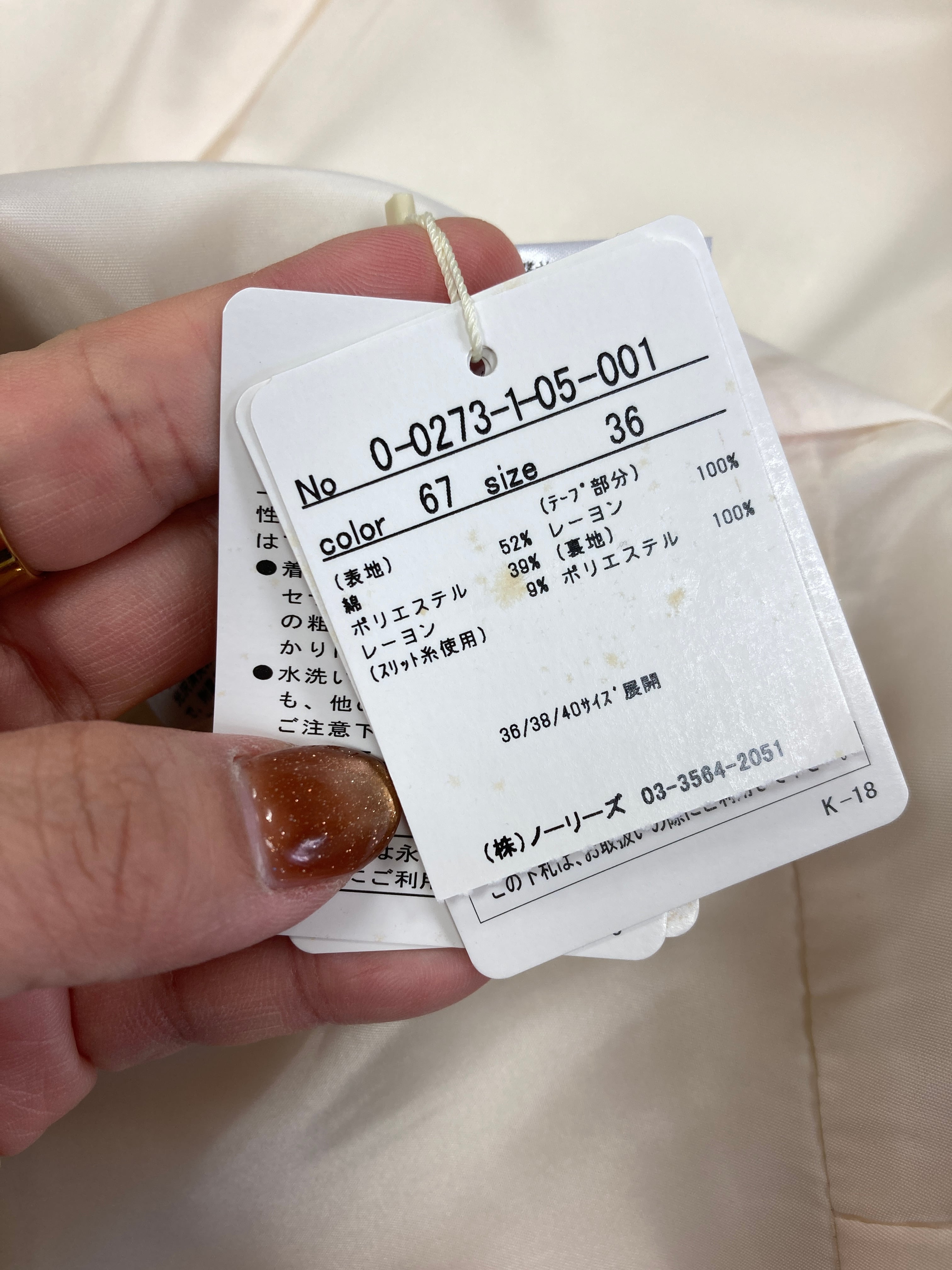 アイボリー系 裏地あり