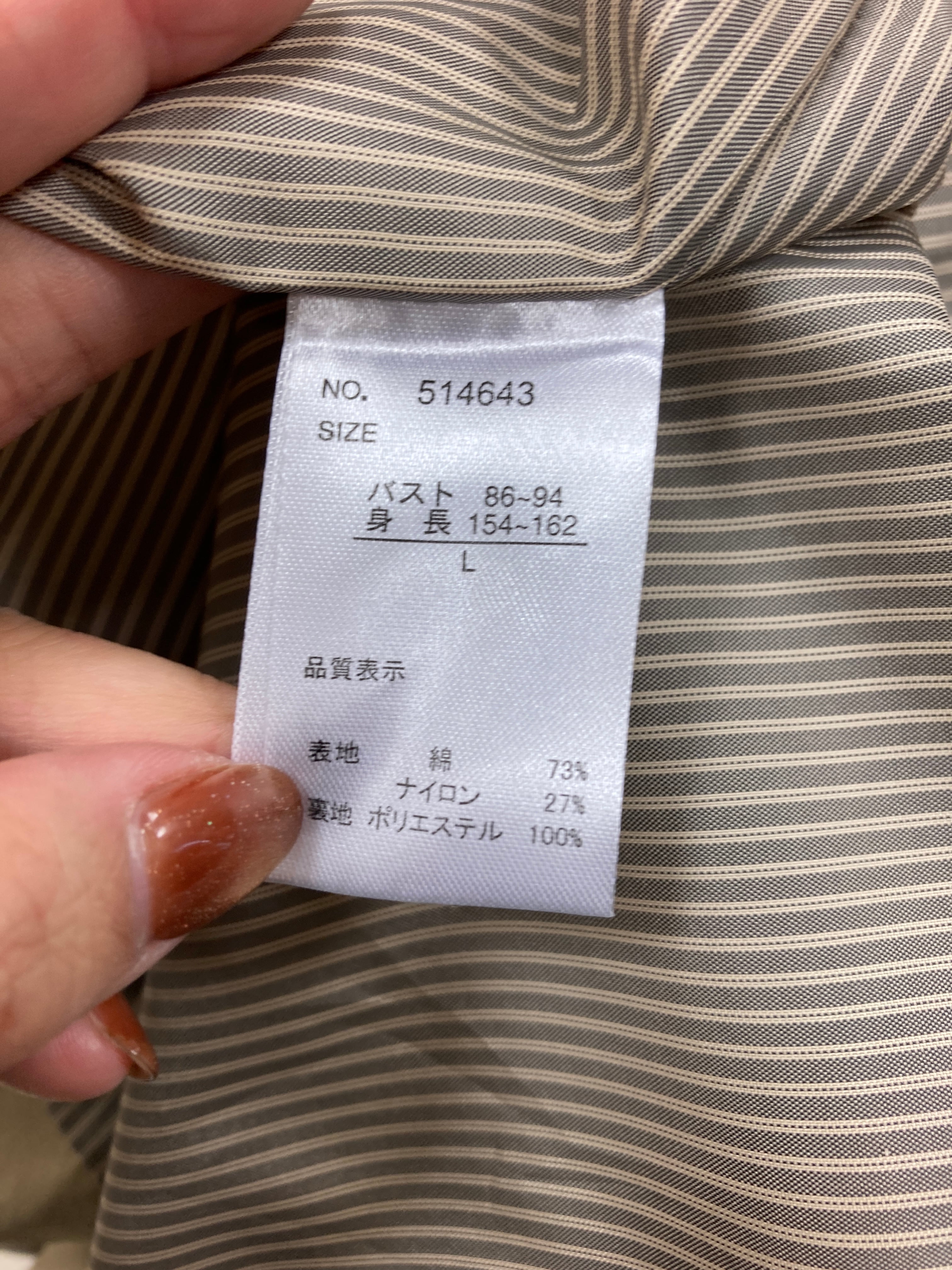 ベルト付き 裏地あり
