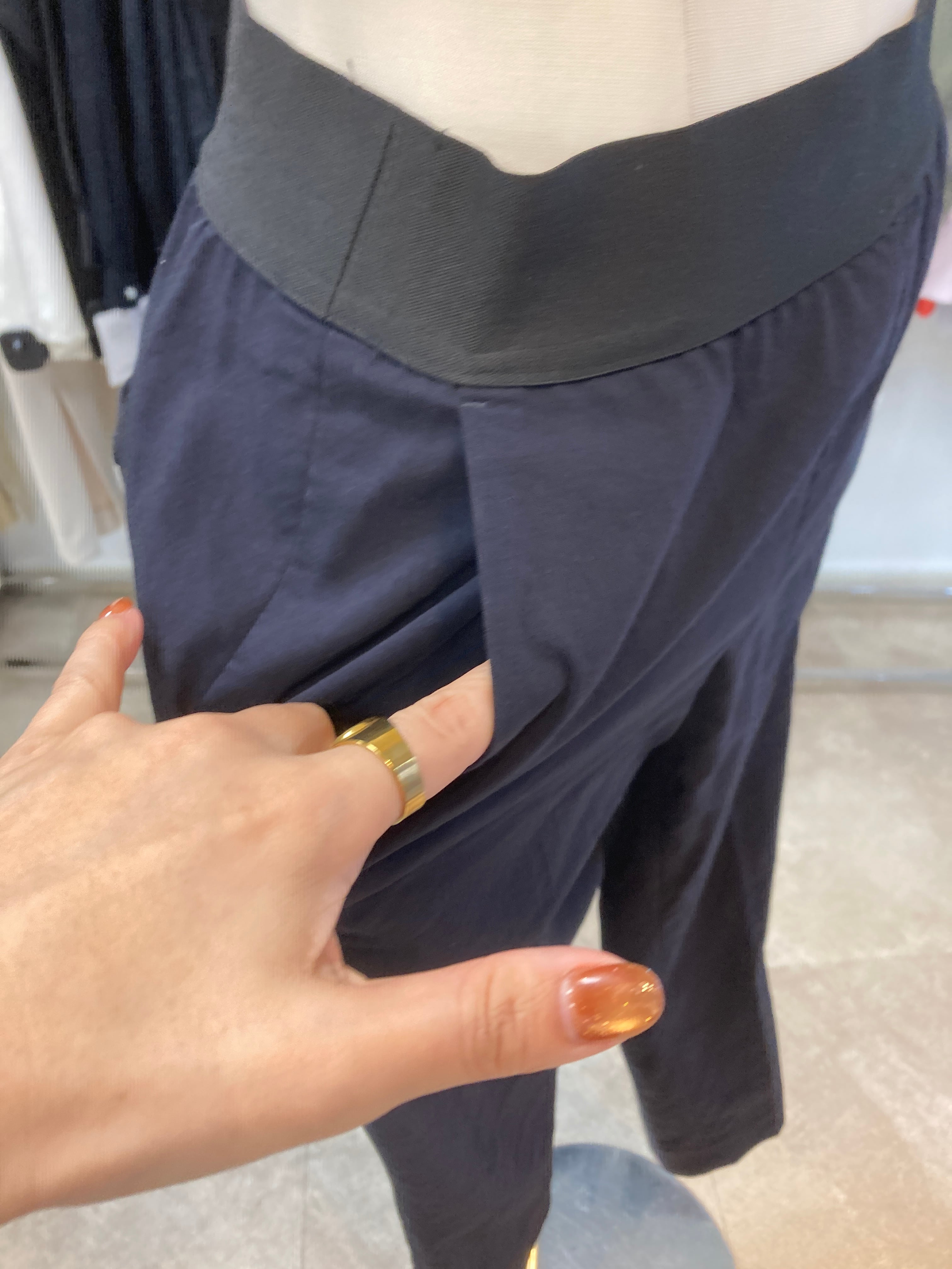 ウエスト総ゴム ストレッチ素材です