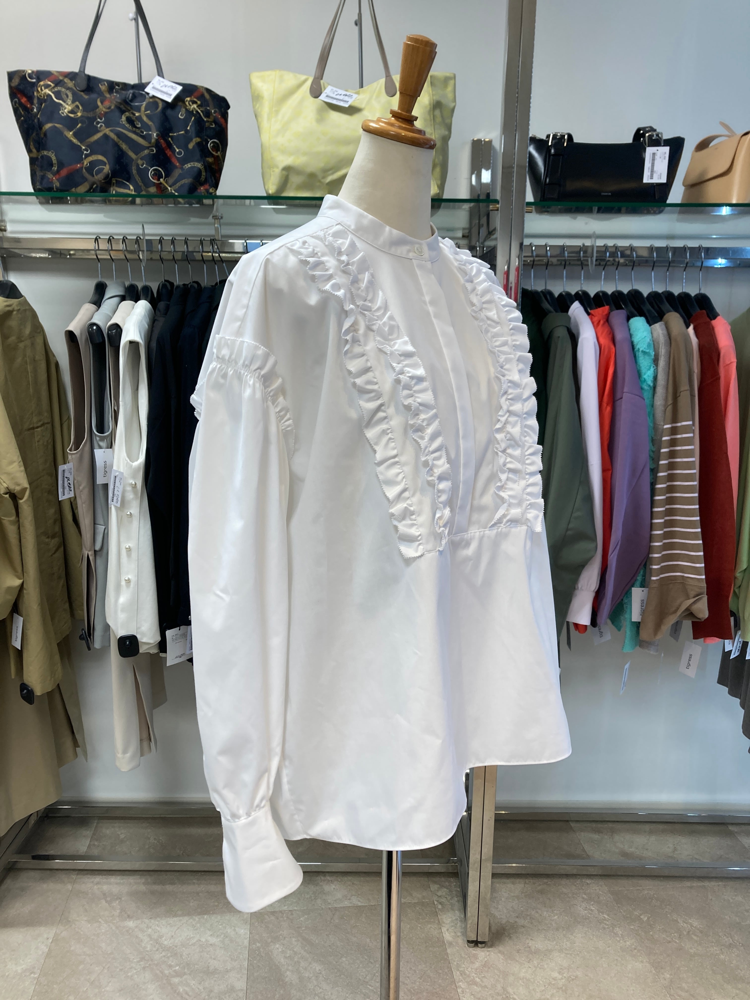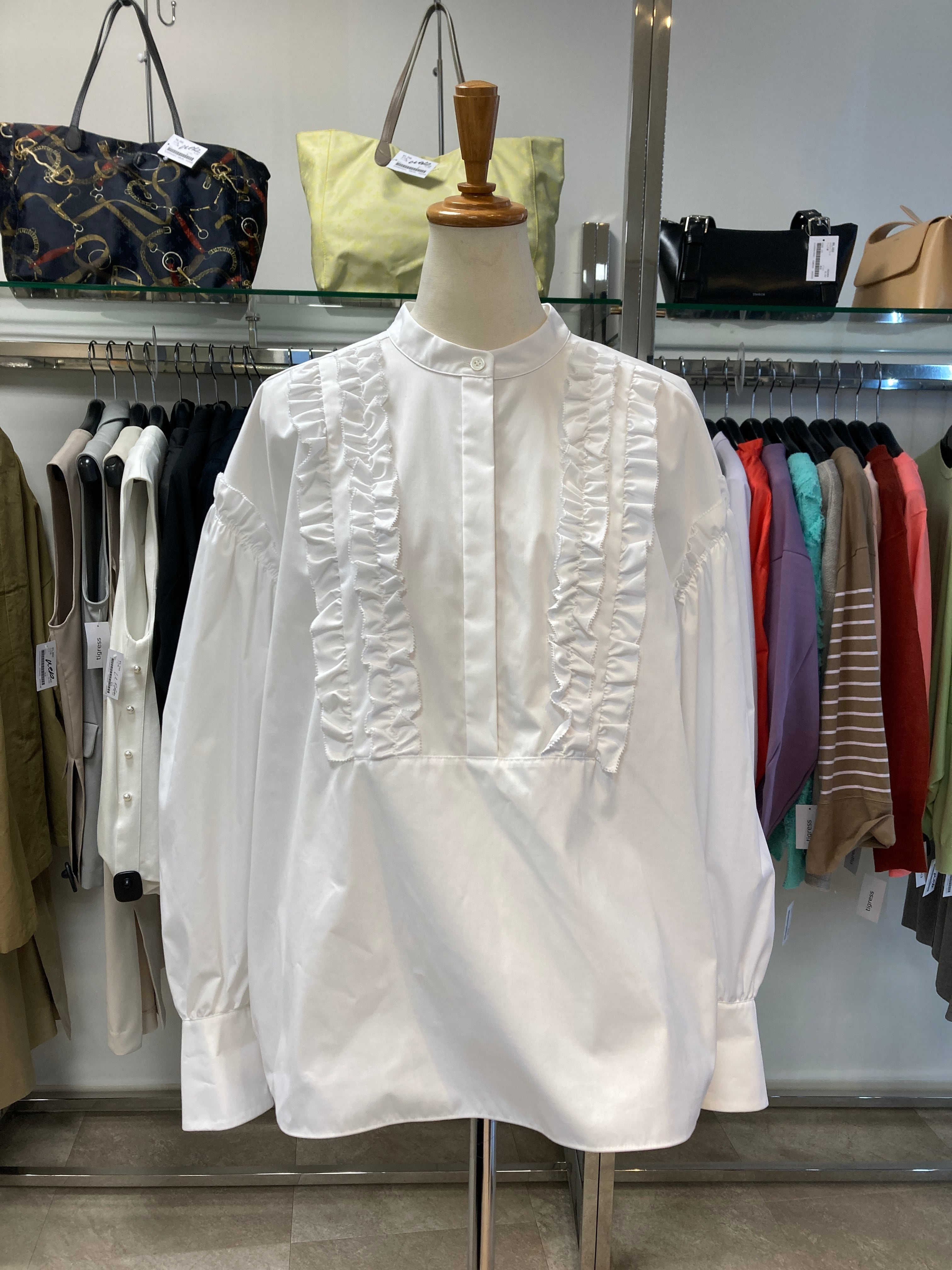 セオリーリュクス フリル白シャツ