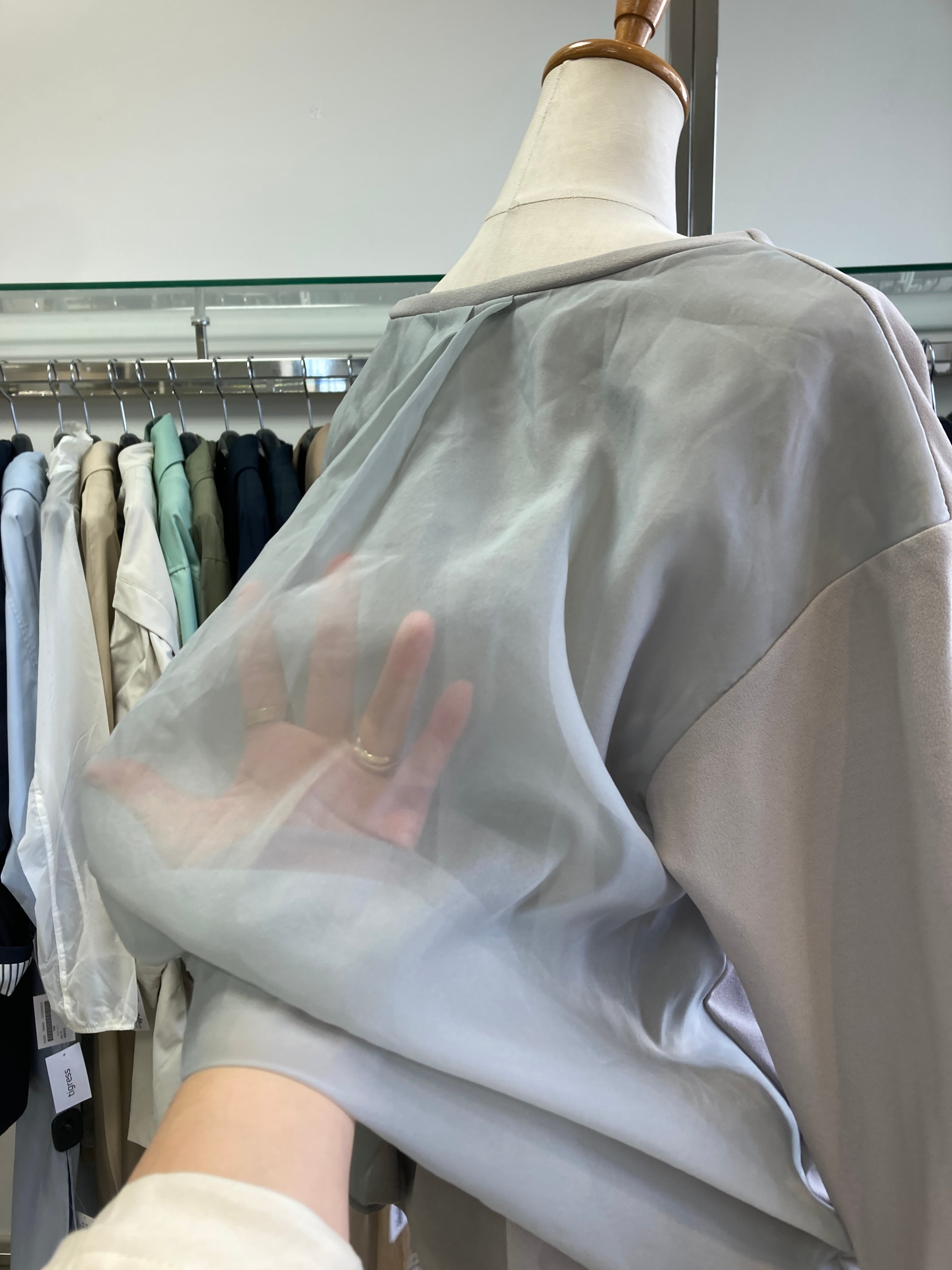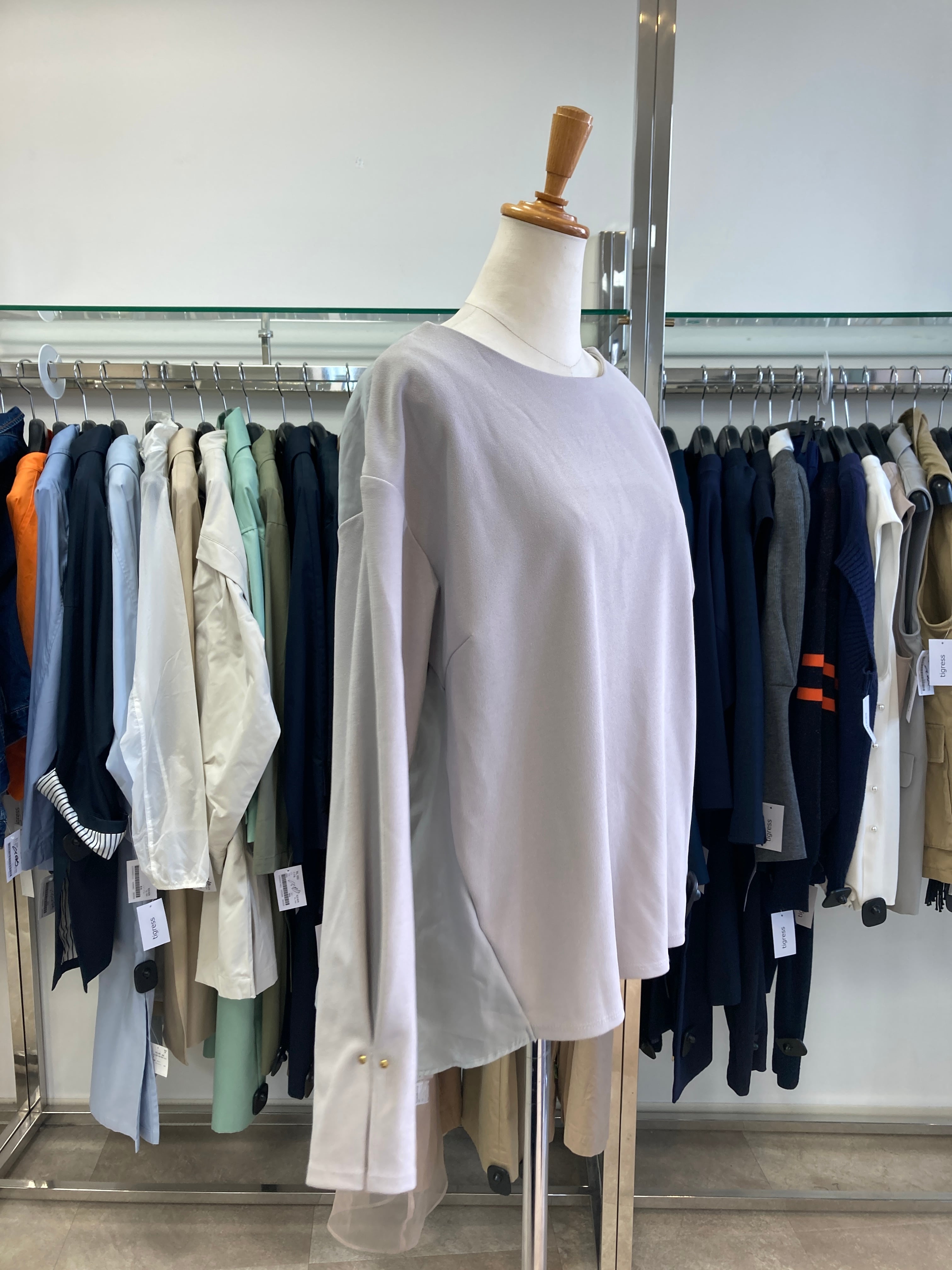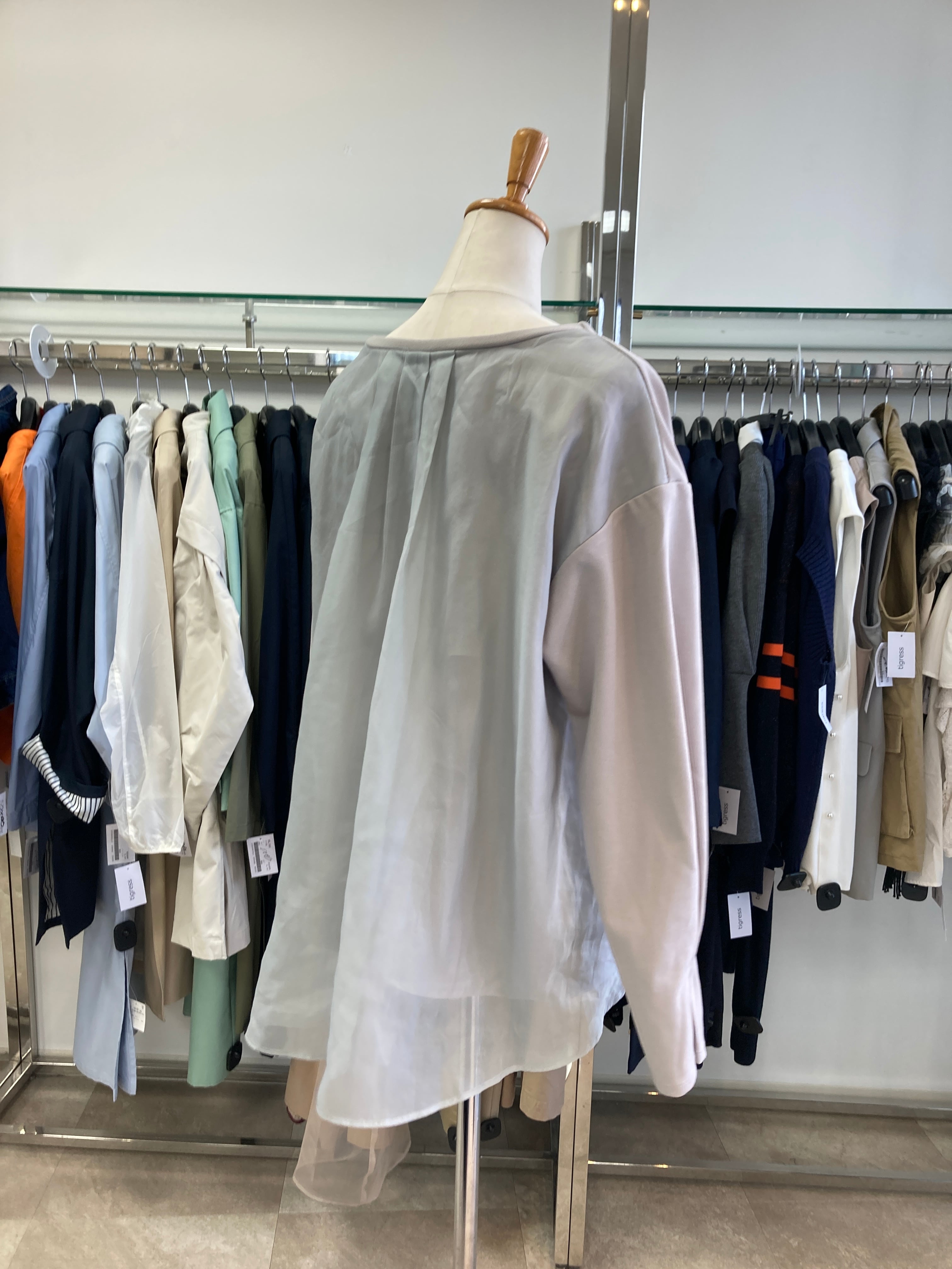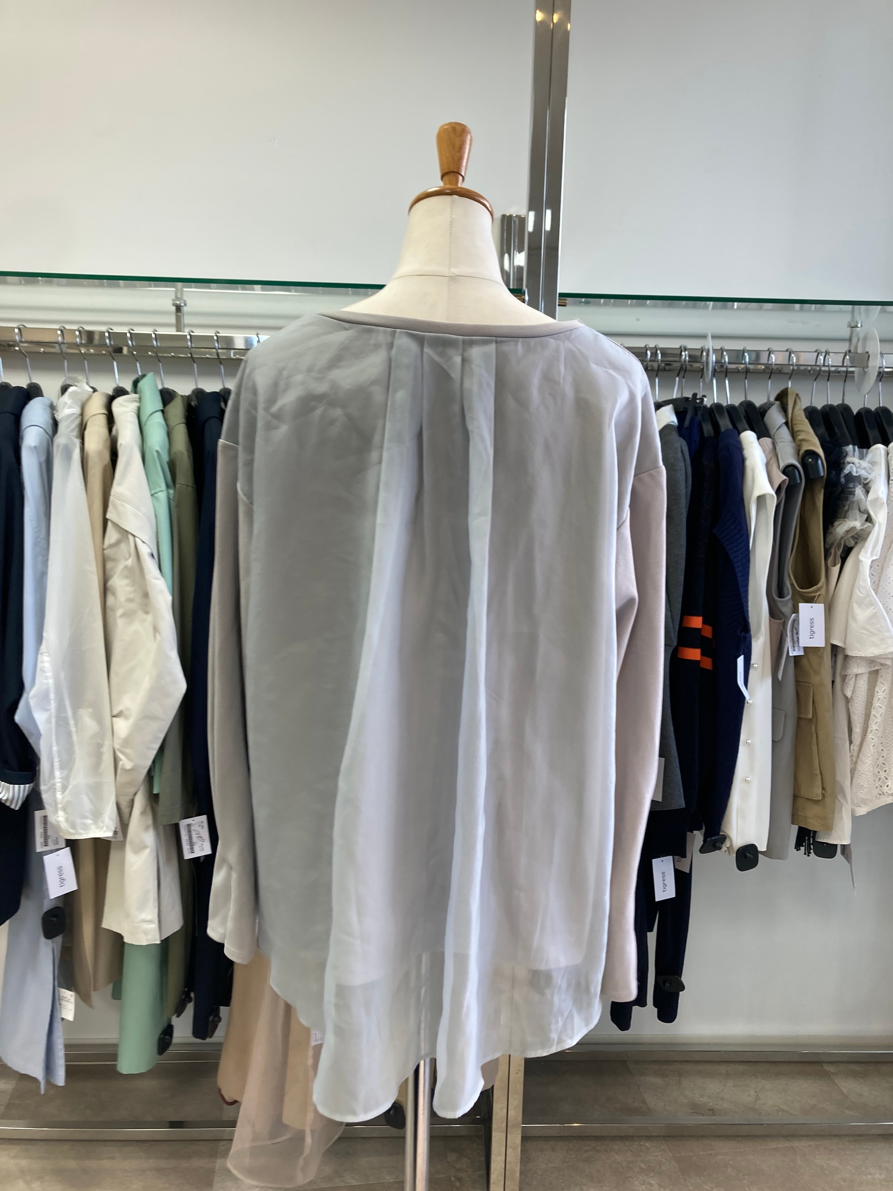 グレー系 部分的にチュール素材