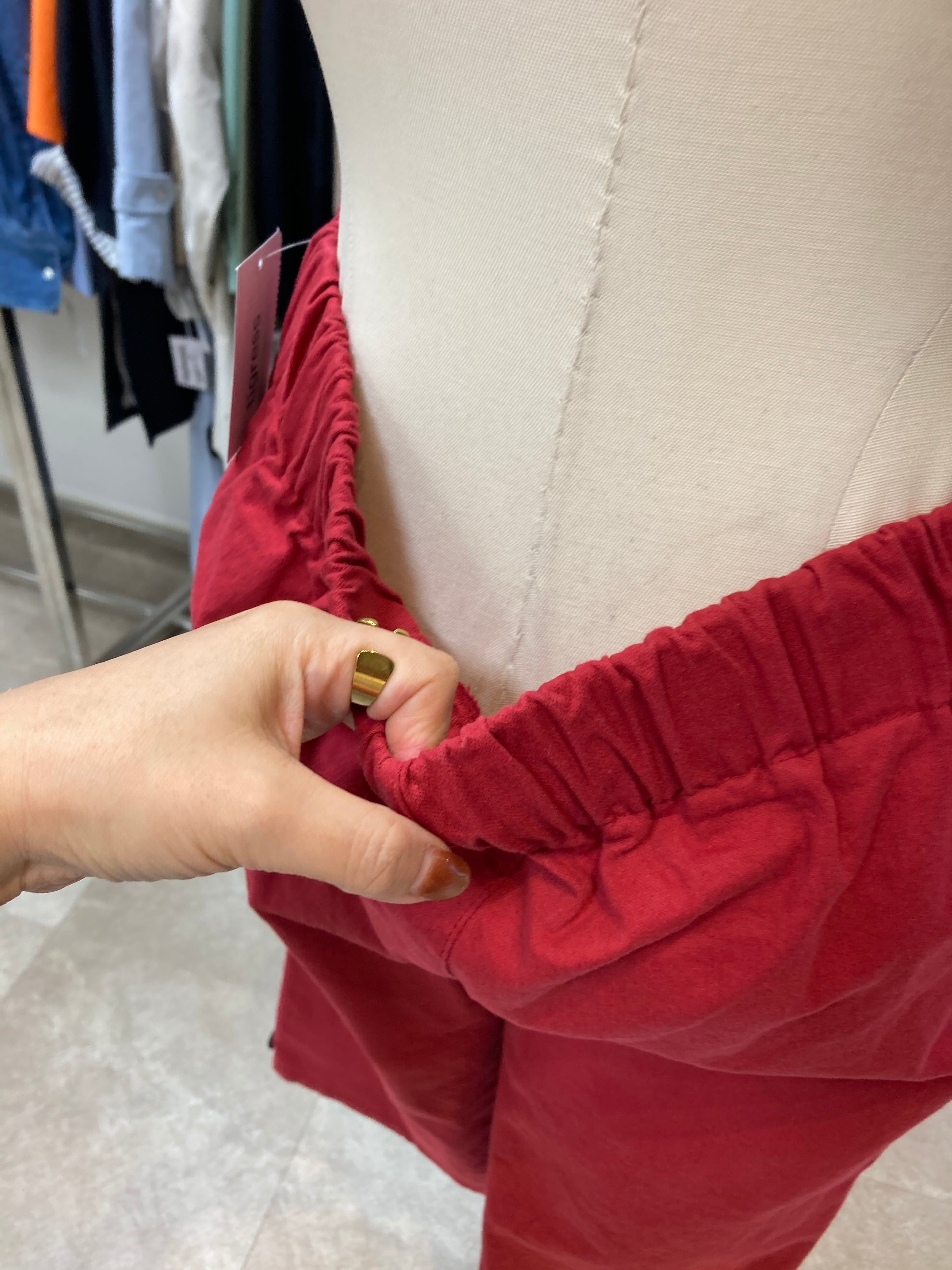 ストラ素材でウエスト総ゴム