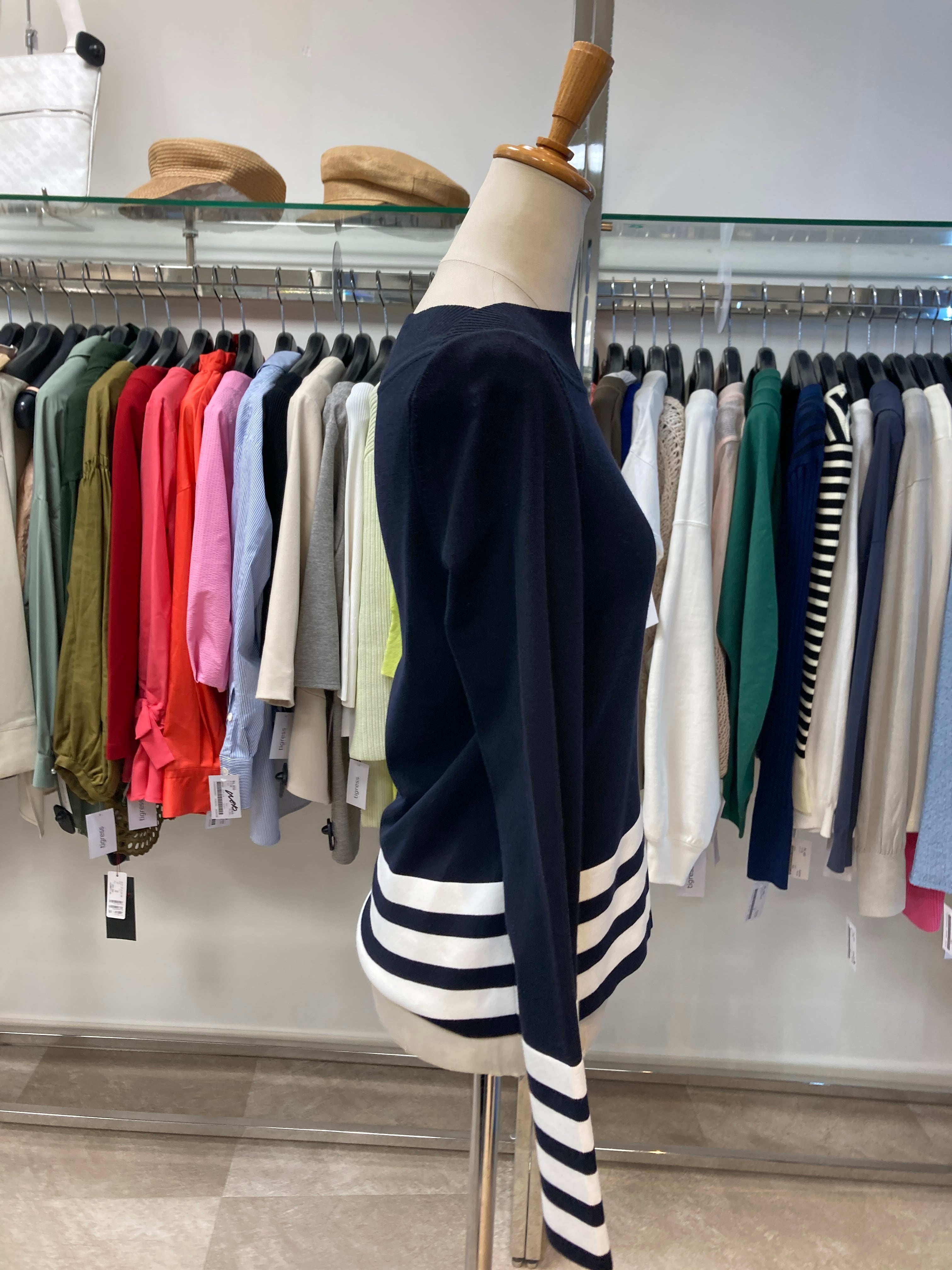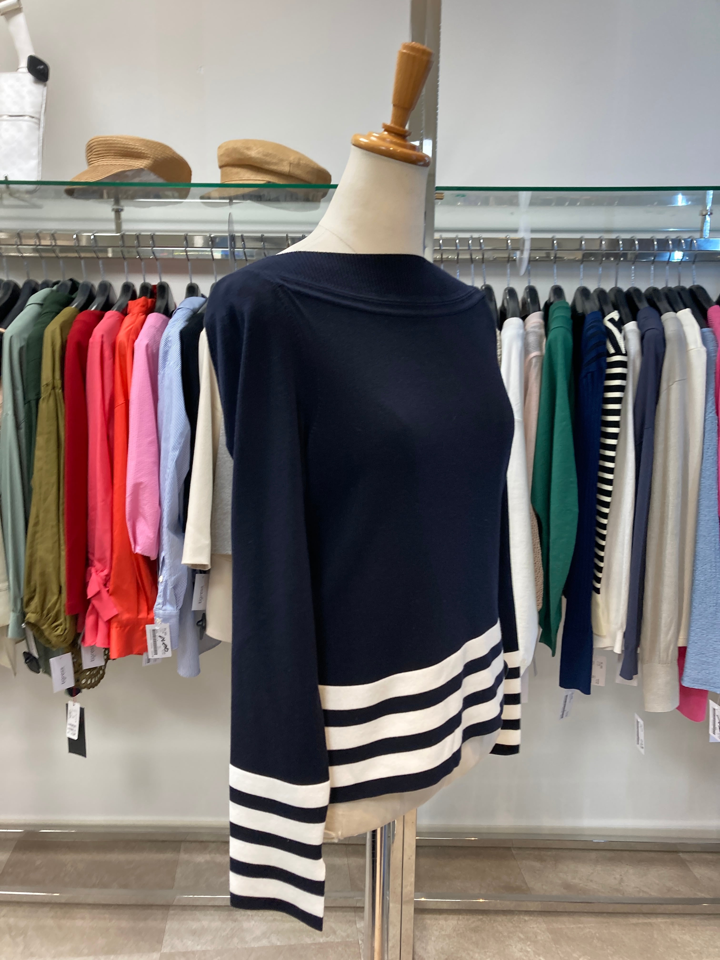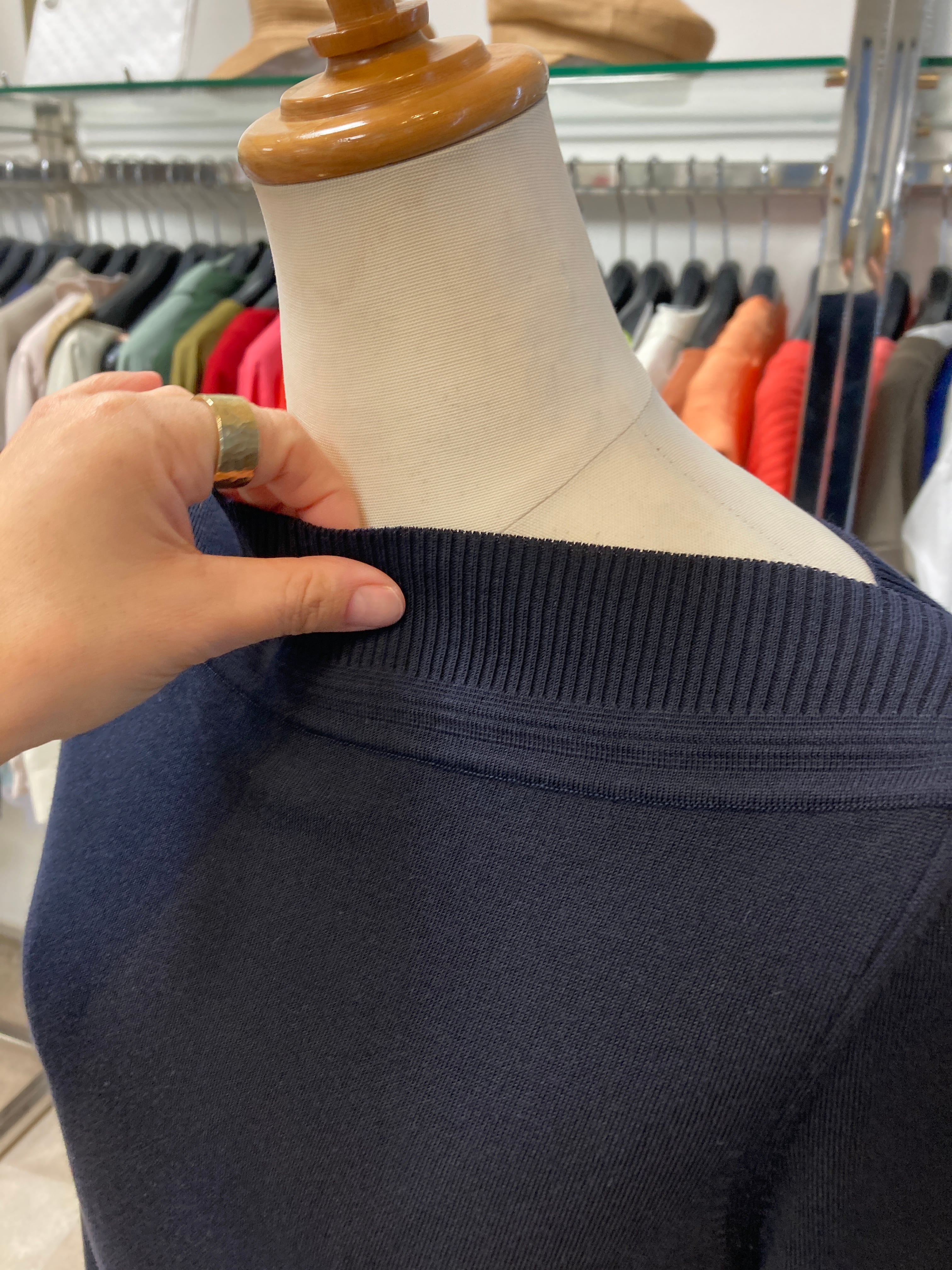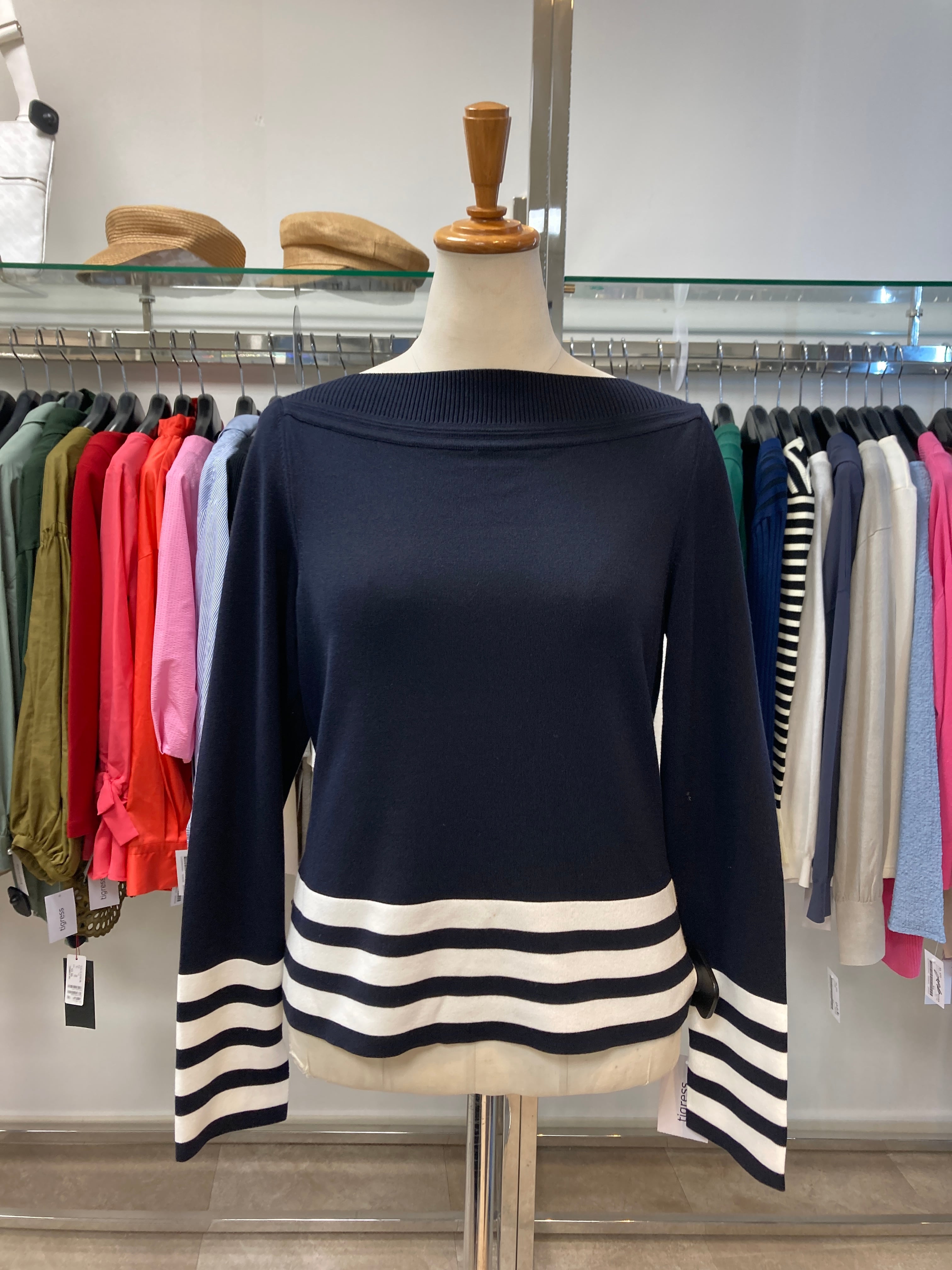 ボートネックが綺麗なシルエットです