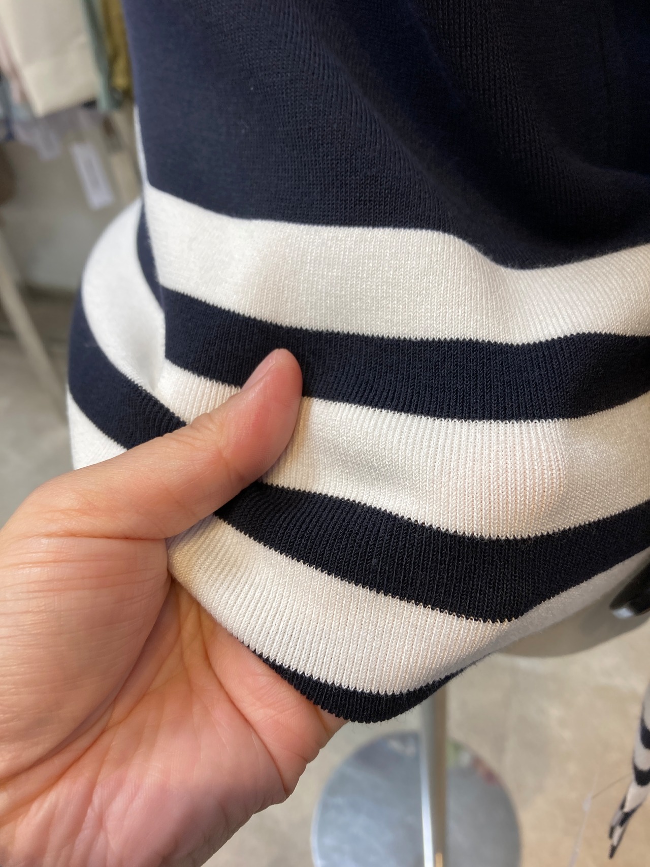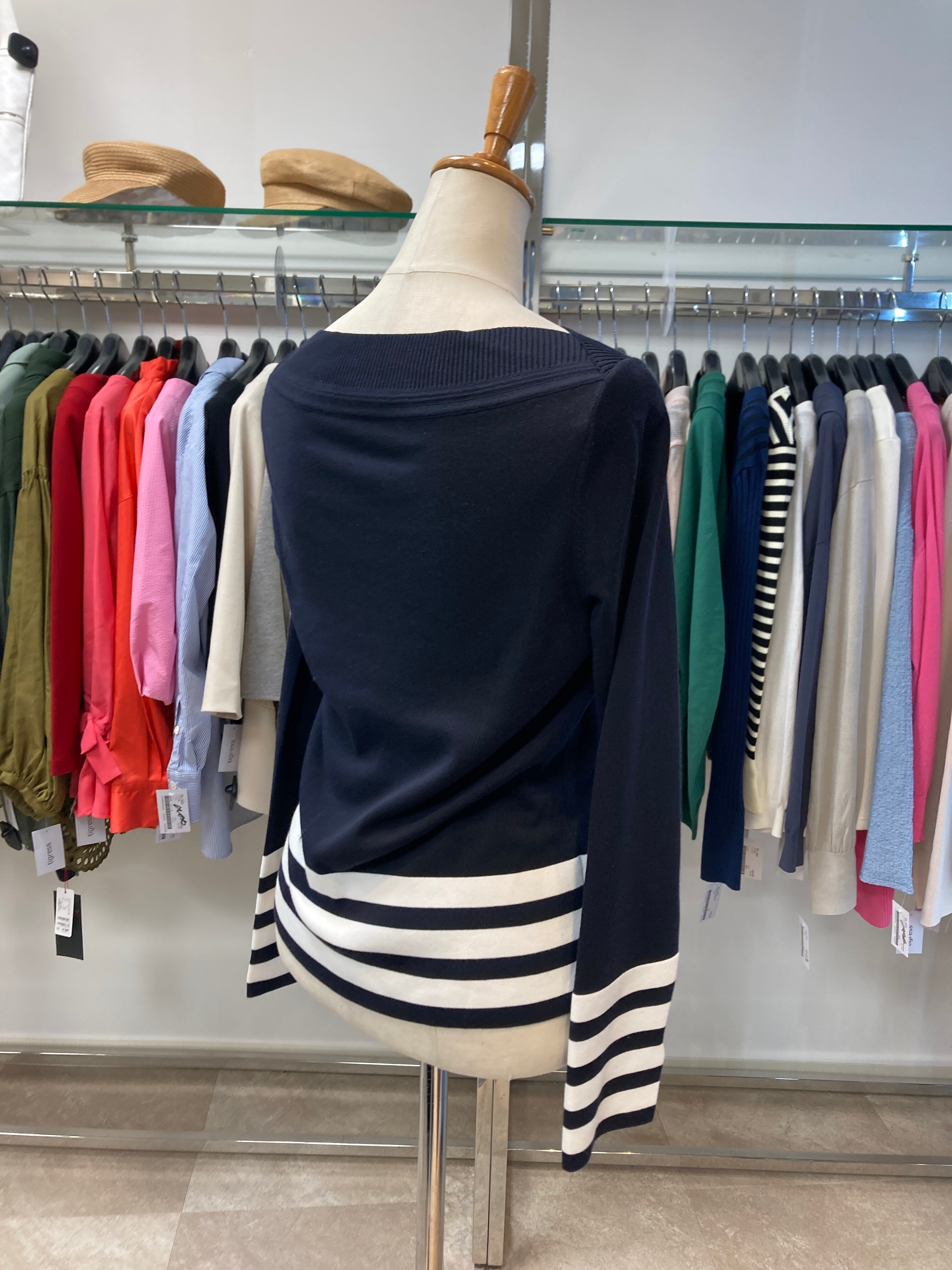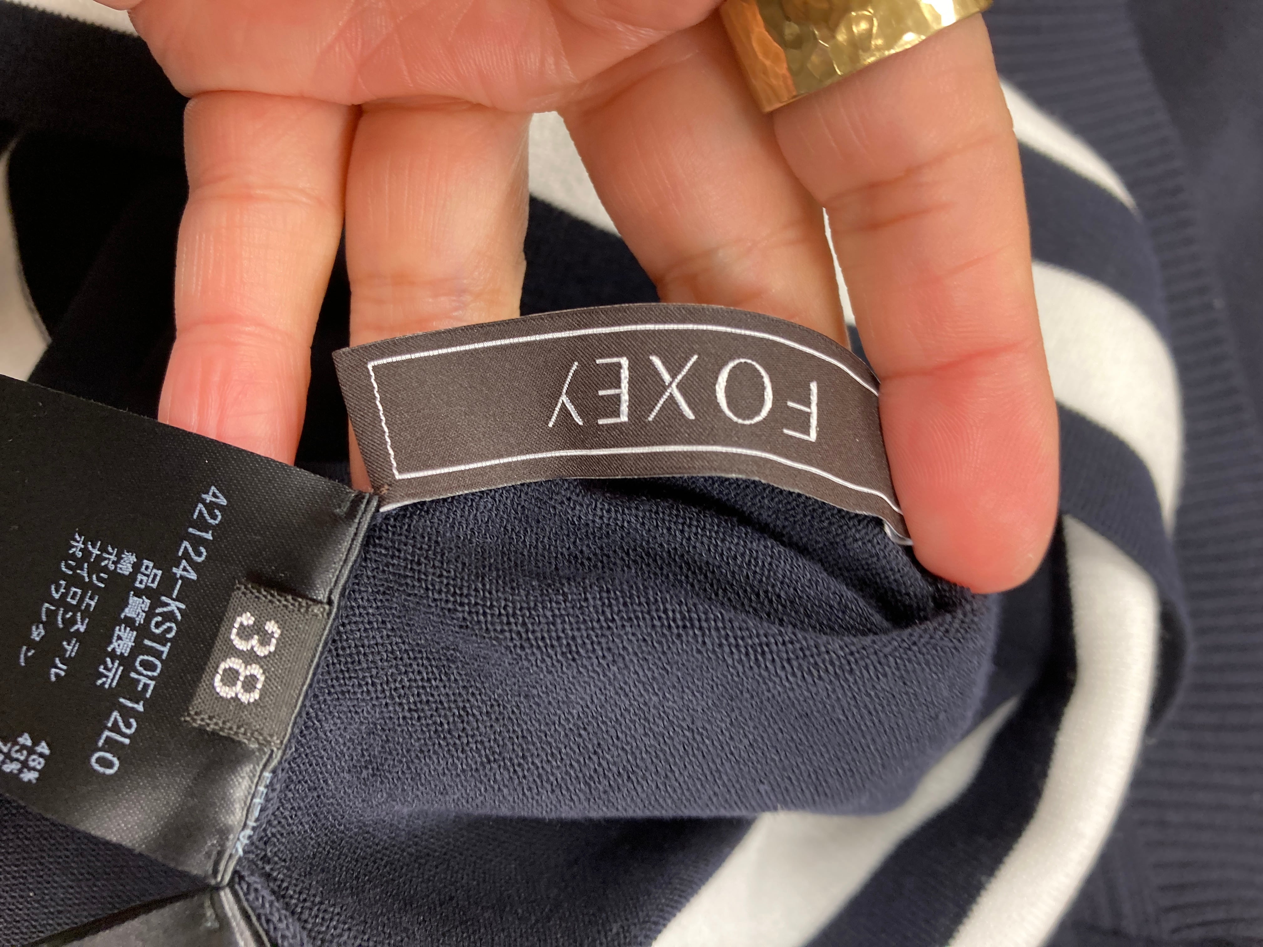 FOXEY ネイビーボーダーニット