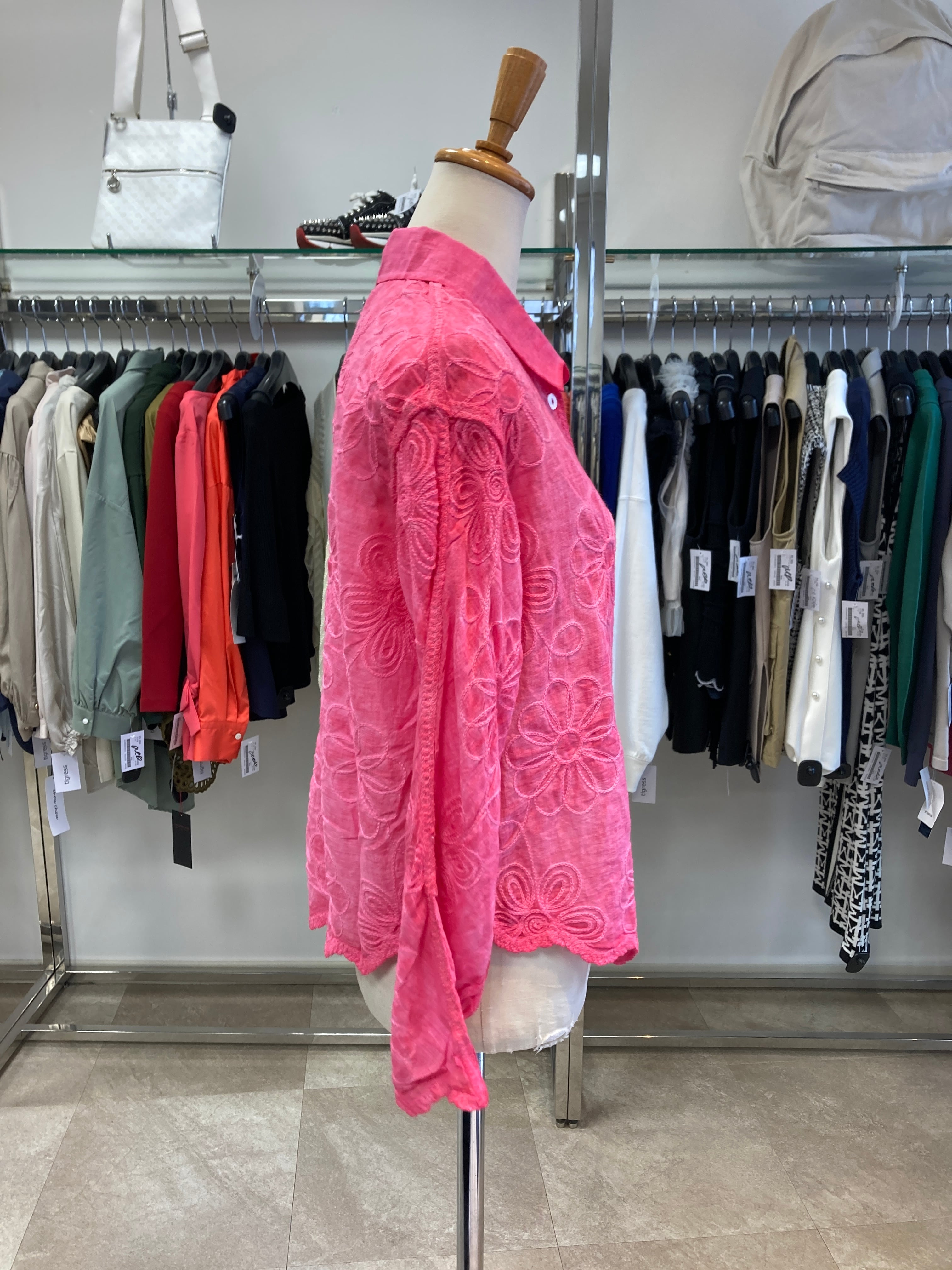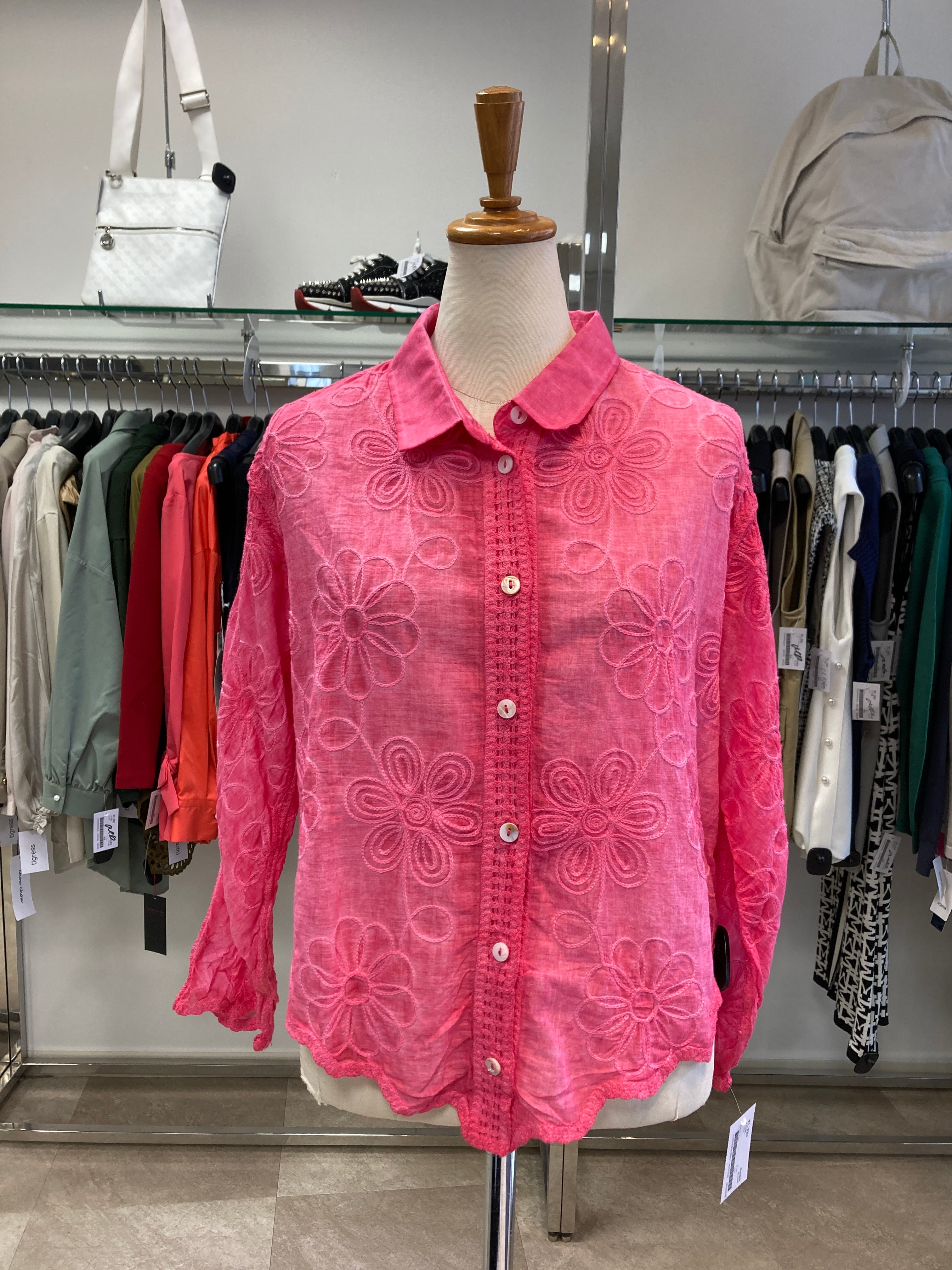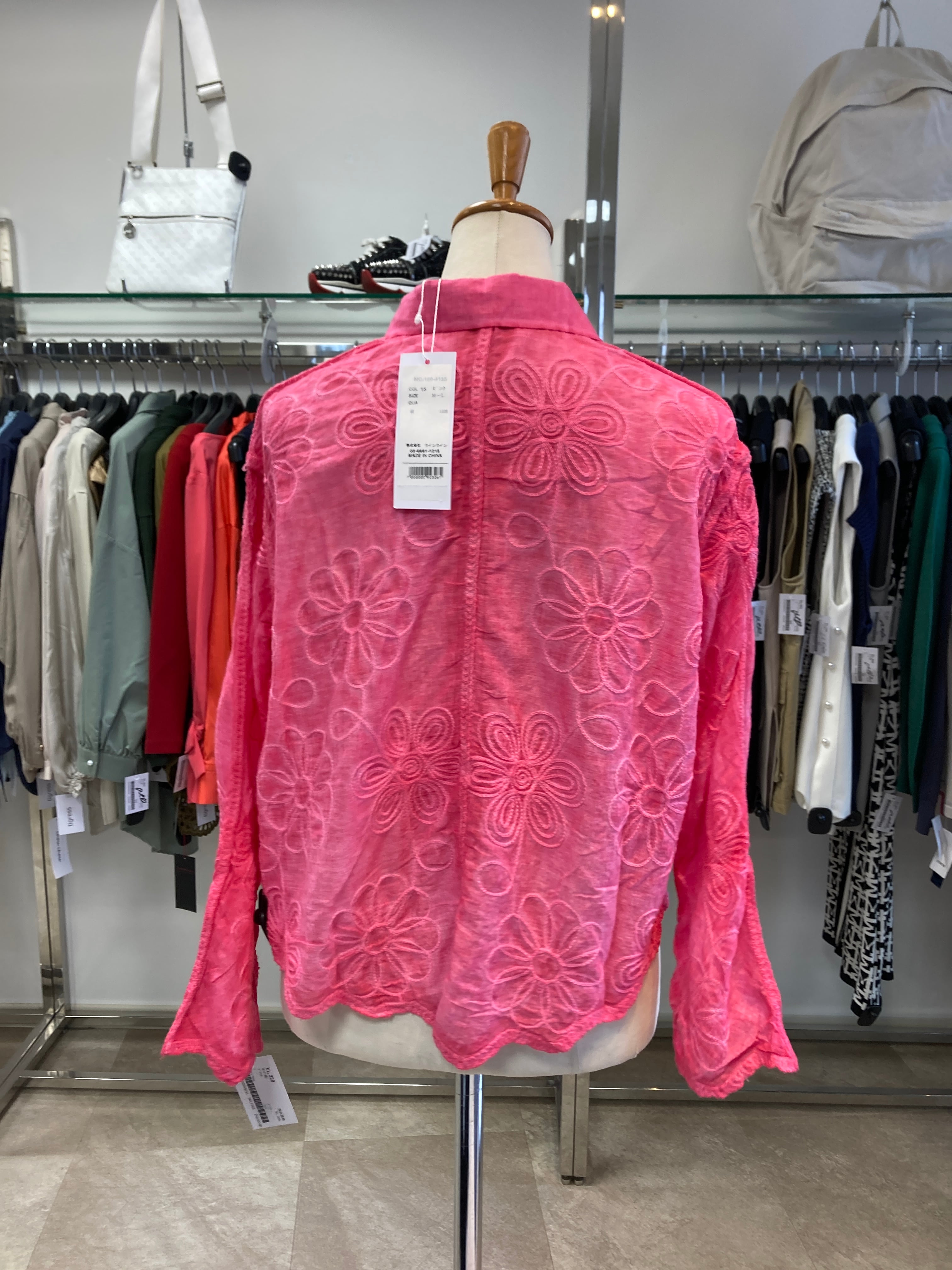 Fal'beu ピンク刺繍絞り染め風シャツ