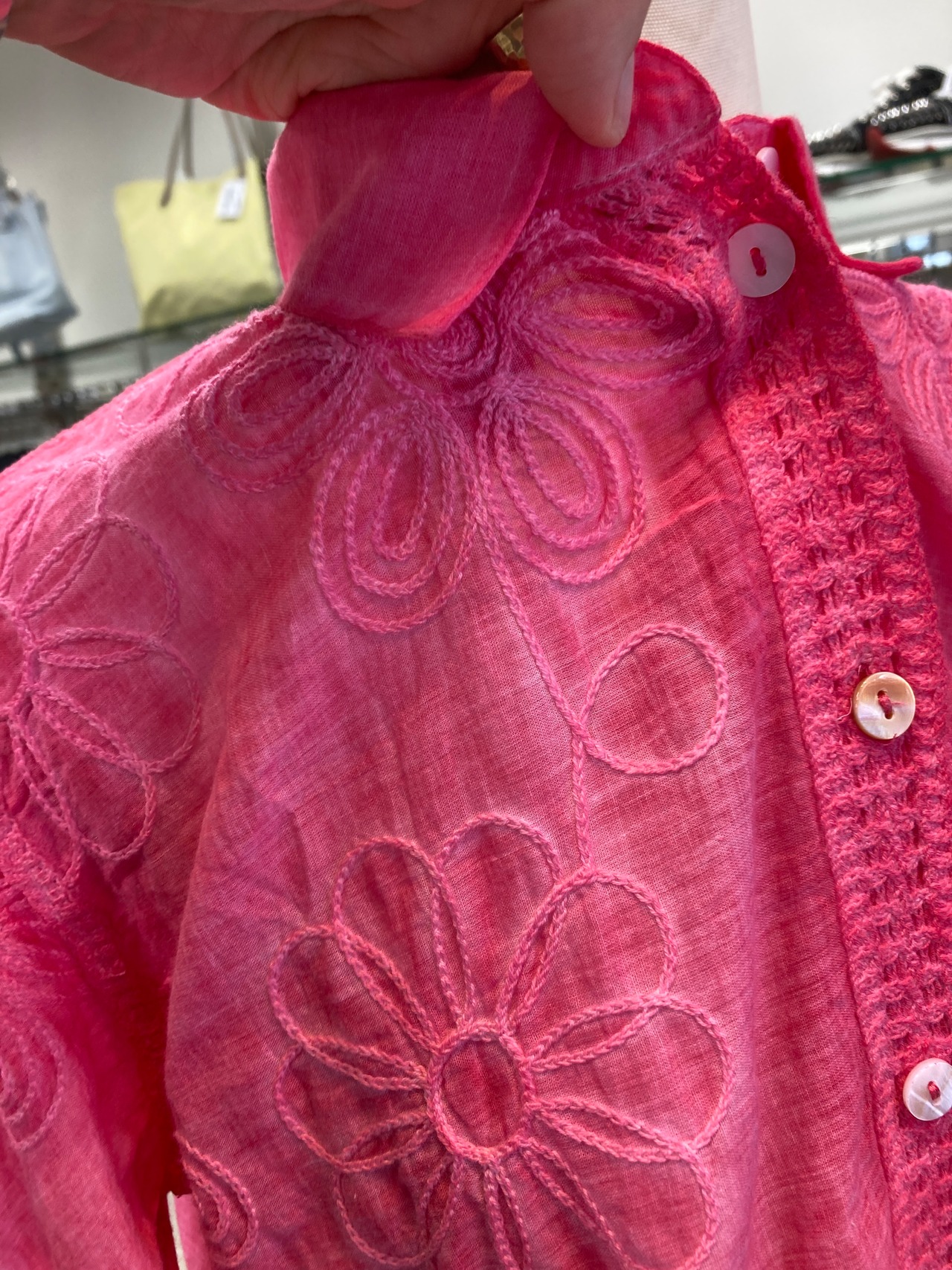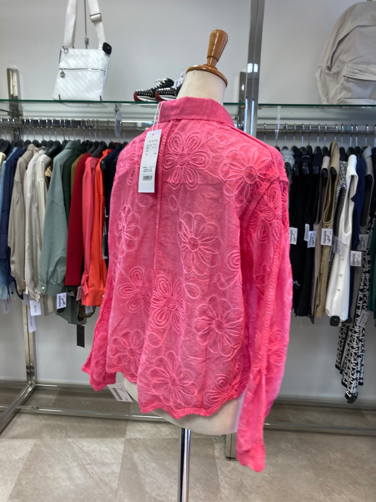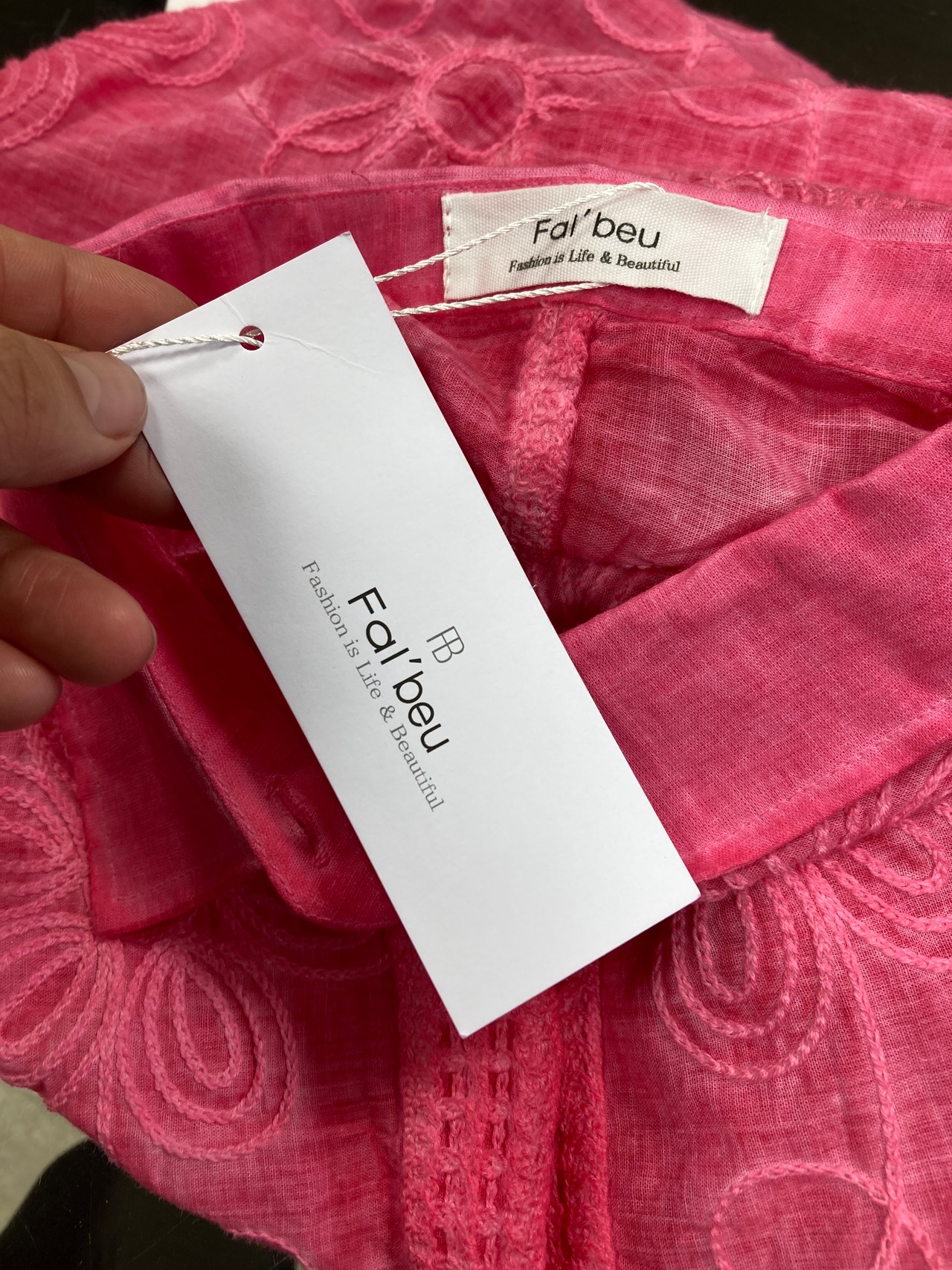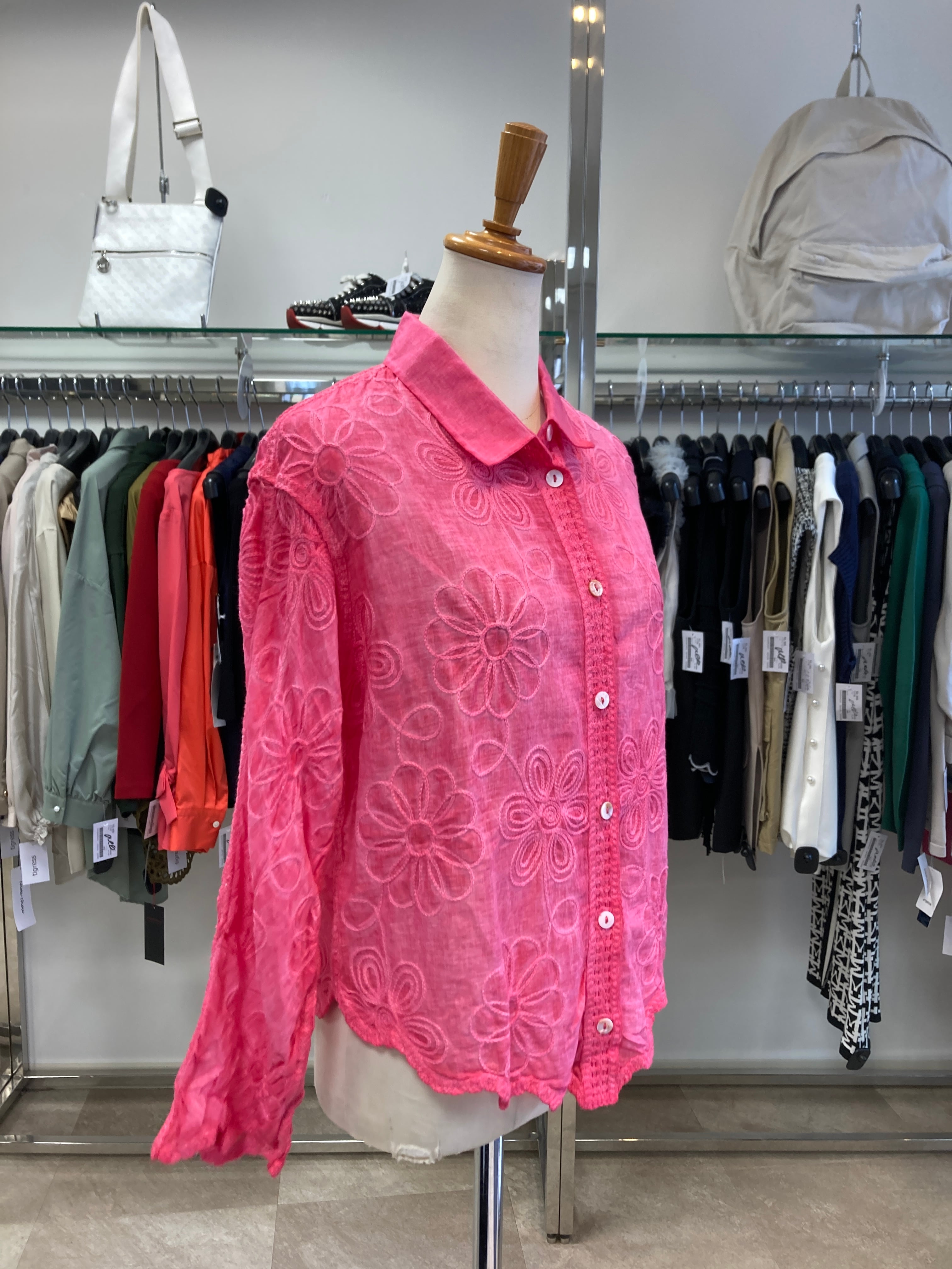 Fal'beu ピンク刺繍絞り染め風シャツ