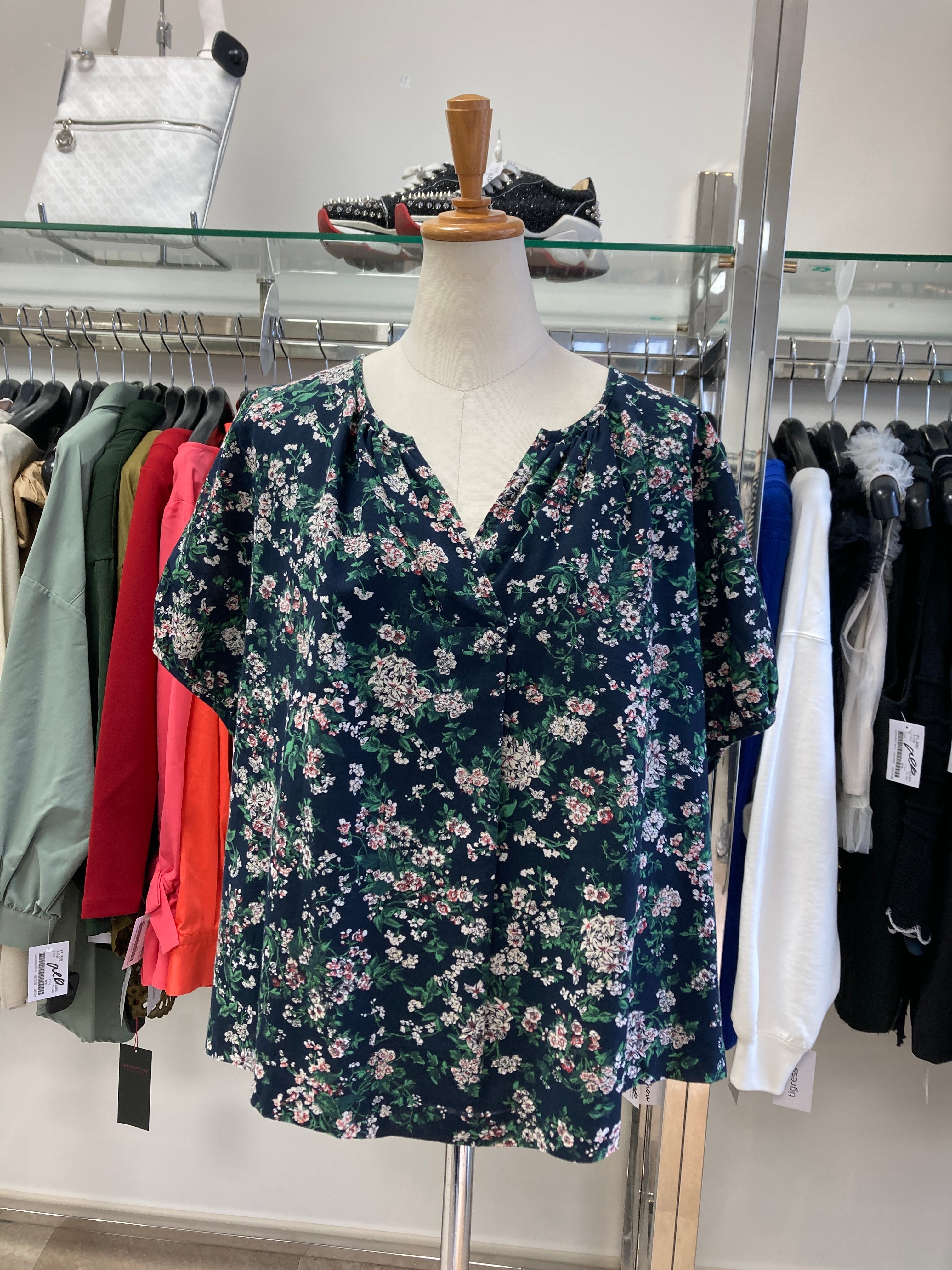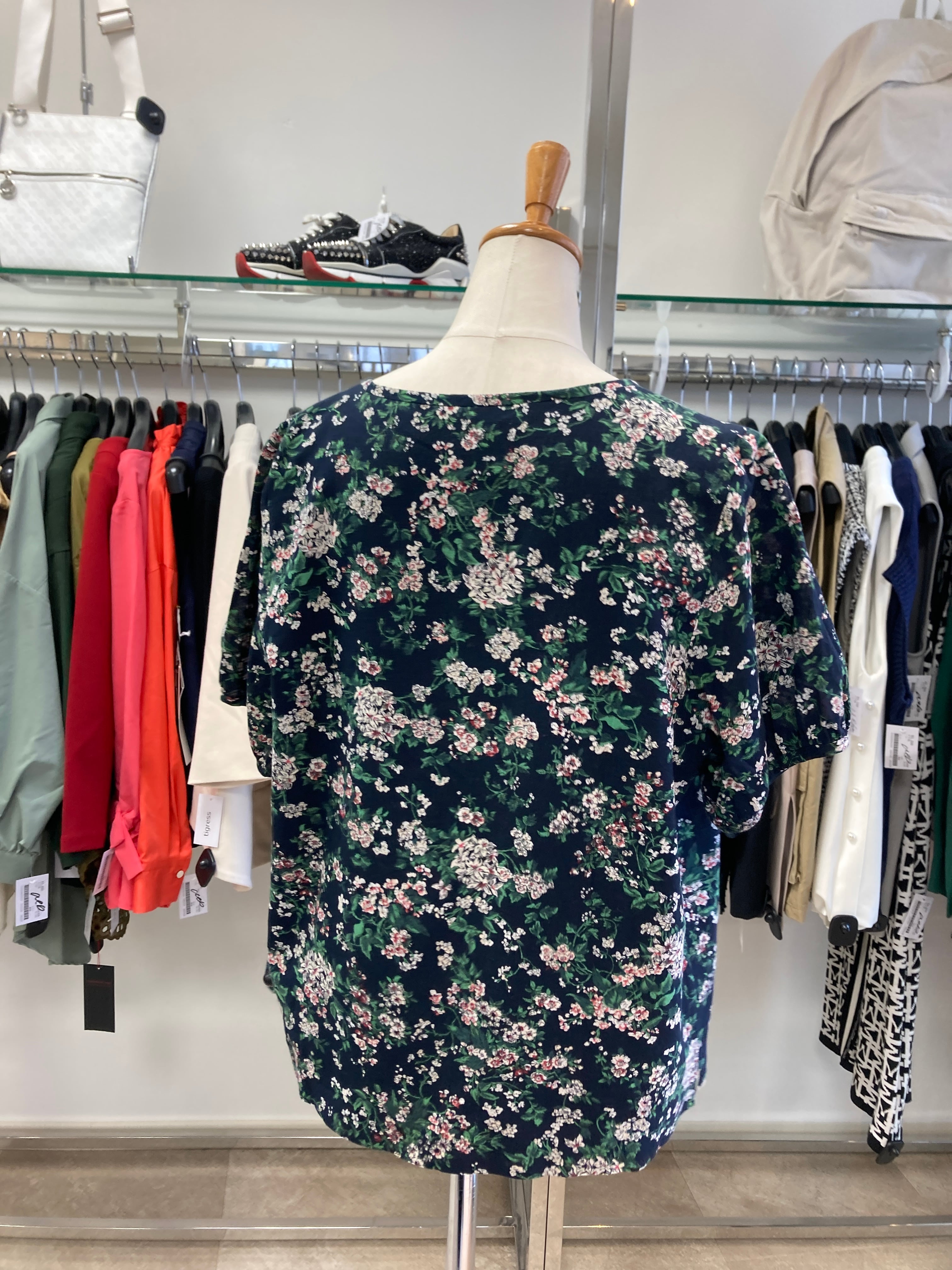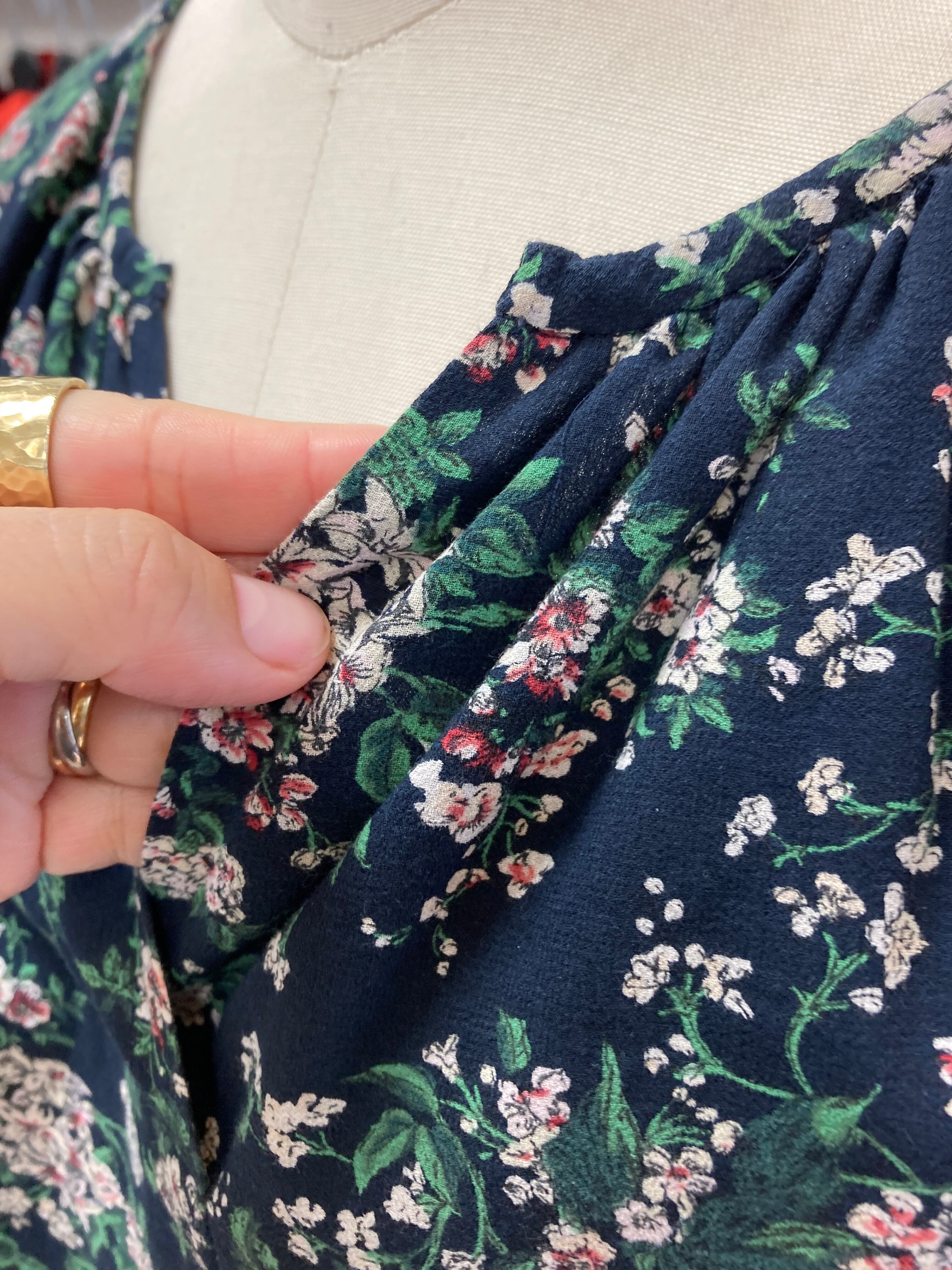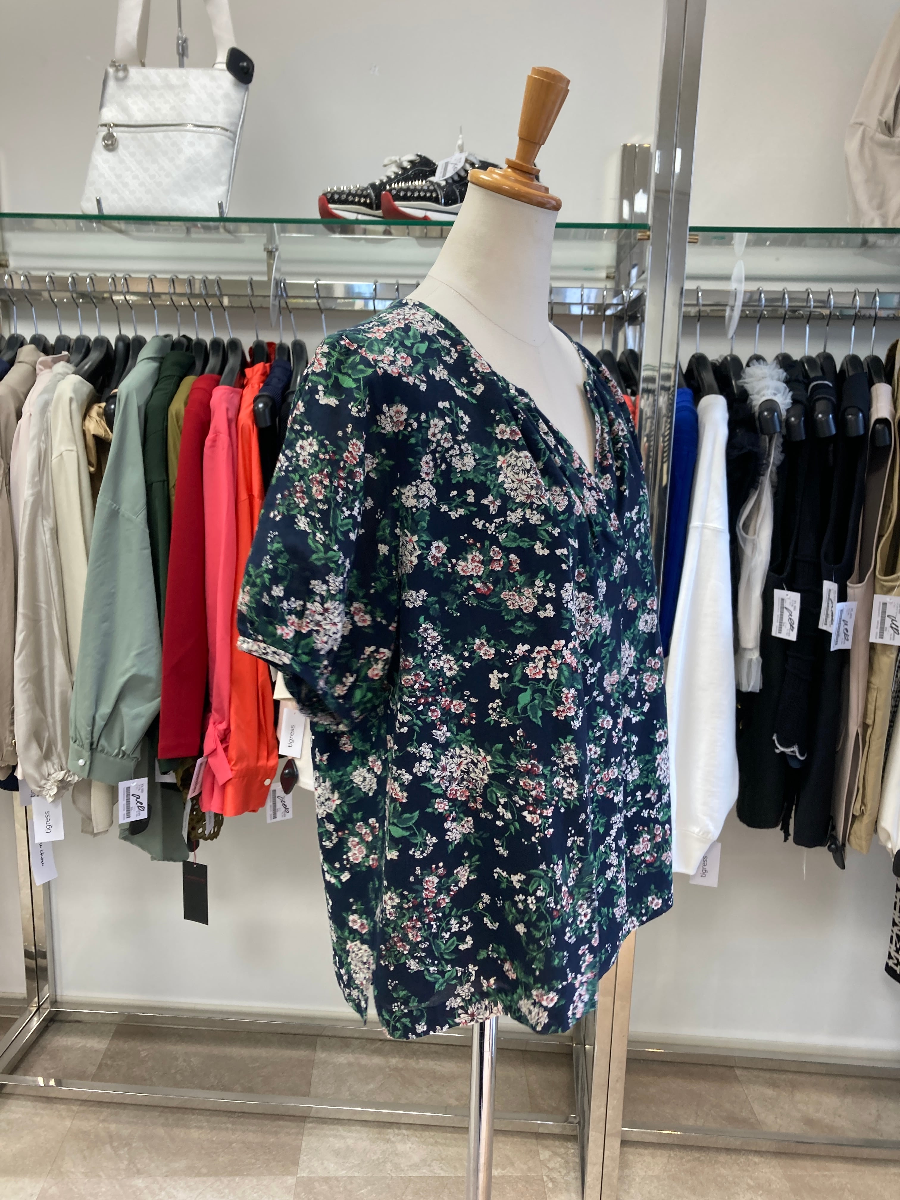 AMACA ネイビー花柄ブラウス