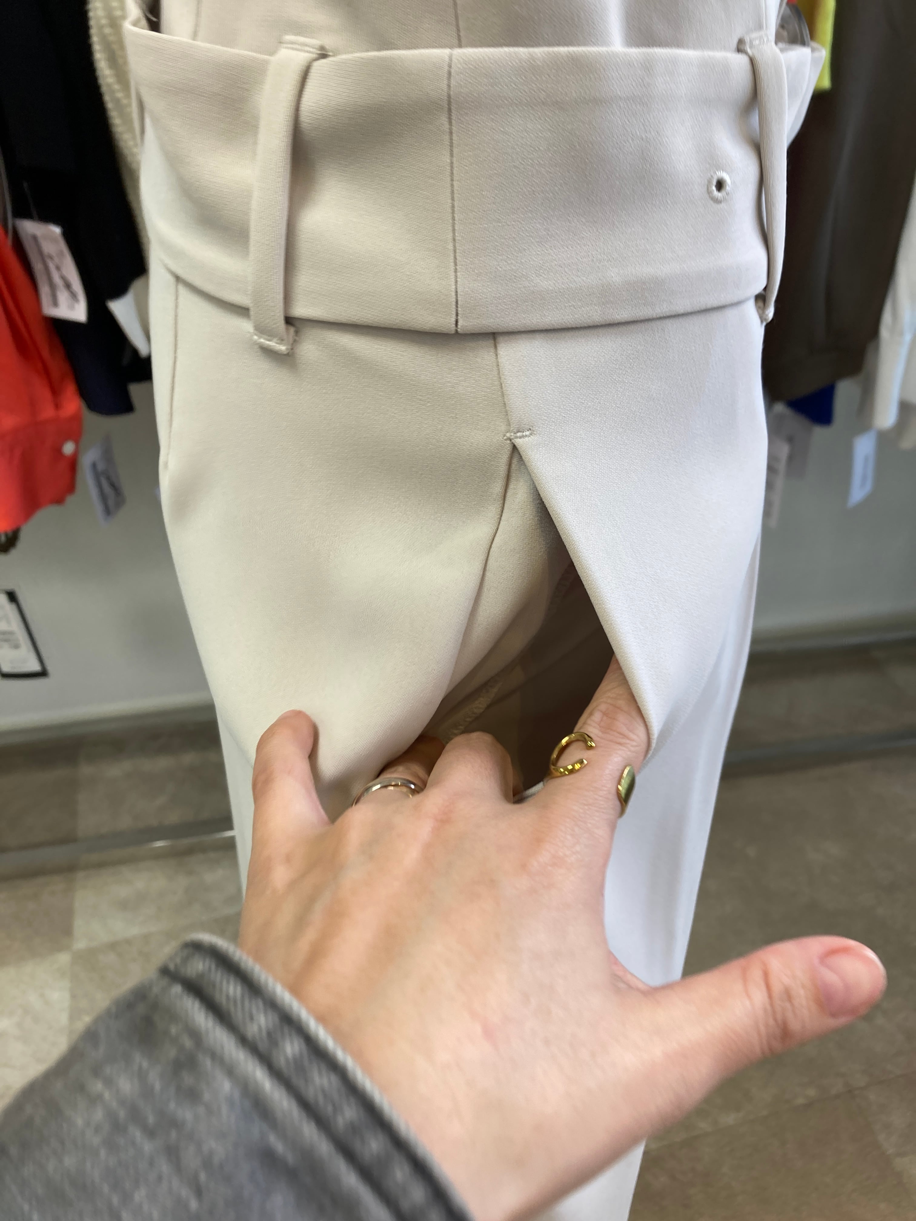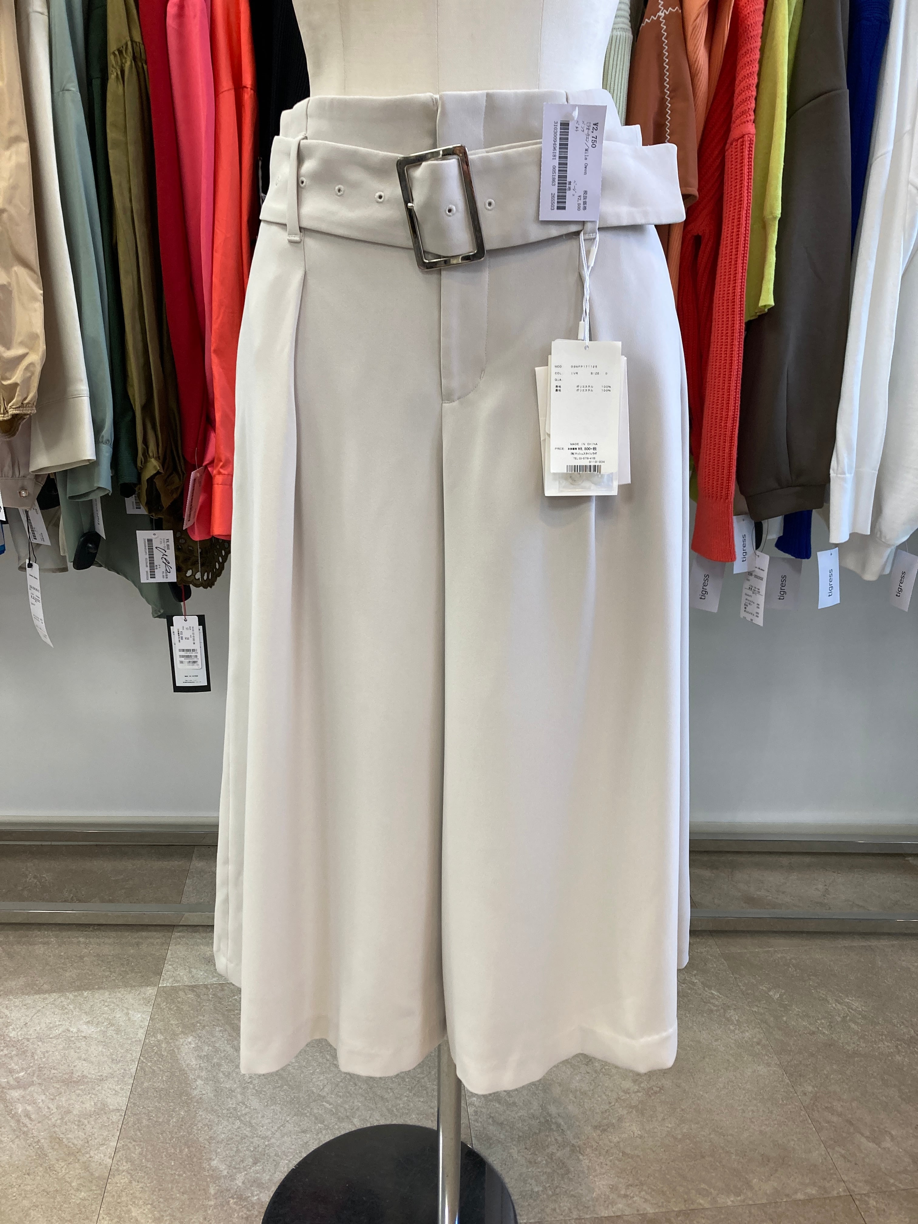アイボリー、ベージュ系 ベルト付き