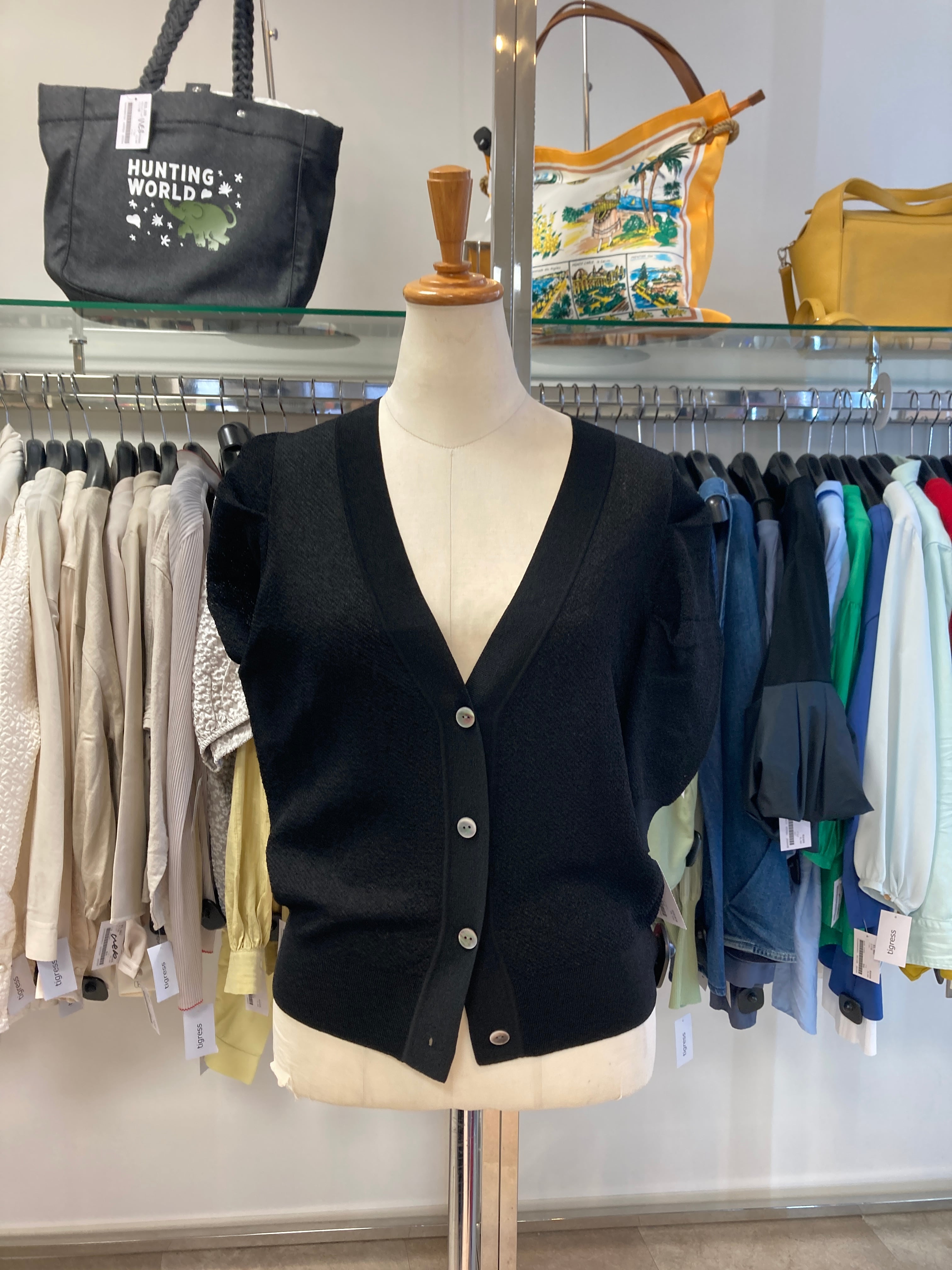 セオリーリュクス ブラック半袖カーディガン